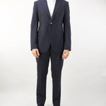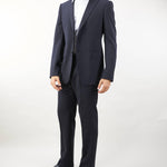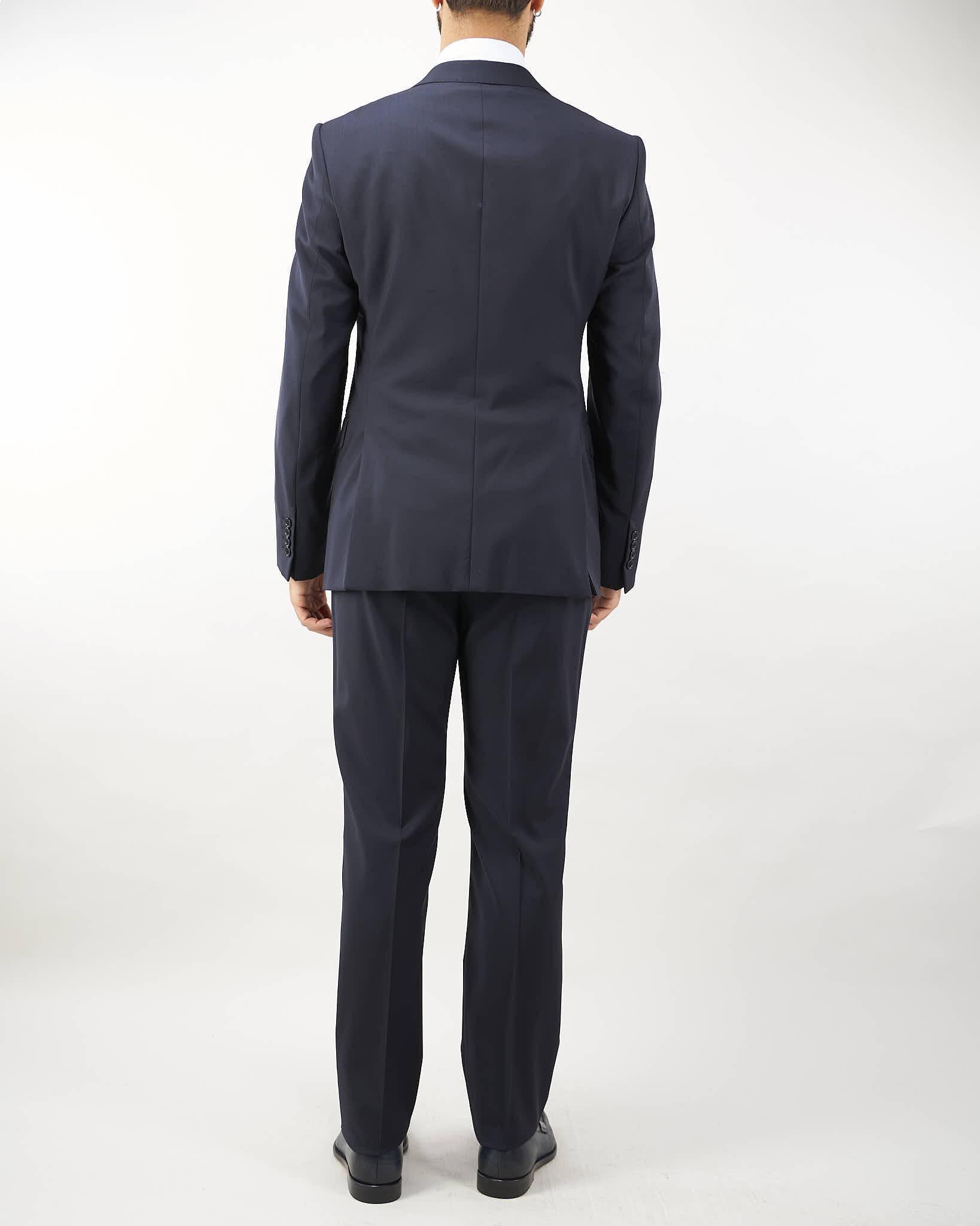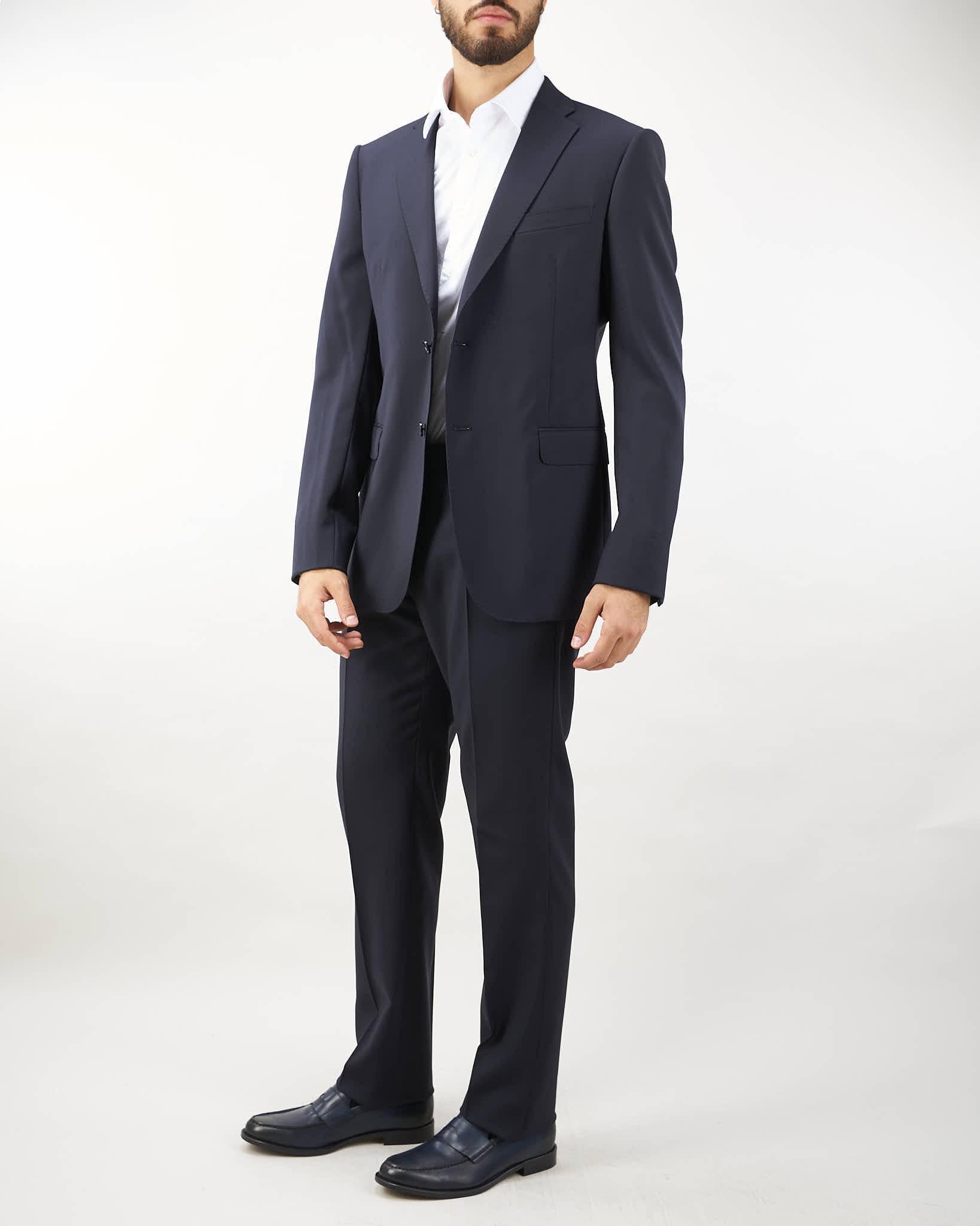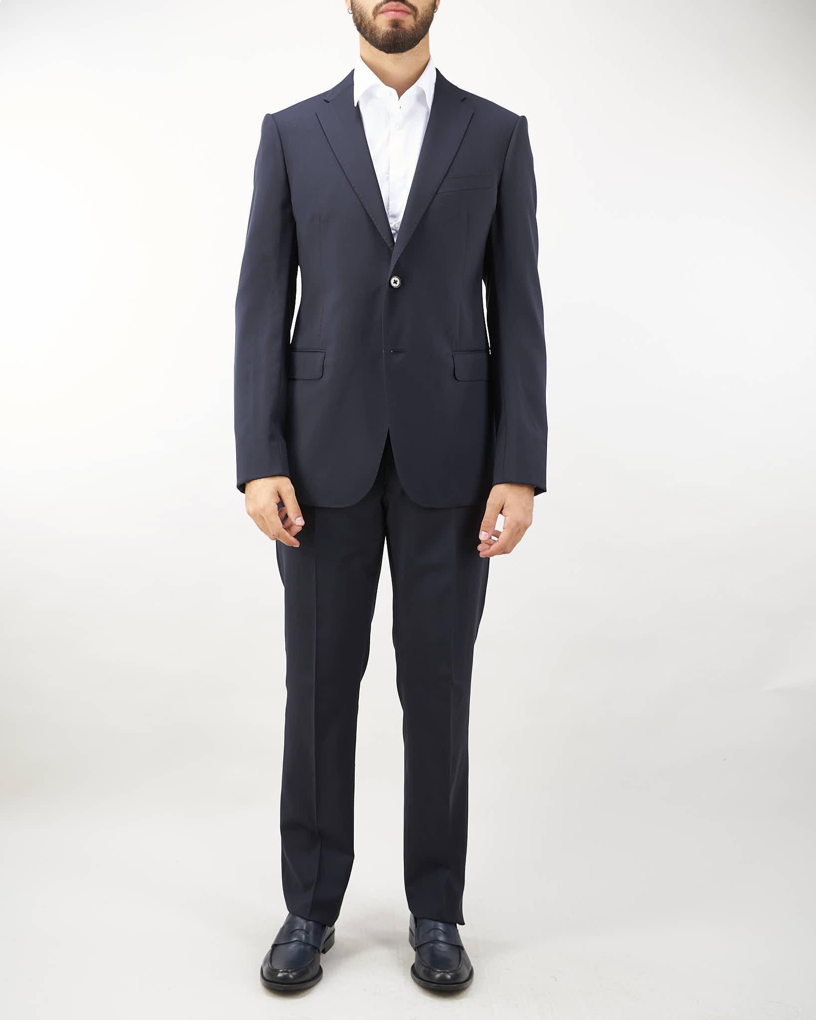 Abito di Emporio Armani. Modello monopetto con rever, tasche a filo con pattina laterali e taschino sul petto. Doppio spacco sul retro. Chiusura centrale con due bottoni. Pantalone regular fit, tasche america laterali e tasche a filo sul retro. Chiusura centrale con zip e gancio.