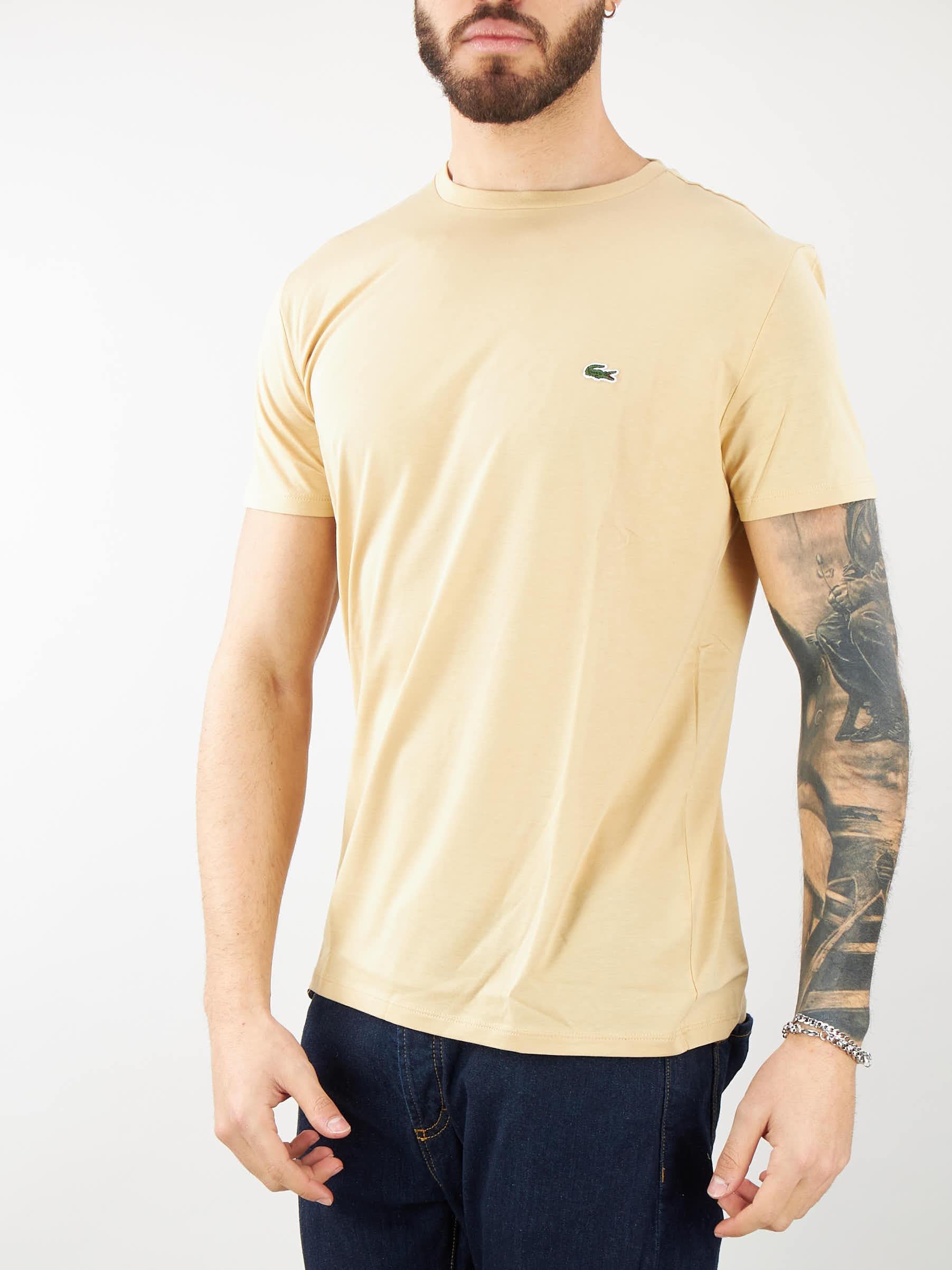 Referente nel mondo dell'abbigliamento sportivo sin dal 1933, Lacoste seleziona materiali di alta qualità per tutti i suoi capi. Questa classica t-shirt in jersey è stata creata delicatamente utilizzando cotone di prima qualità coltivato in Perù, i cui filati altamente resistenti conferiscono raffinatezza, lucentezza e leggerezza al capo. Modello girocollo con maniche corte. Logo ricamato sul petto. Regular fit.