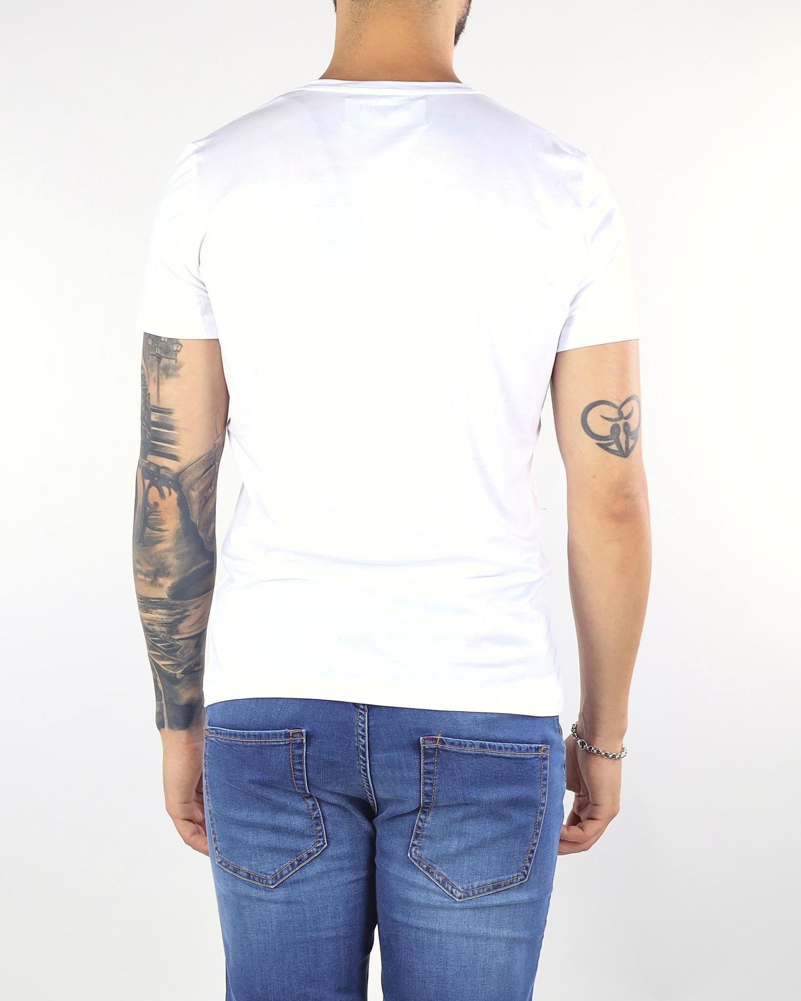 T-shirt Bianco in cotone mercerizzato con ricamo rosa sul petto
