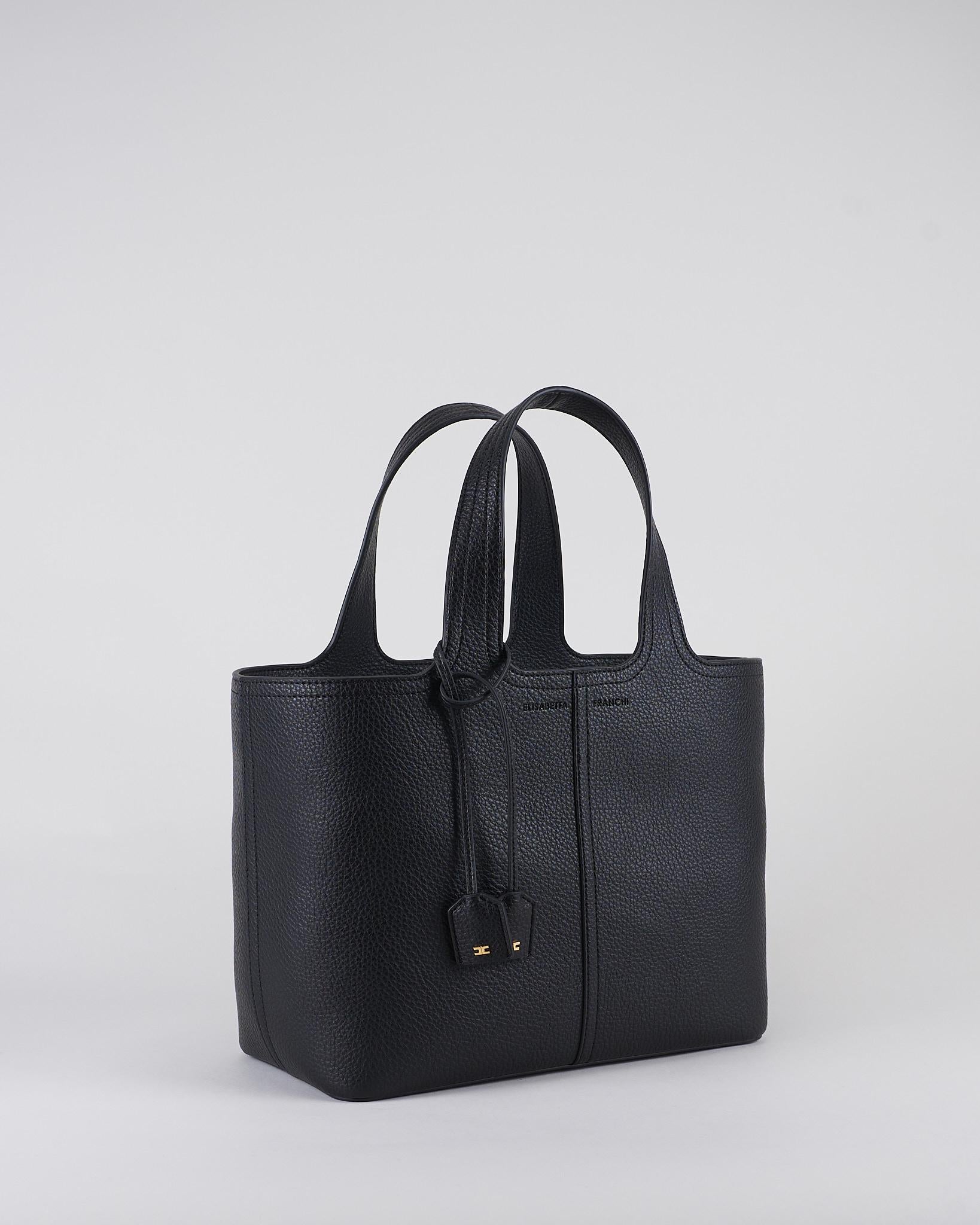 Tote media Nero in materiale sintetico con charms logo