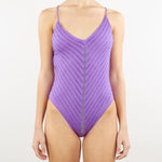 Costume intero in lycra tinta unita con una bellissima lavorazione geometrica di cristalli Swarovski per brillare sotto il sole. I laccetti creano incroci sensuali sulla schiena. Raffinato ed elegante è facilmente abbinabile a un pareo nello stesso tessuto o in tulle per non passare inosservate.