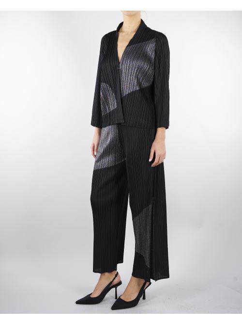 Pantalone Nero plissettato con inserti in lurex