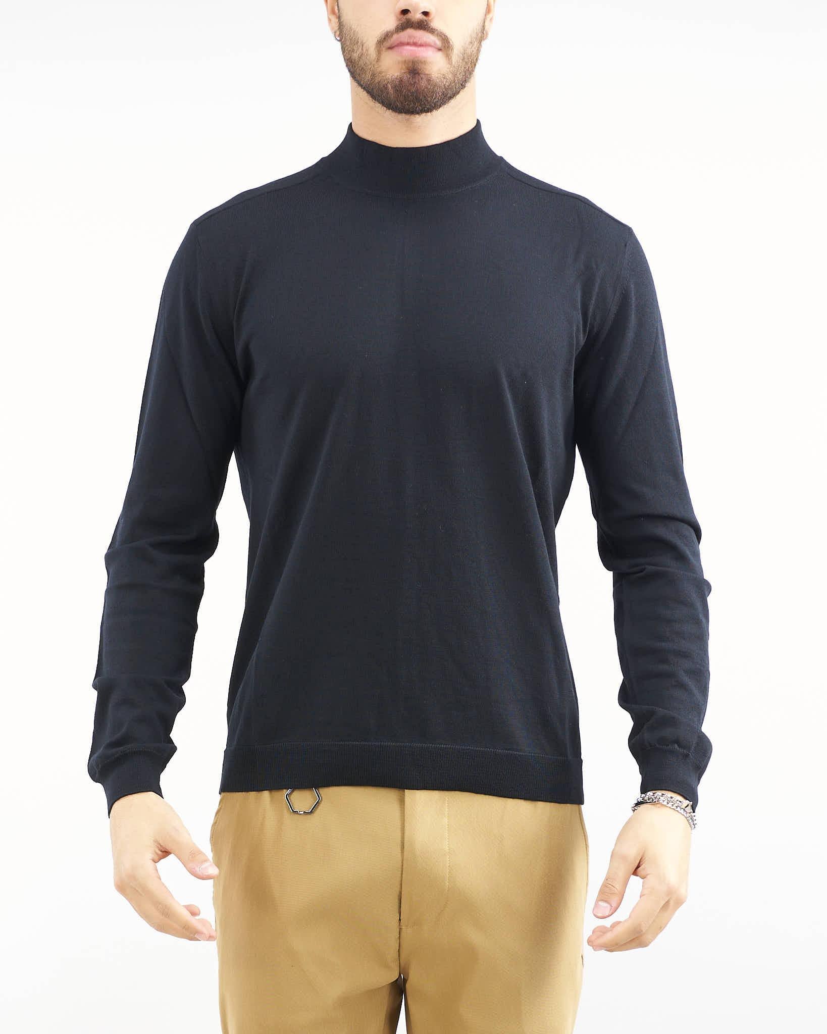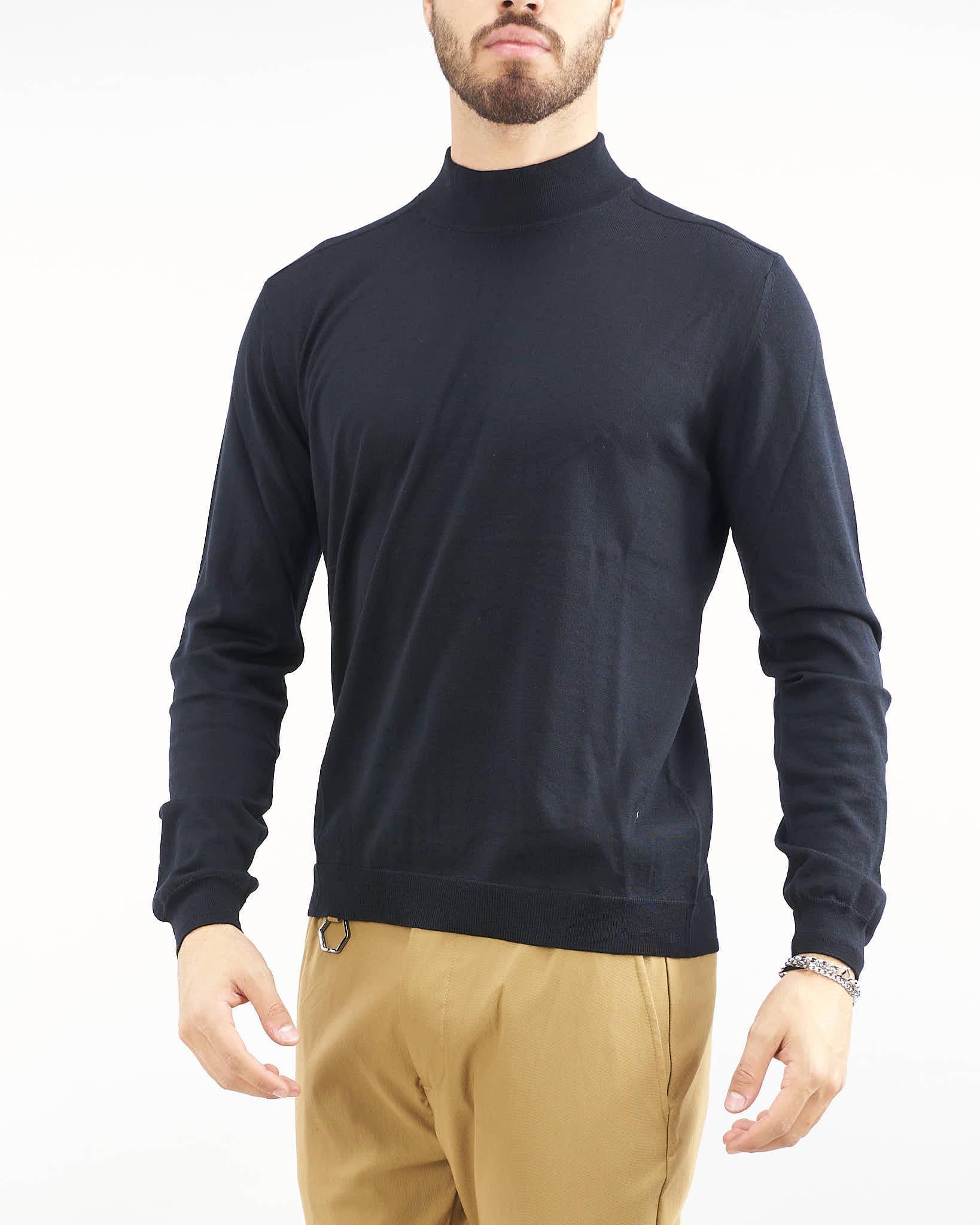 Maglia in pura lana merinos extrafine di Low Brand. Modello lupetto con maniche lunghe. Collo, fondo e polsini a costine.