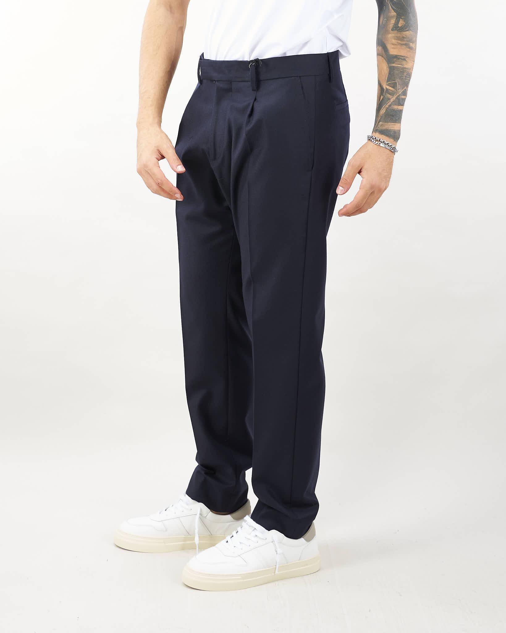 Pantalone in pura lana di Low Brand. Modello Ford con pences. Tasche america laterali e tasche a filo sul retro. Chiusura centrale con bottone e gancio. Relaxed fit.