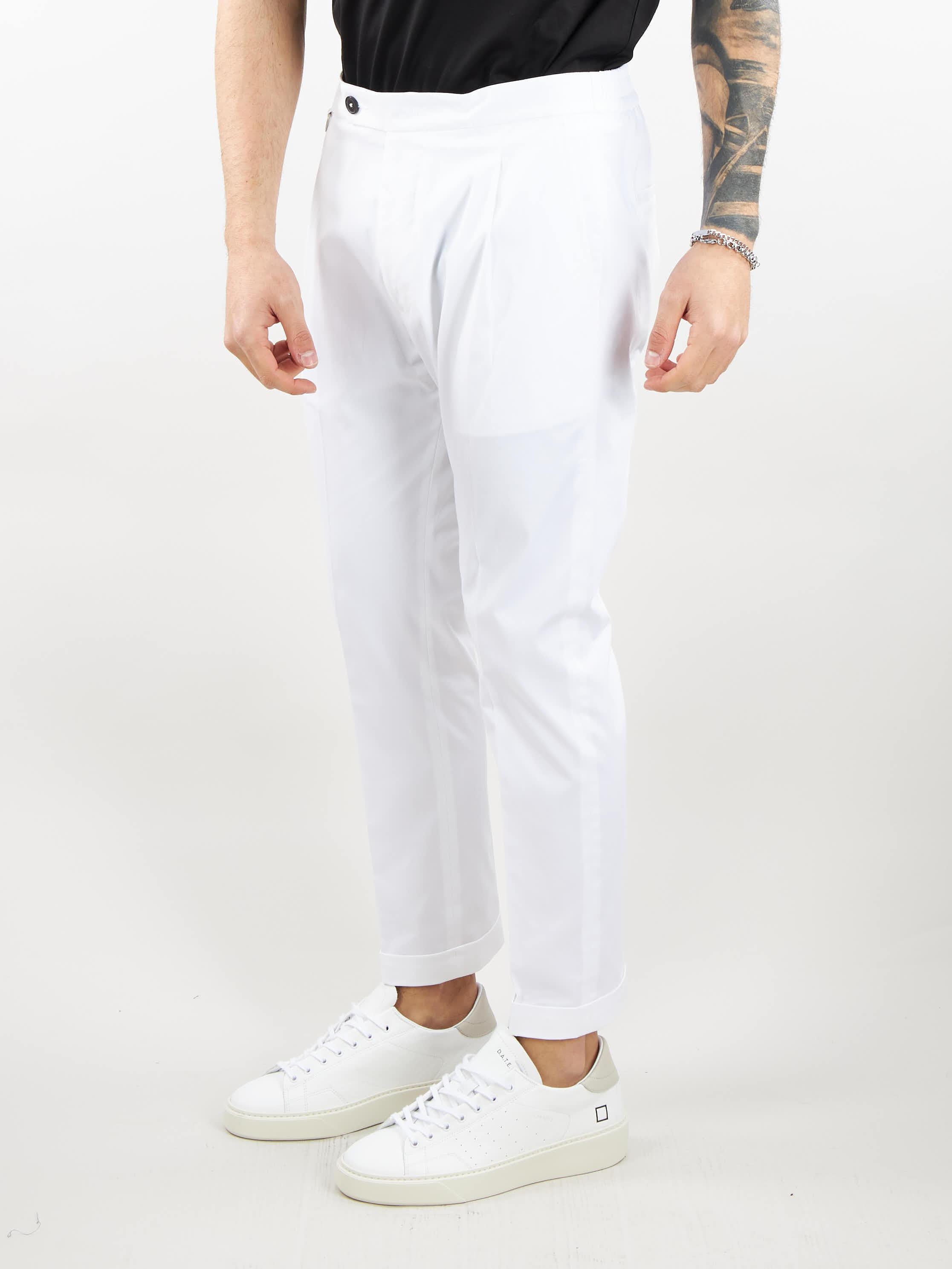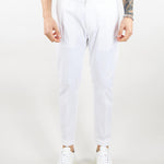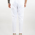 Pantalone in cotone di Low Brand. Modello Riviera con pences ed elastico in vita sul retro. Tasche america laterali e tasche a filo sul retro. Chiusura centrale con zip e bottone. Fondo con risvolto.