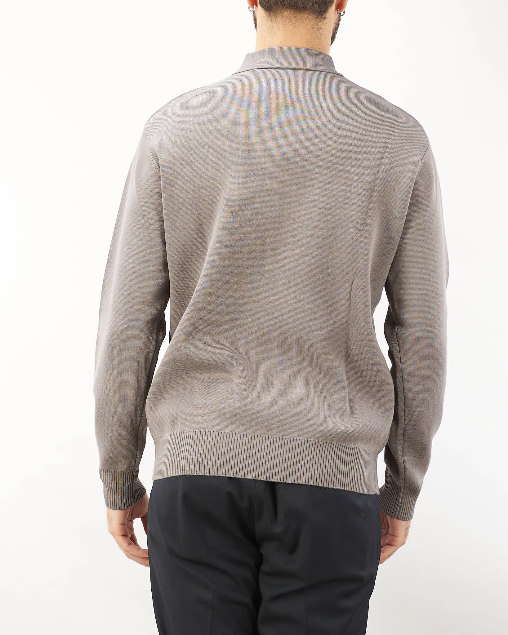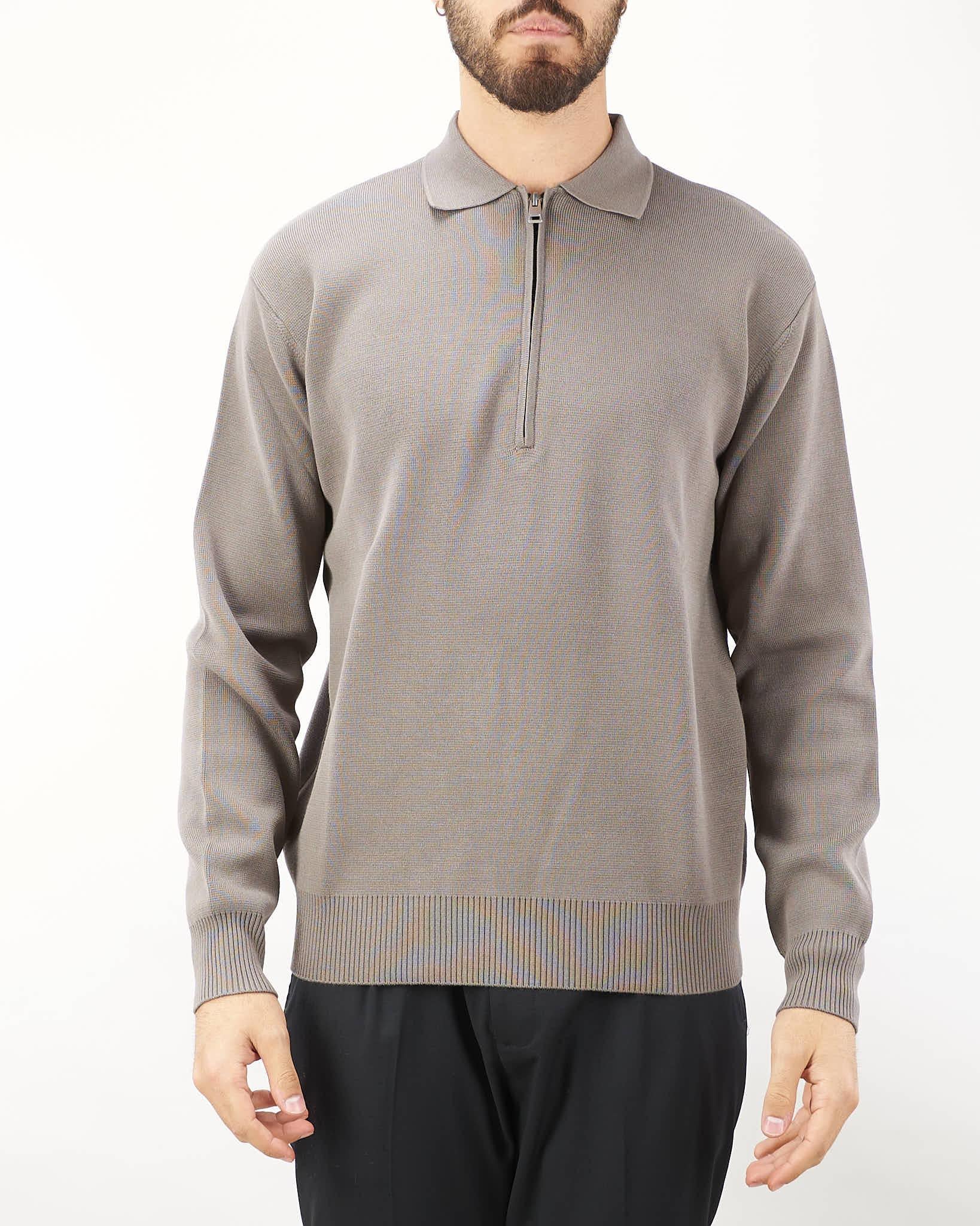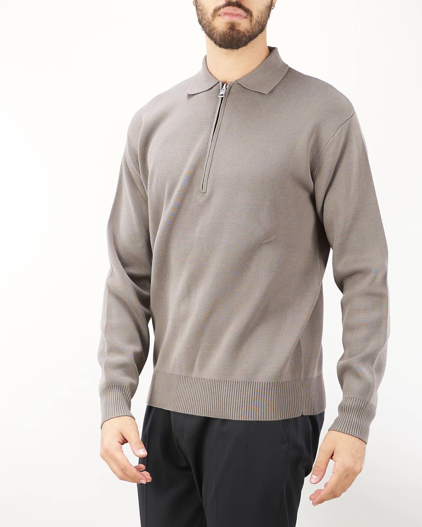 Polo in maglia di viscosa di Low Brand. Modello con colletto e zip, maniche lunghe. Fondo e polsini a costine. Relaxed fit.