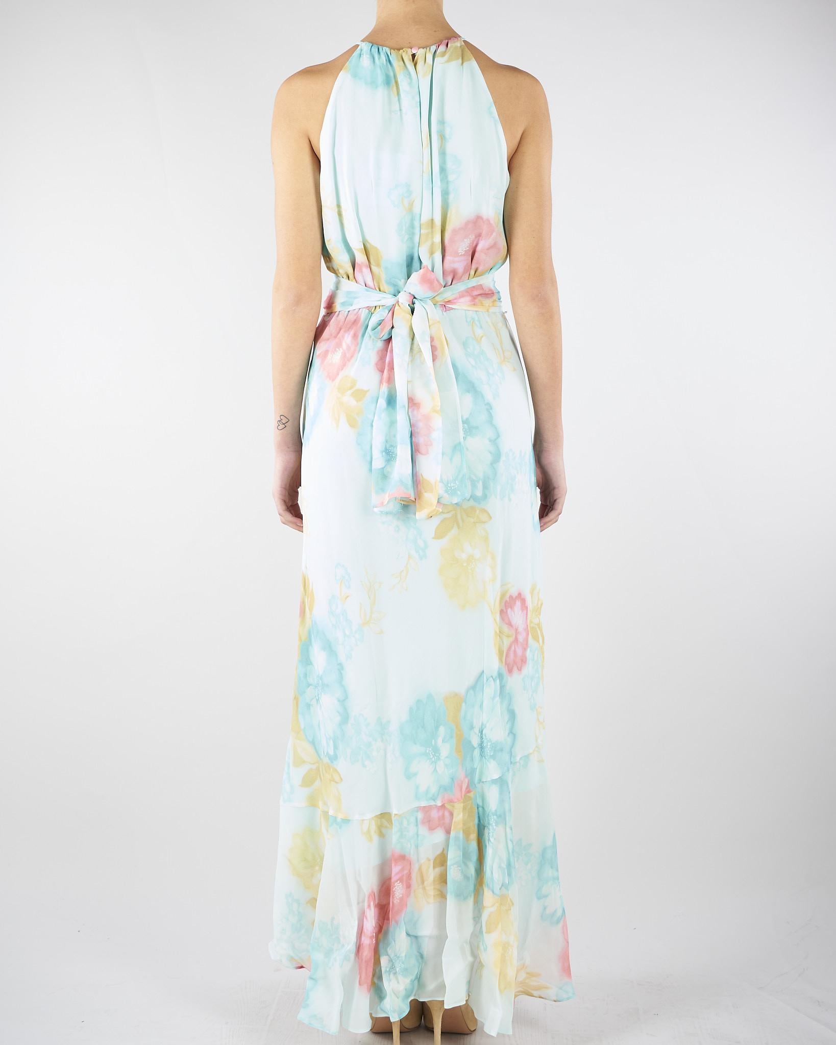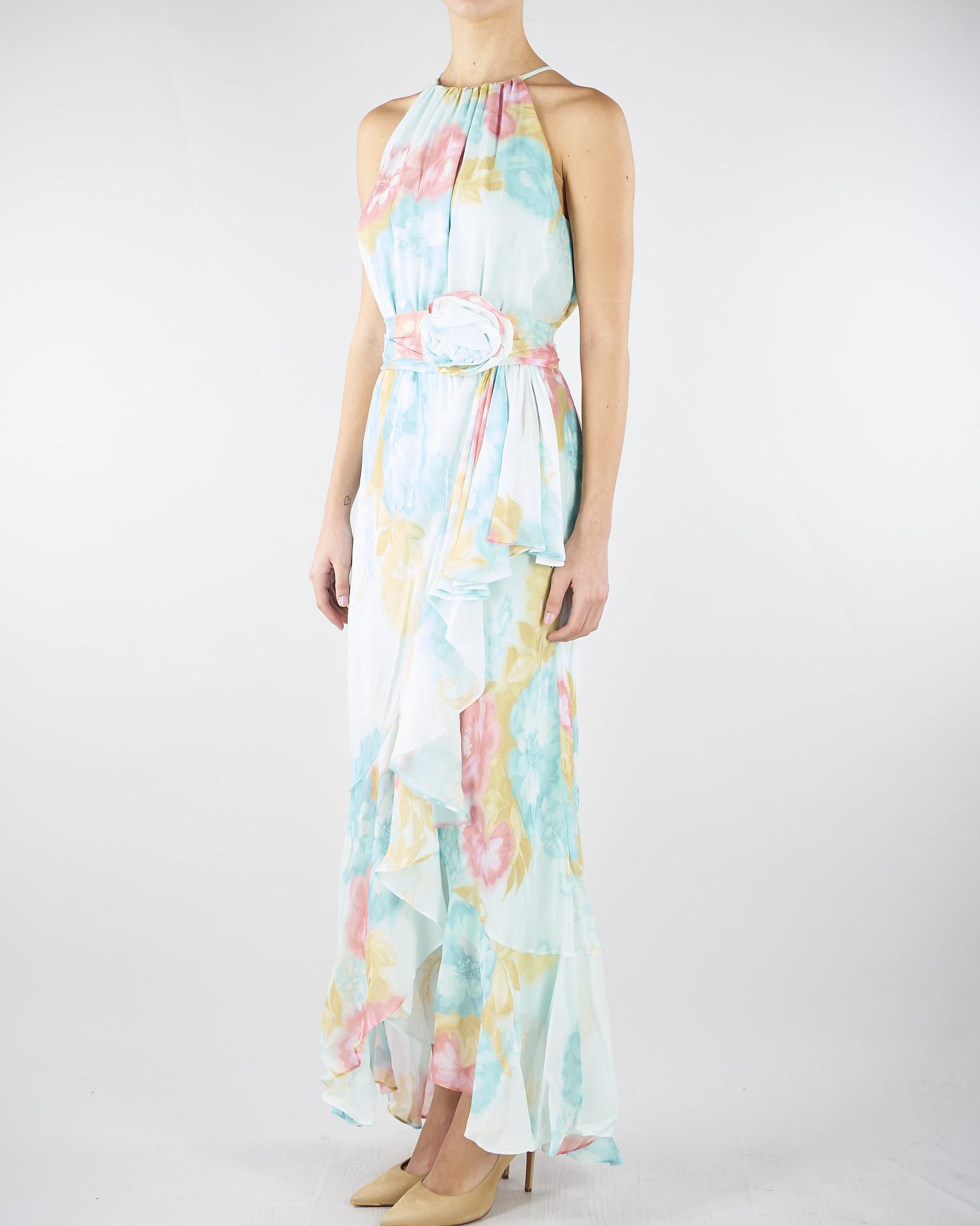 Abito Acqua con volant e rosa in georgette stampata