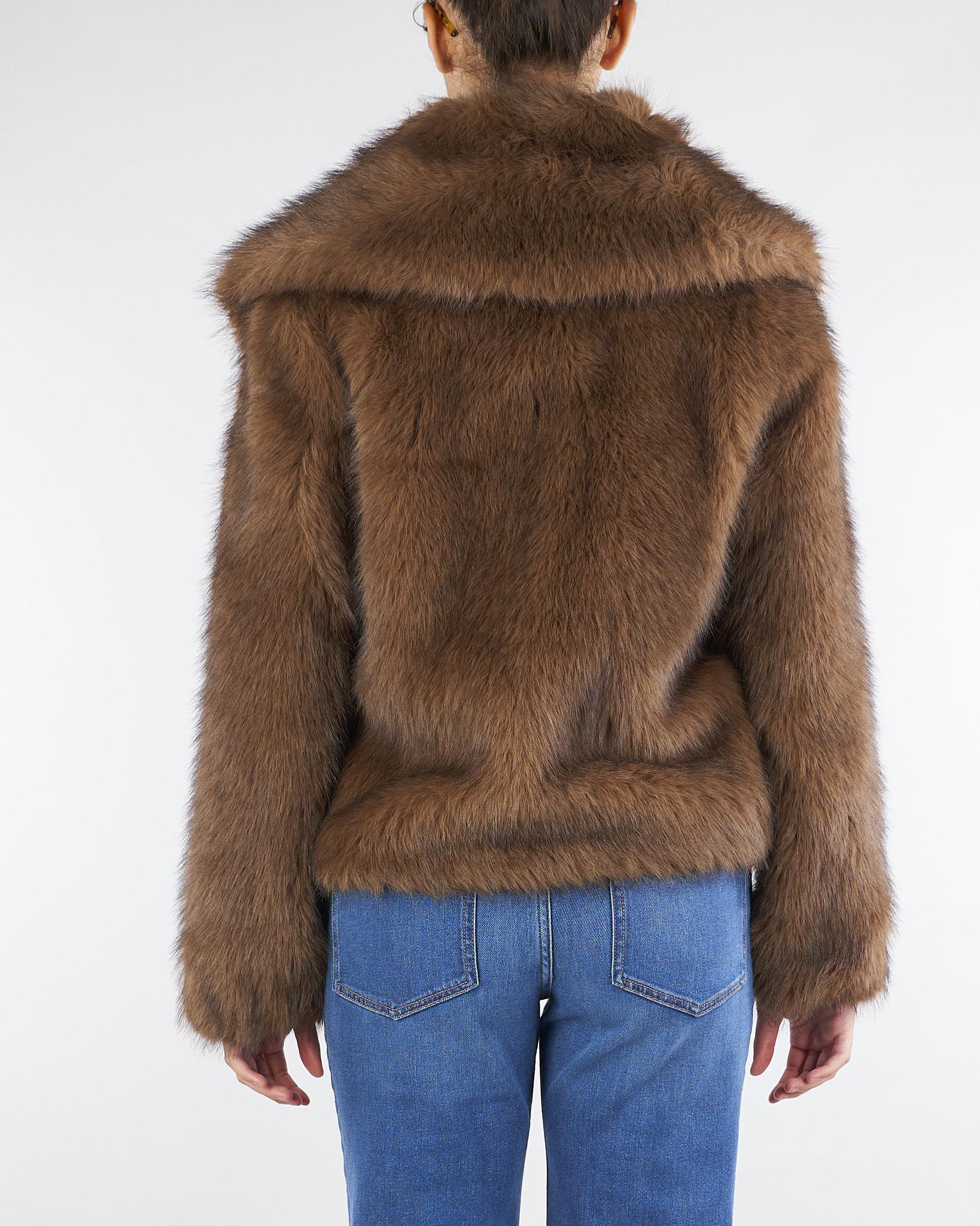 Giacca in ecovolpe dal design elegante e versatile. Morbida e calda, aggiunge un tocco di raffinatezza ai look quotidiani. Perfetta per outfit casual-chic che uniscono comfort e femminilità.