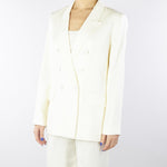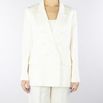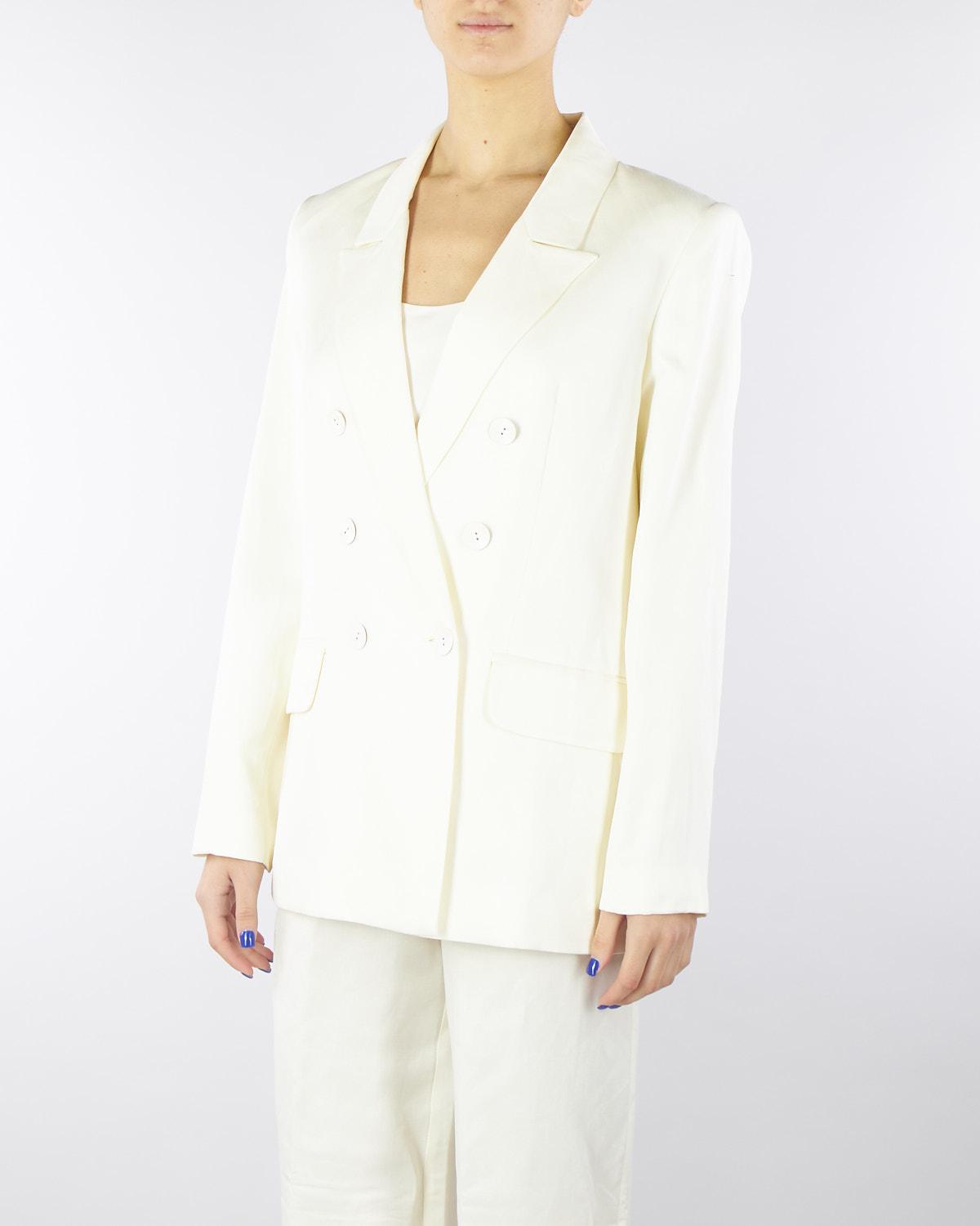 Giacca doppiopetto in viscosa e lino lucido, un capo sofisticato che combina eleganza e leggerezza. Il tessuto brillante conferisce un tocco di classe, mentre il taglio sartoriale garantisce una vestibilità perfetta. Ideale per look raffinati, è perfetta per occasioni formali o eventi mondani.