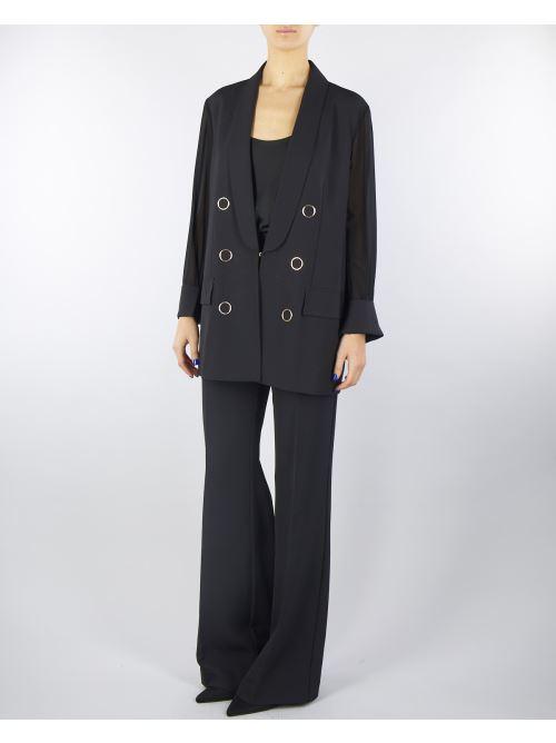 Elegante e chic, il pantalone a zampa in cady dona una silhouette fluida e raffinata. Il tessuto strutturato e leggero assicura comfort e vestibilità perfetta. Un capo senza tempo che aggiunge classe e stile a ogni outfit.