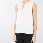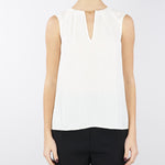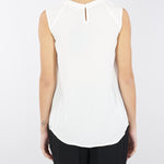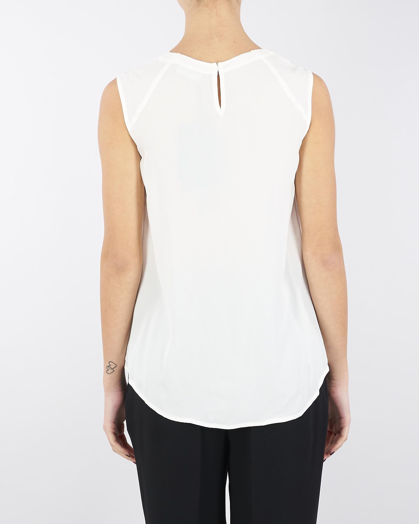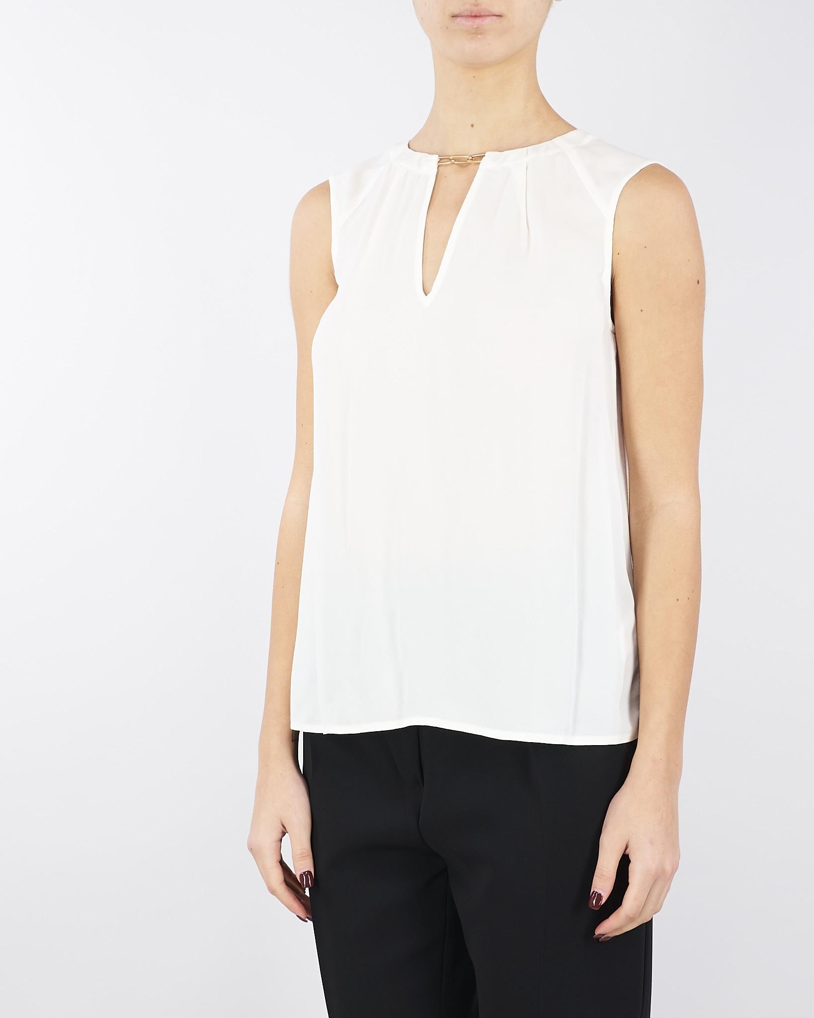 Top a girocollo con dettaglio a catena, un capo che unisce raffinatezza e modernità. Il tessuto fluido e leggero offre comfort, mentre la catena aggiunge un tocco di eleganza. Perfetto per un look casual-chic.