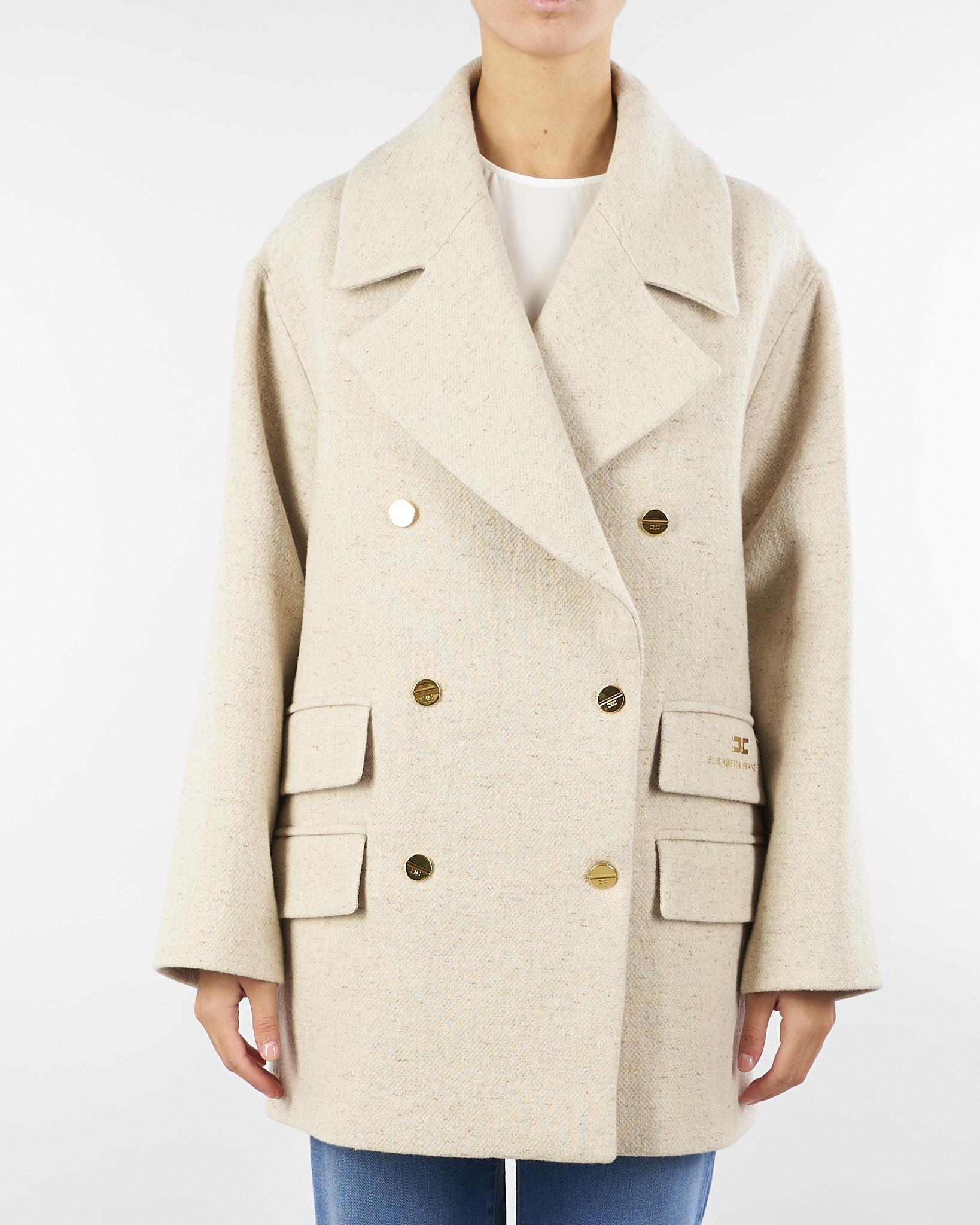 Cappotto caban in panno di lana dalla vestibilità over. Con ampio rever, spalle scese e chiusura doppiopetto, ha dettagli preziosi come i bottoni in metallo dorato e la stampa luminosa con logo a rilievo su una delle quattro patte.
