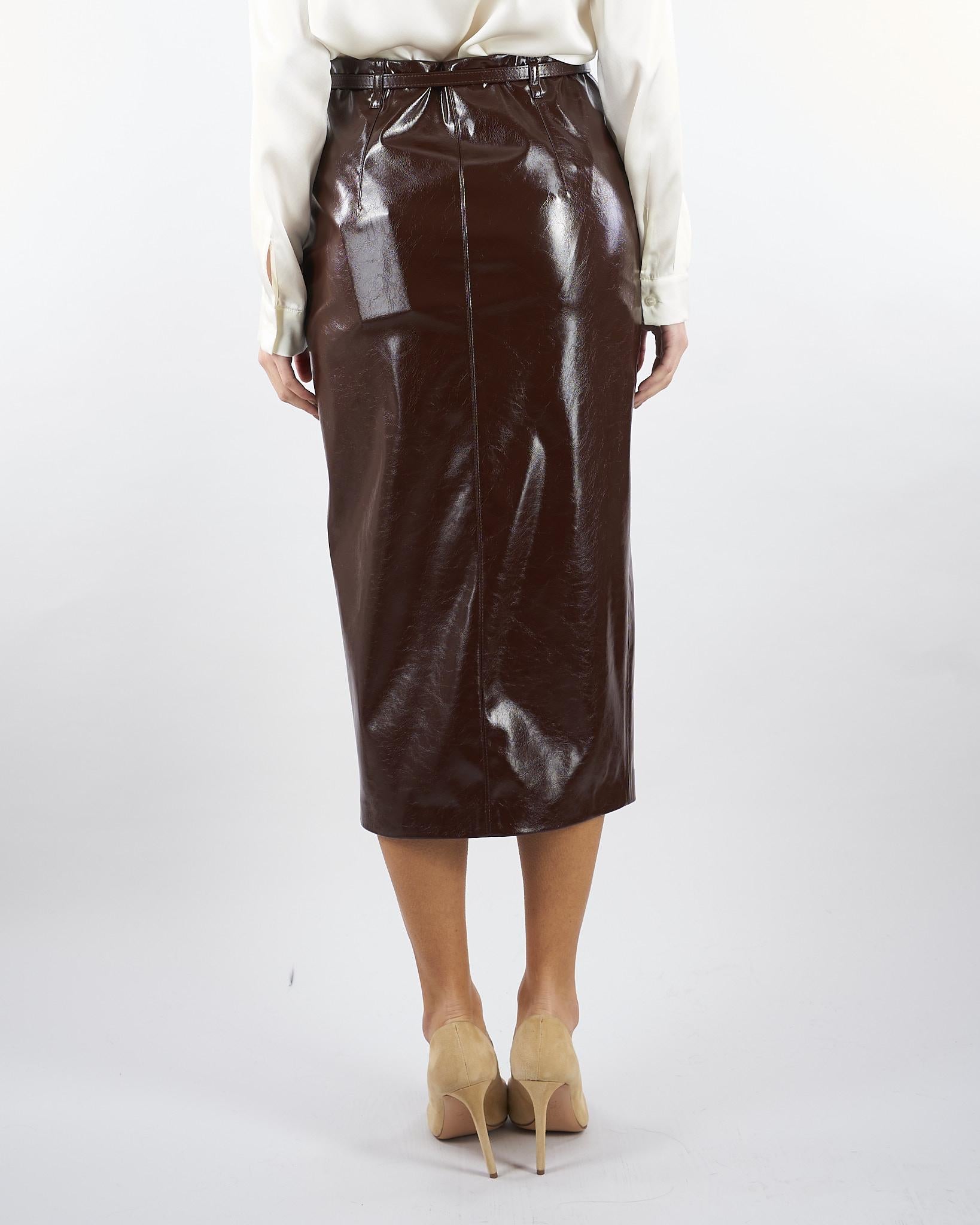 Gonna Cioccolato in ecopelle con cintura e spacco