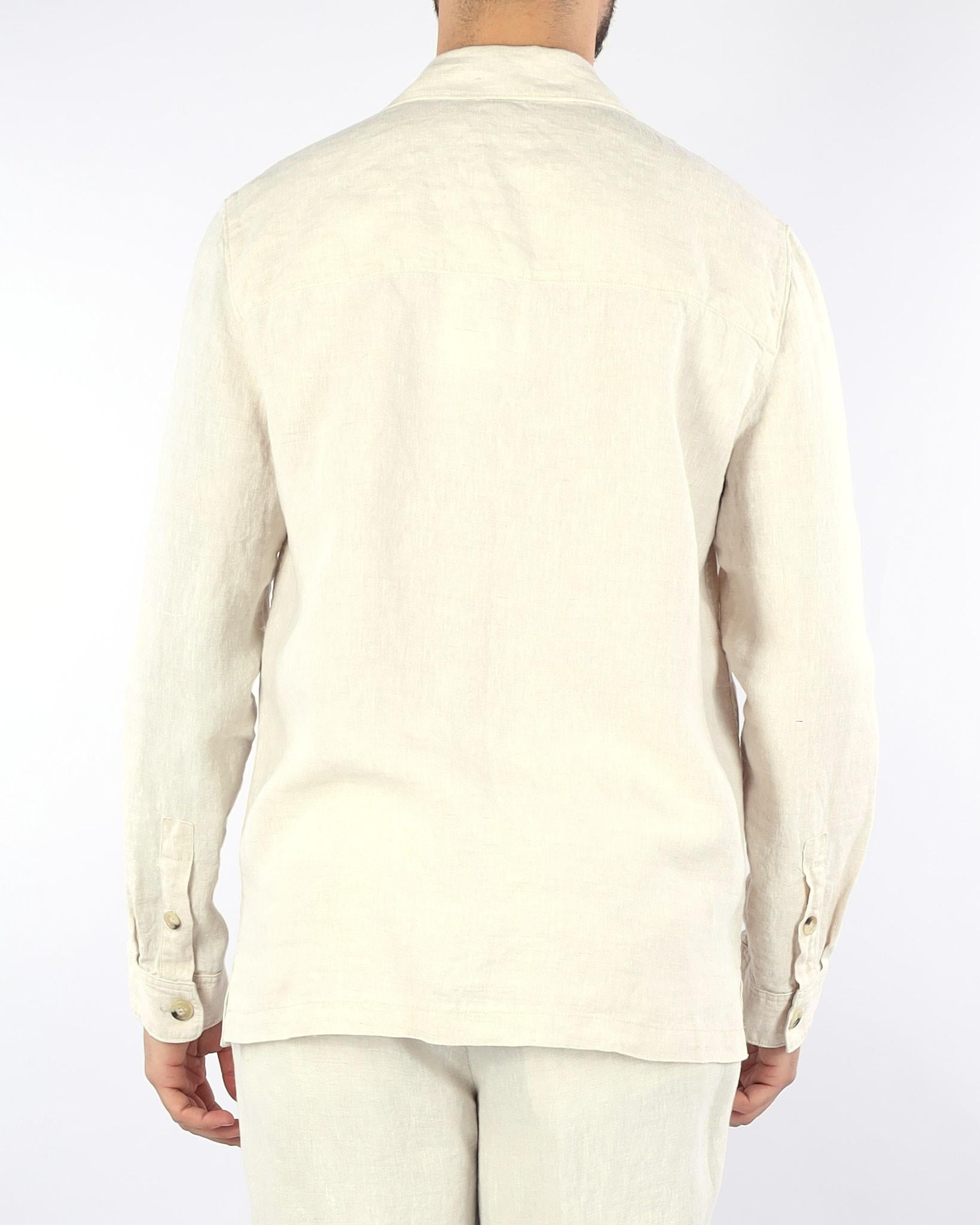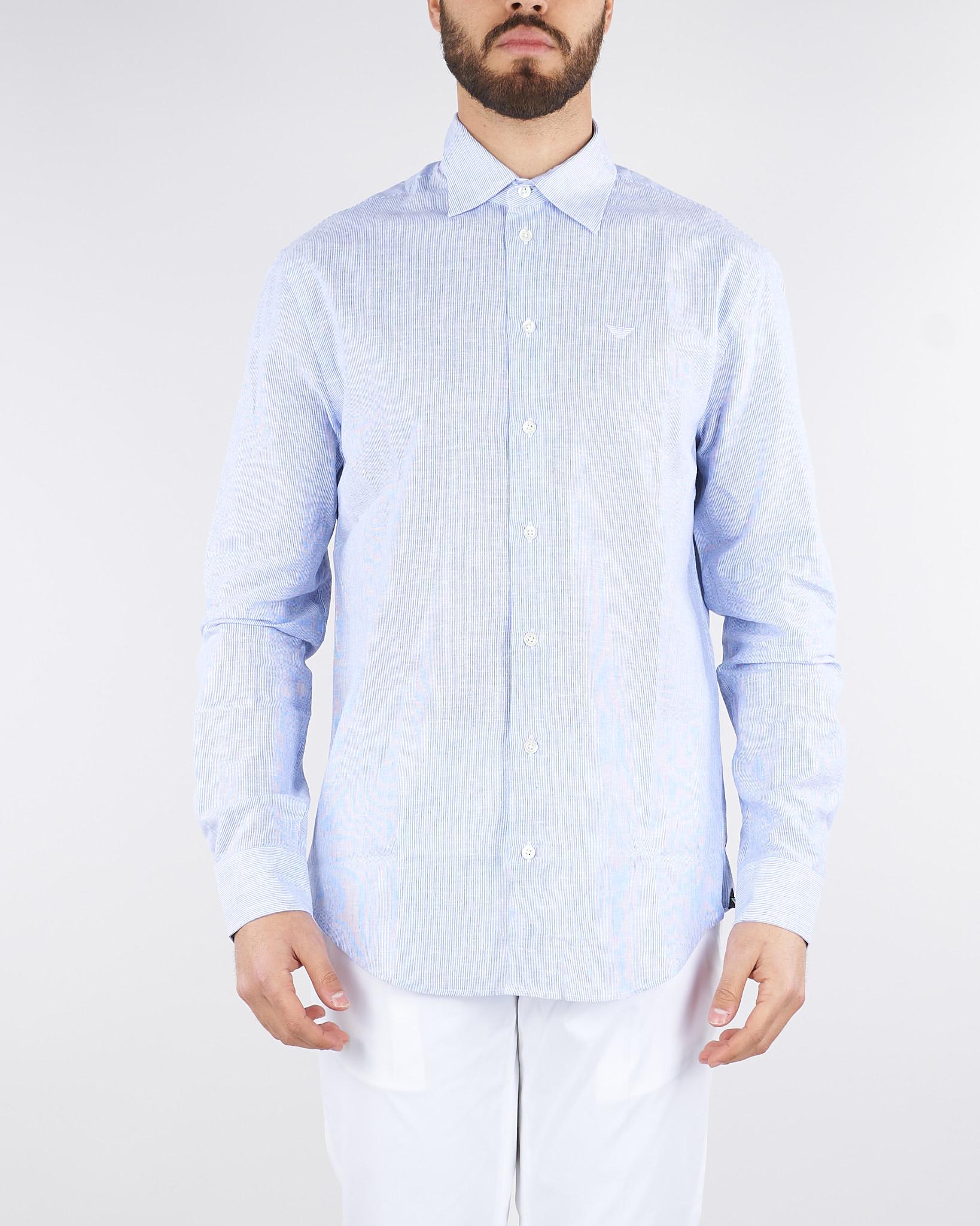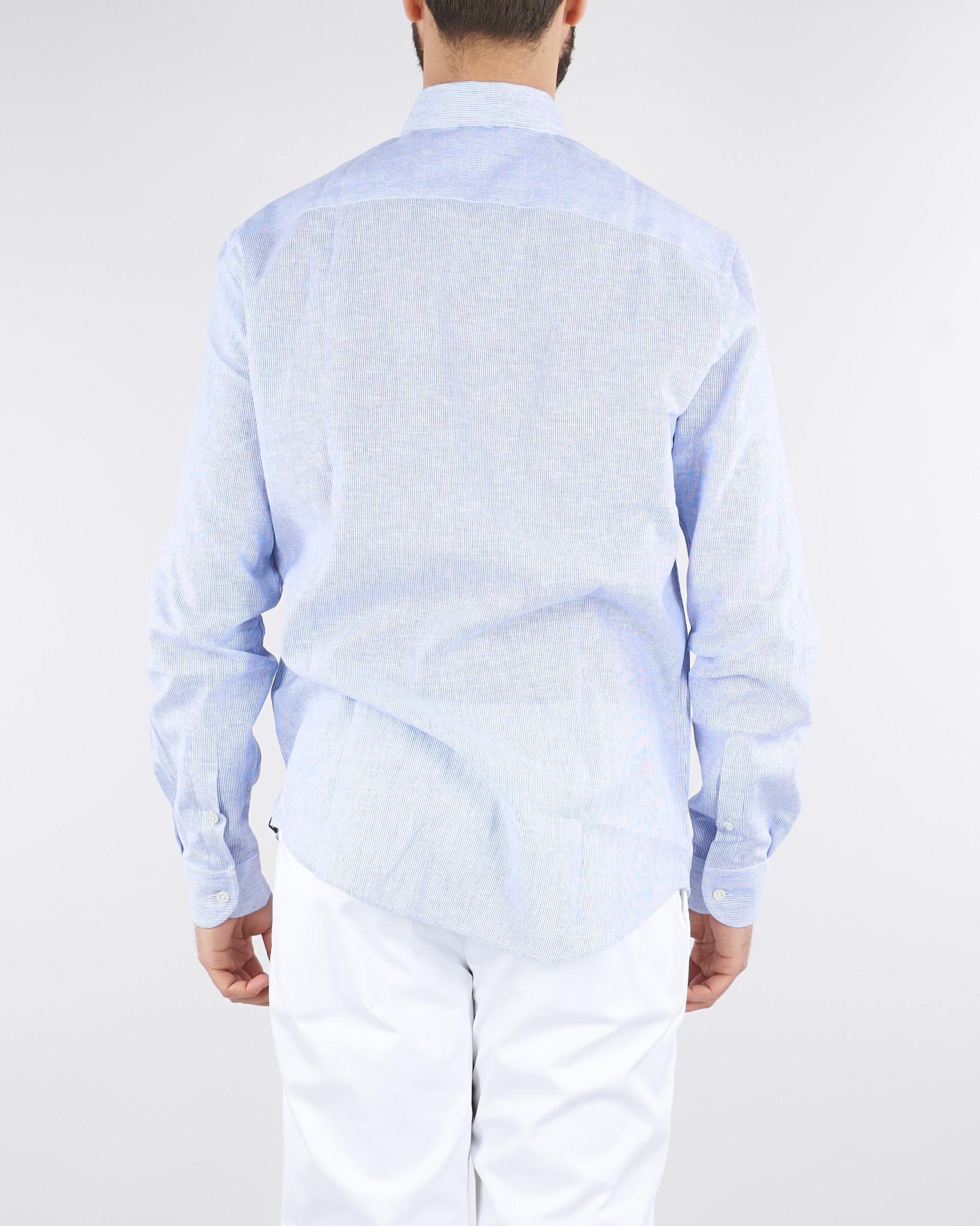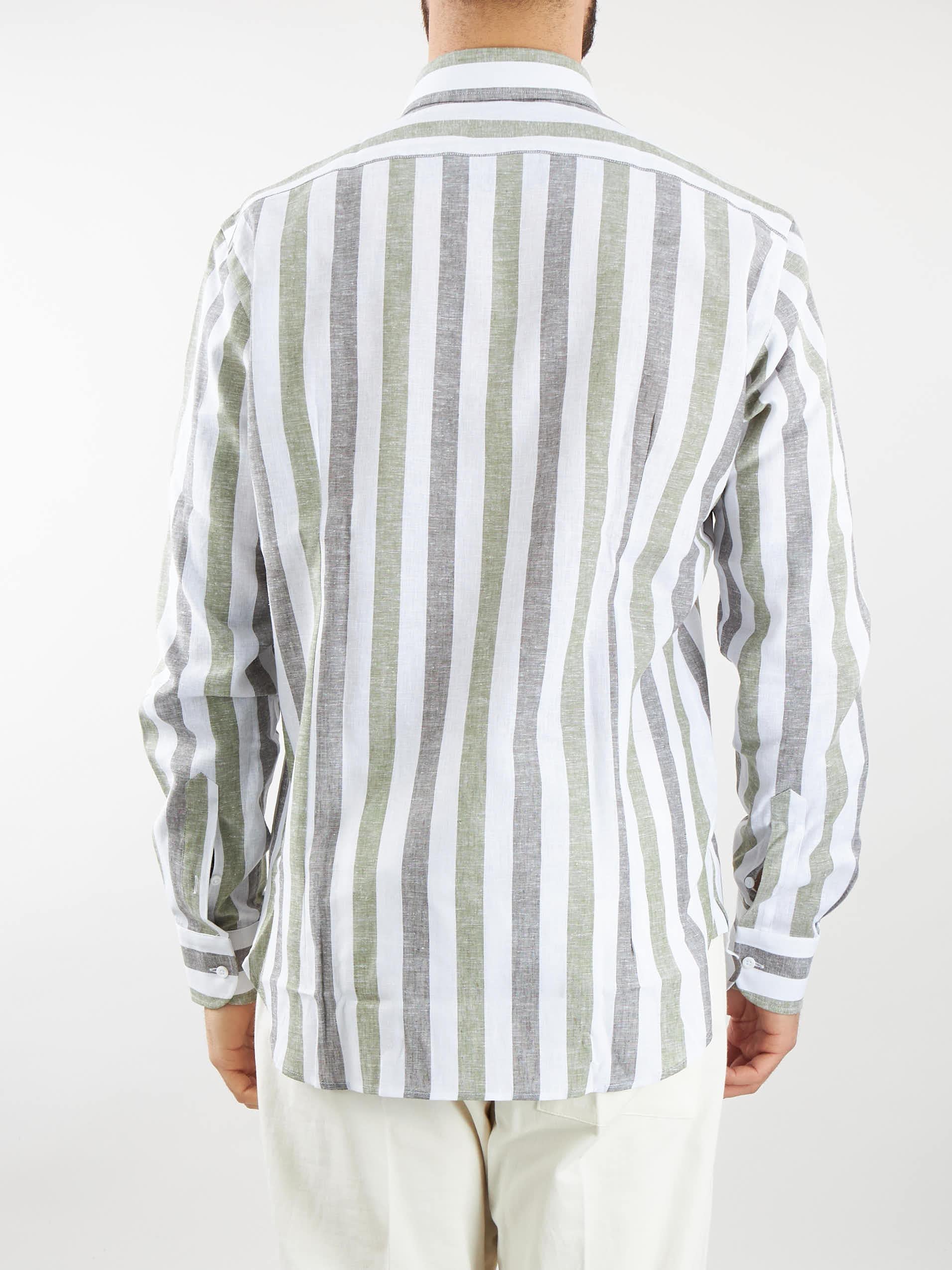 Camicia a righe Blu-Bianco in misto lino e cotone