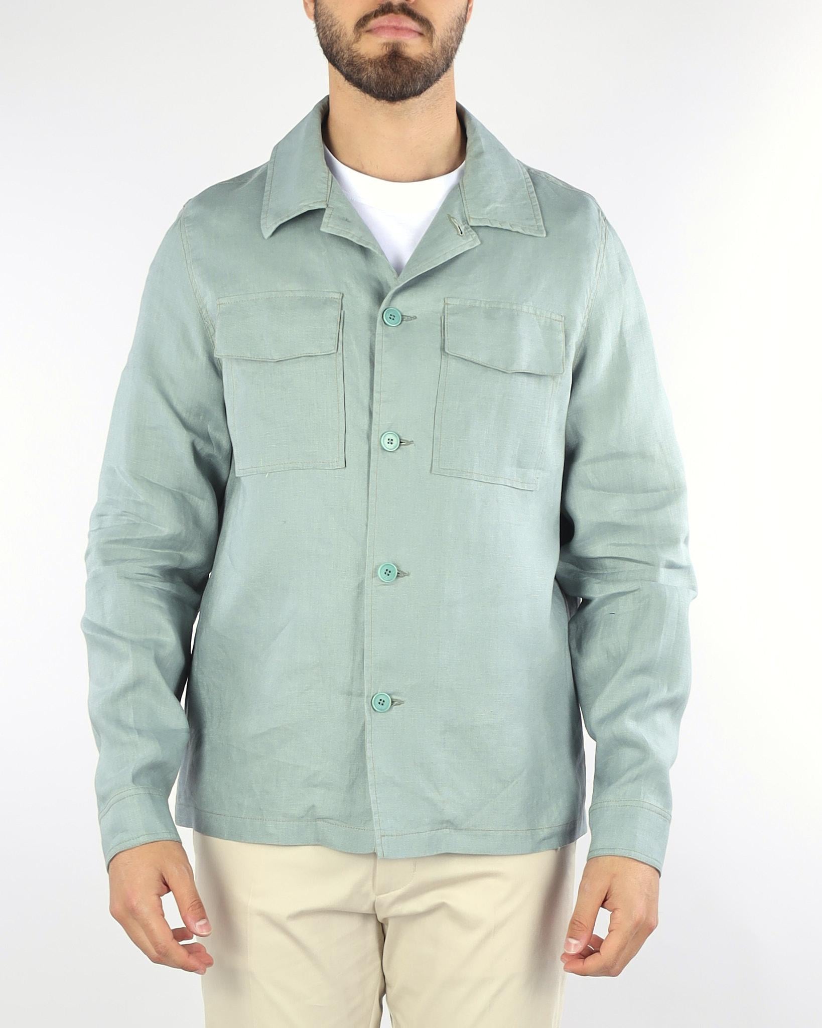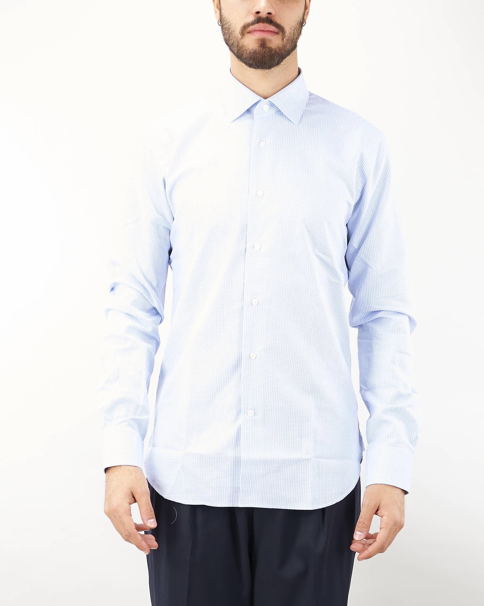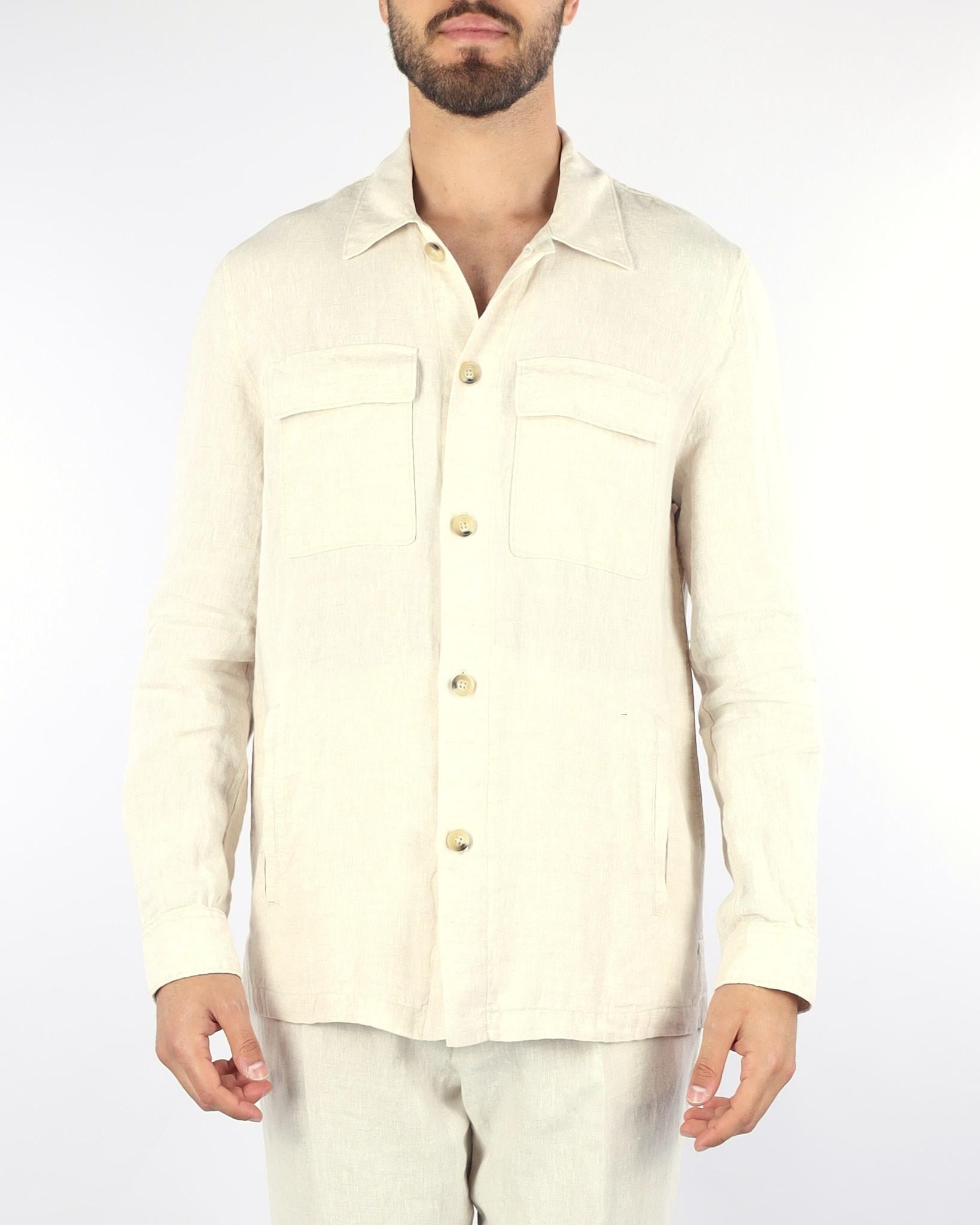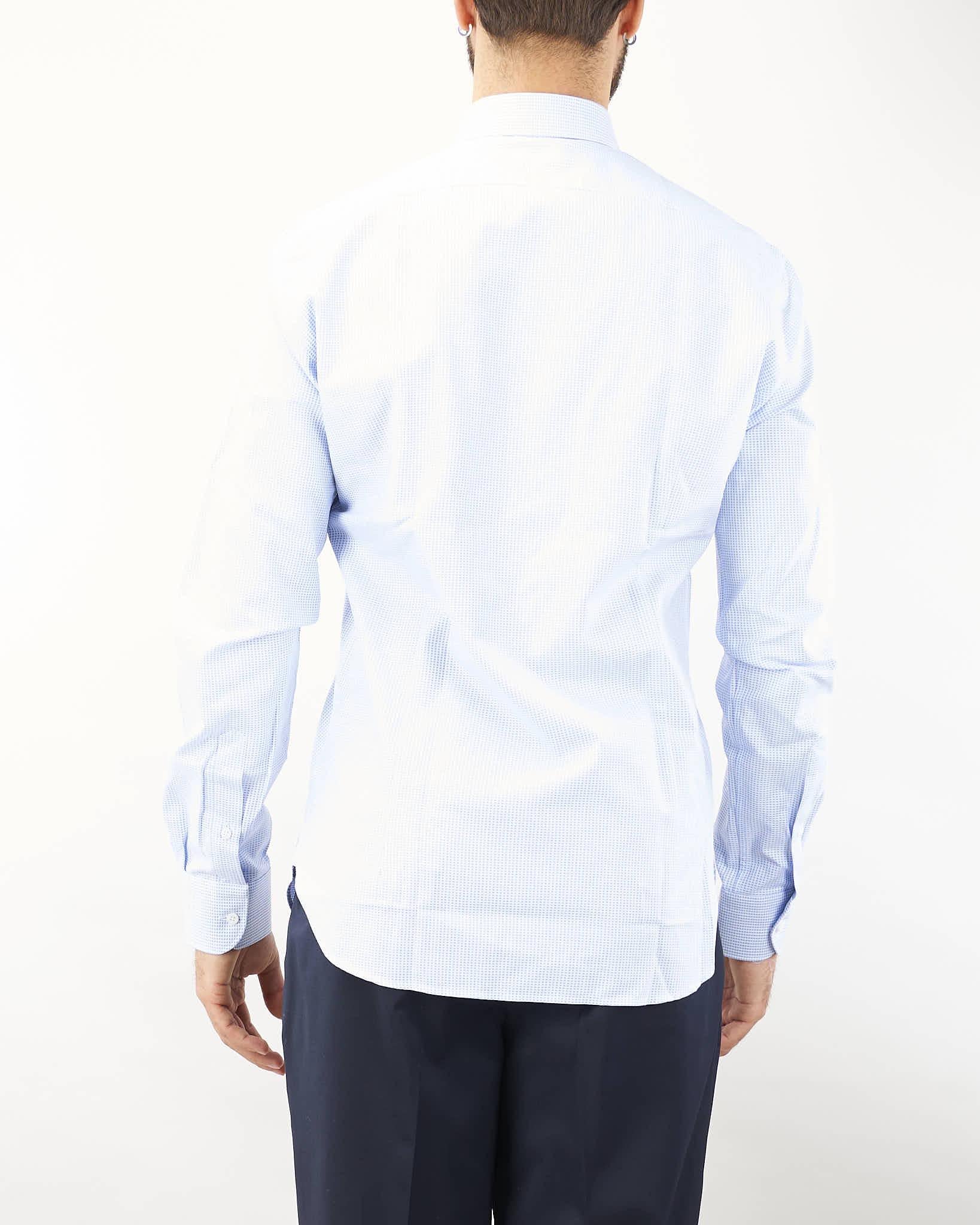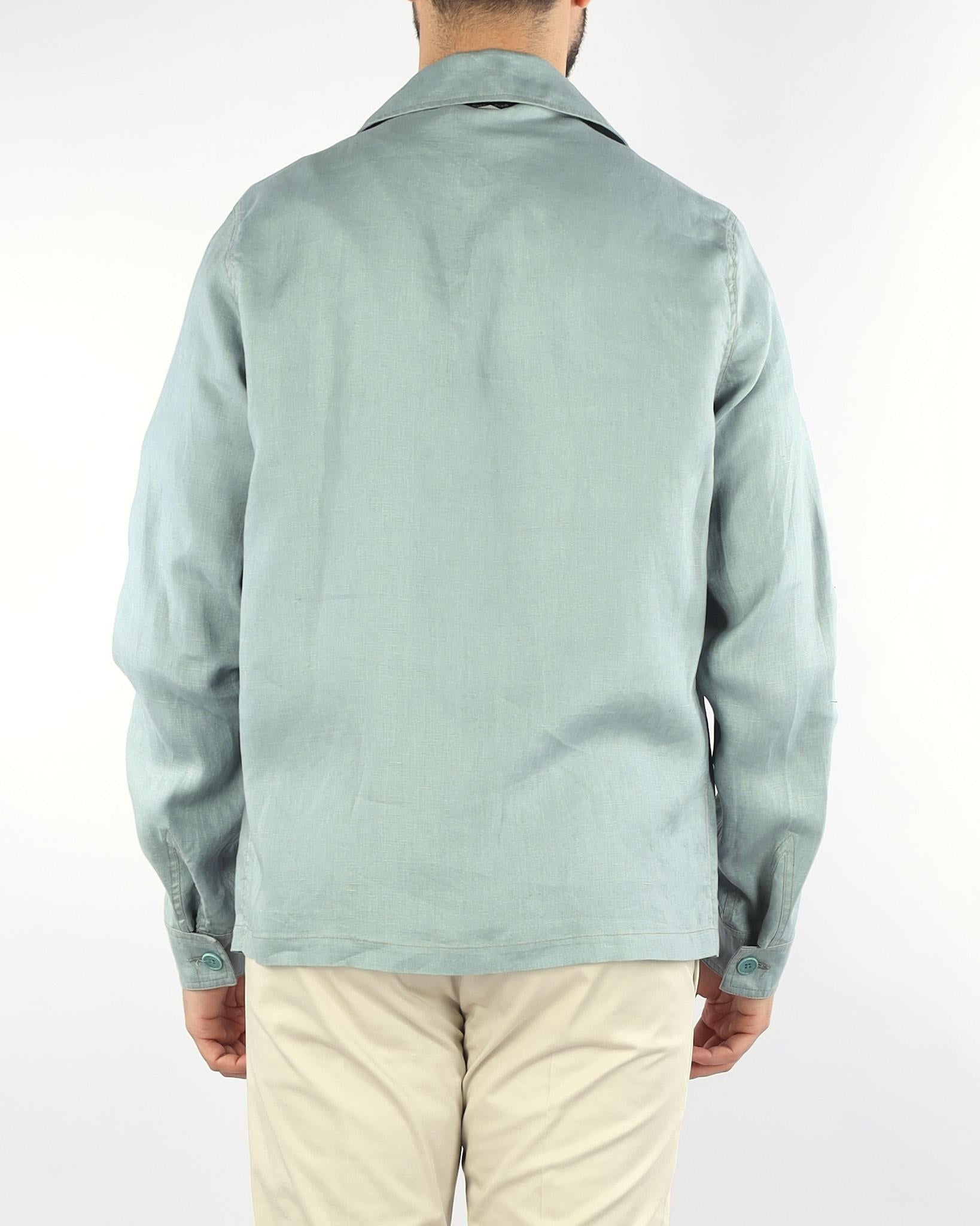 Camicia a righe Blu-Bianco in misto lino e cotone