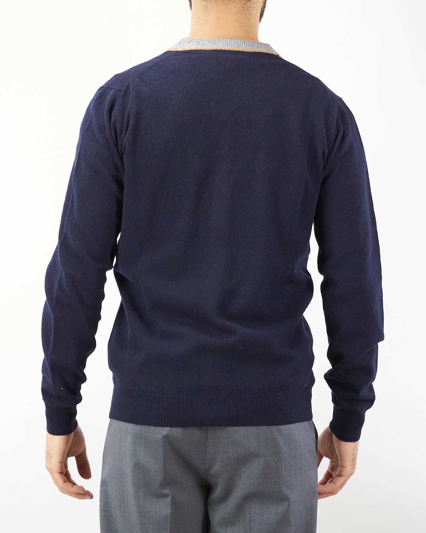 Cardigan Grigio in pura lana con dettagli a contrasto