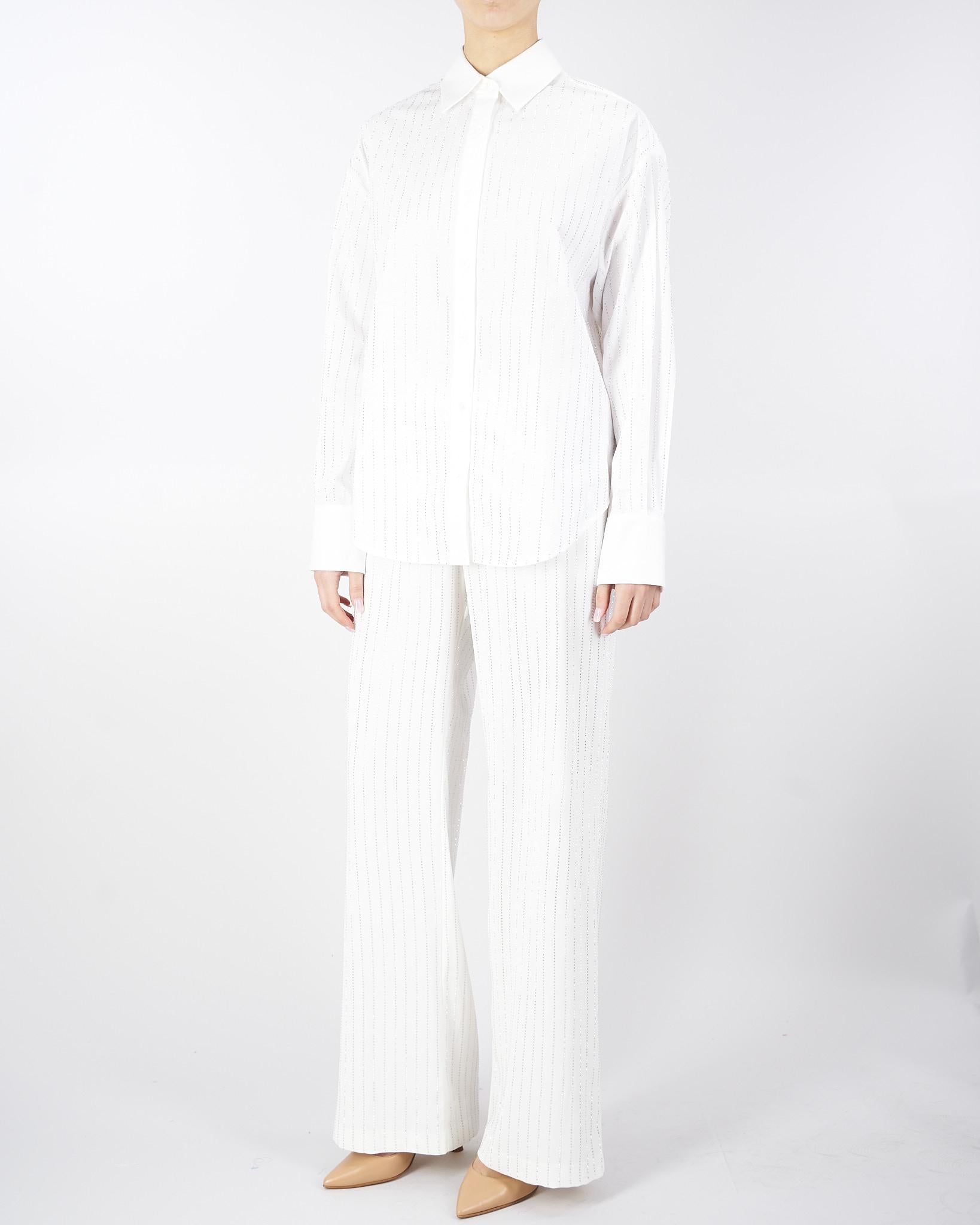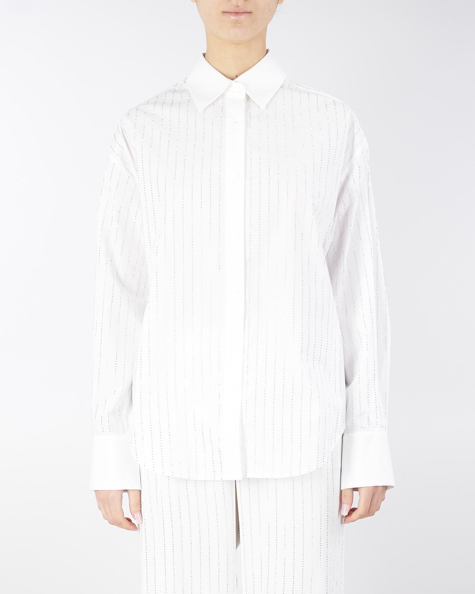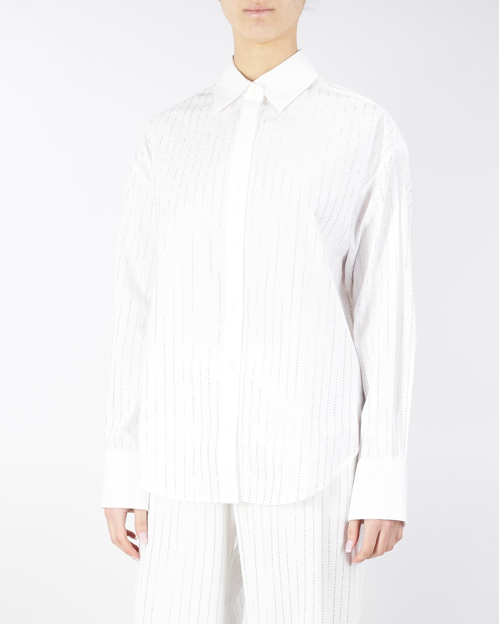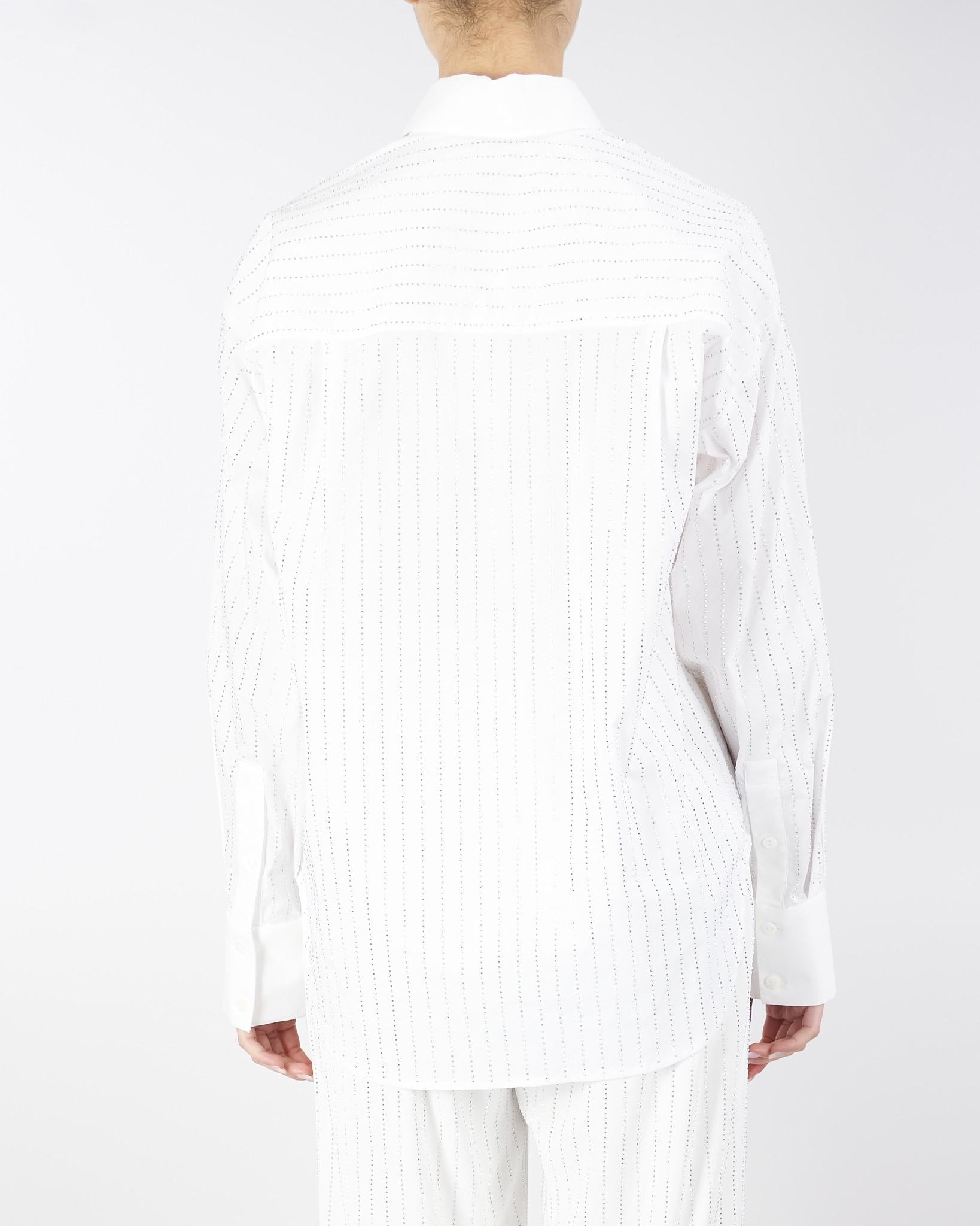Camicia in cotone di Ermanno Scervino. Modello con colletto e maniche lunghe con polsini. Chiusura centrale con bottoni. Dettaglio strass all over.