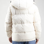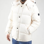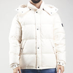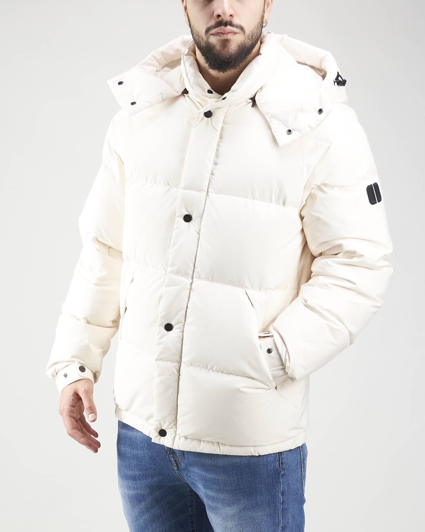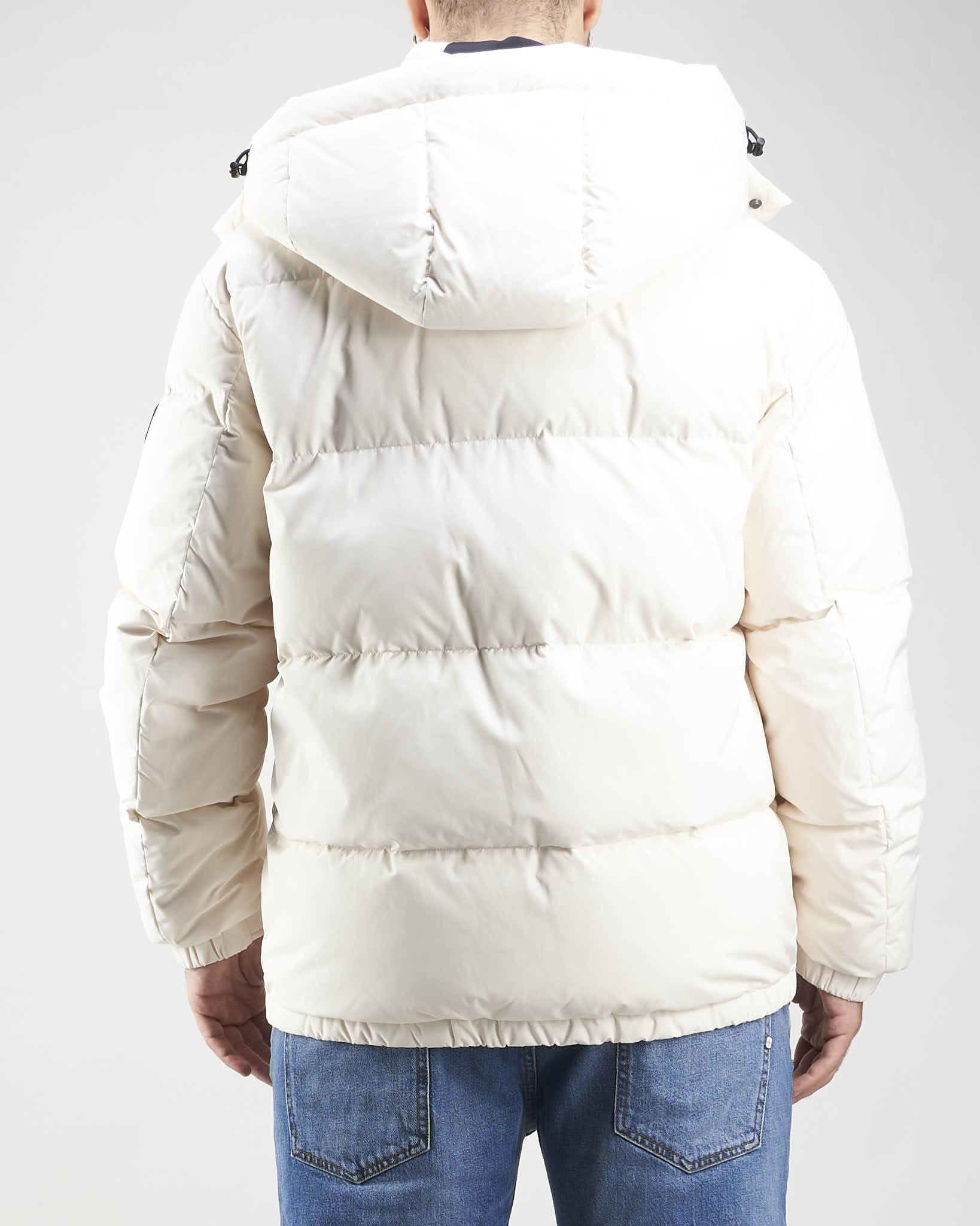Piumino trapuntato in microfibra con cappuccio staccabile e regolabile con coulisse e chiusura con bottoni automatici. Collo a piantana con dettaglio in neoprene con logo in rilievo sul retro, doppia chiusura frontale con cerniera a doppio cursore e bottoni automatici e tasche laterali antivento di ispirazione militare con chiusura a bottone automatico. Polsino con elastico nascosto e bracciale regolabile con bottone a pressione. Tasche interne multifunzionali con cerniera, tracolla staccabile per trasportare il capo sulla spalla ed elastico nascosto sul fondo per regolare la vestibilità.
