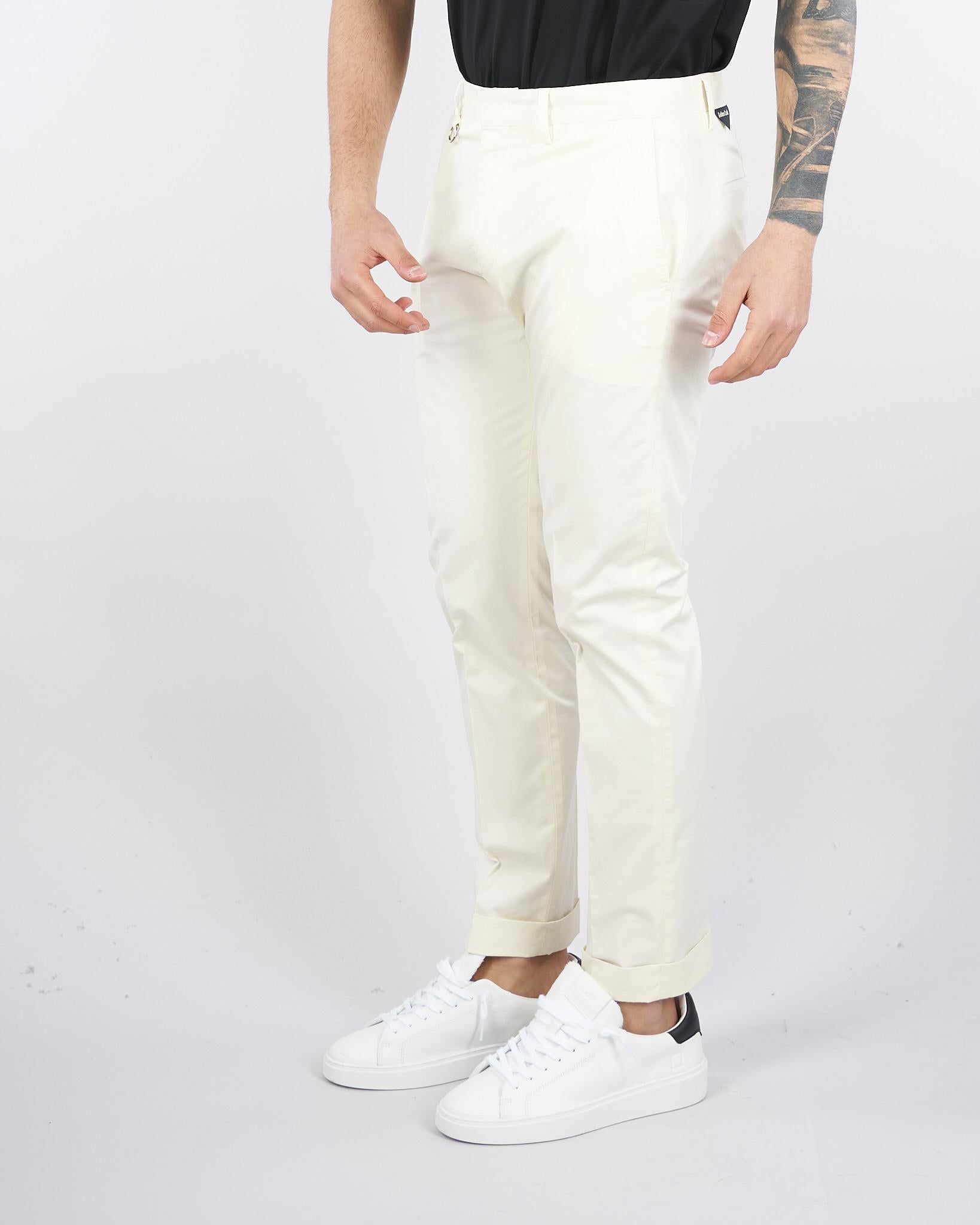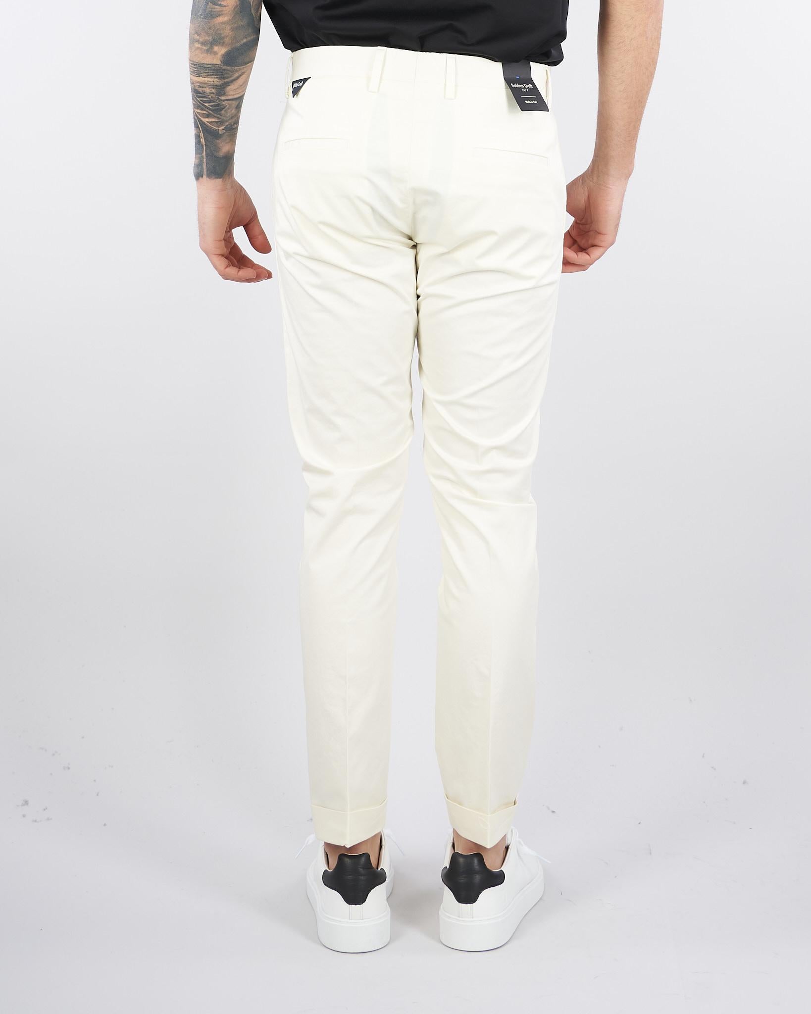 Pantalone in cotone di Golden Craft. Modello con tasche america laterali e tasche a filo sul retro. Chiusura centrale con zip e gancio. Fondo con risvolto. Slim fit.