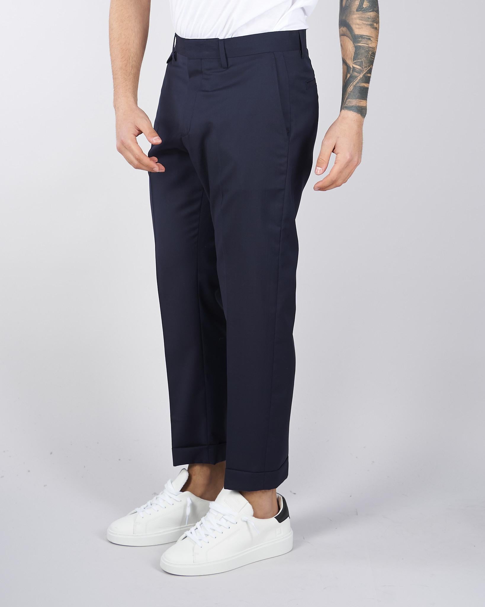 Pantalone in fresco lana di Low Brand. Modello Cooper, tasche america laterali e tasche a filo sul retro. Chiusura con zip e gancio. Logo sul retro. Fondo con risvolto. Regular fit.