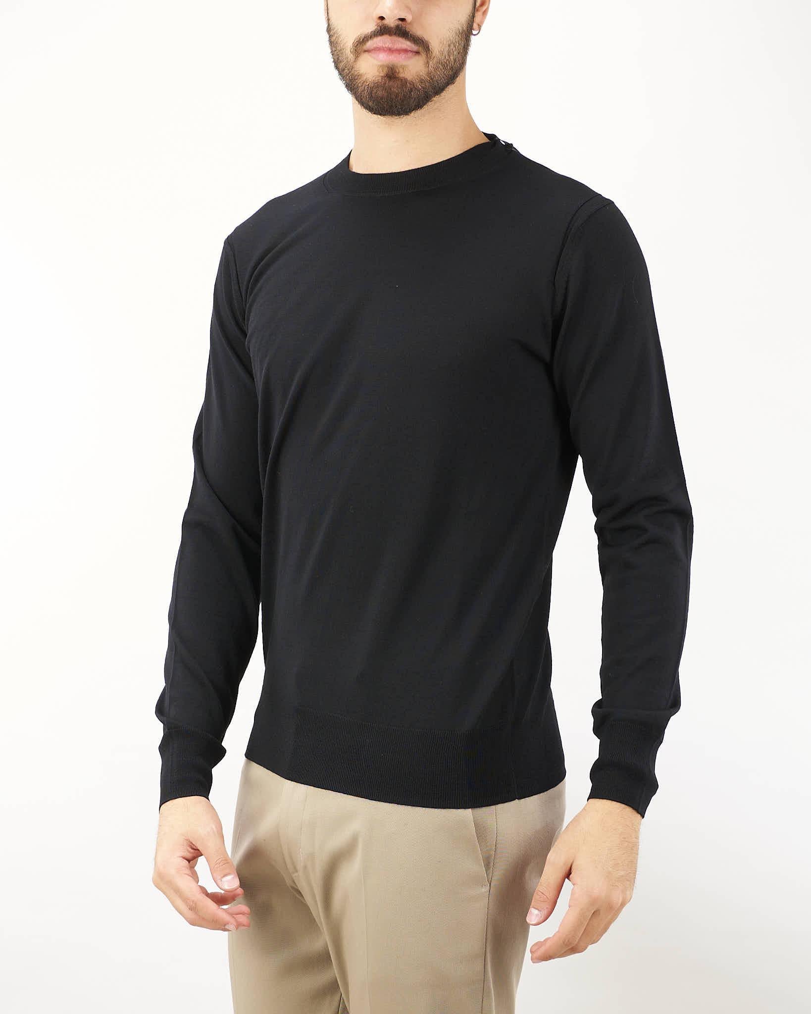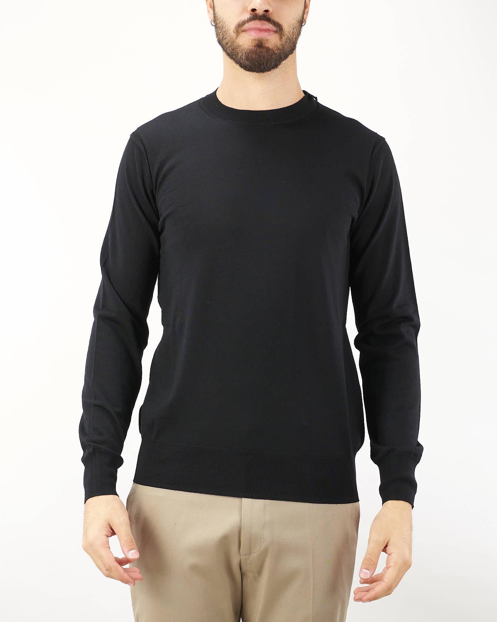 Maglia in lana merinos extrafine Finezza 16 di Paolo Pecora. Modello girocollo con maniche lunghe. Fondo e polsini a costine. Regular fit.
