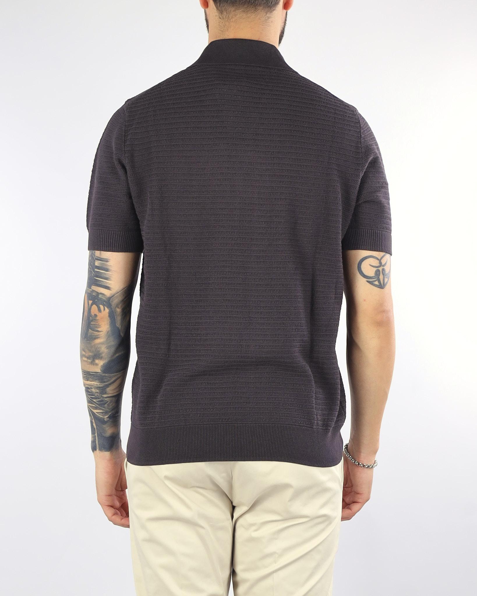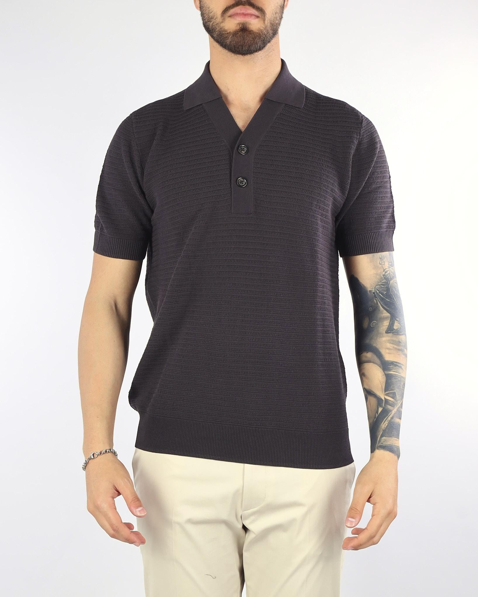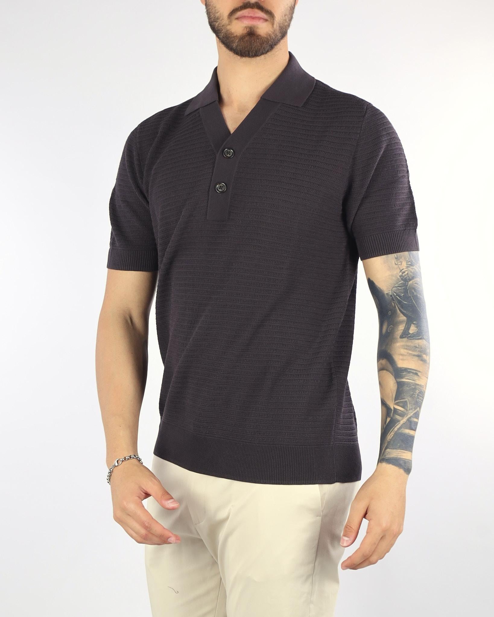 Perfetta per creare look raffinati e versatili in ogni occasione, la maglia a manica corta in cotone crepe extrafine è disponibile nel classico e sofisticato colore marrone. Caratterizzata da una lavorazione a motivo diagonale che le conferisce un tocco distintivo, è impreziosita da bottoni in madreperla, per un tocco di lusso.