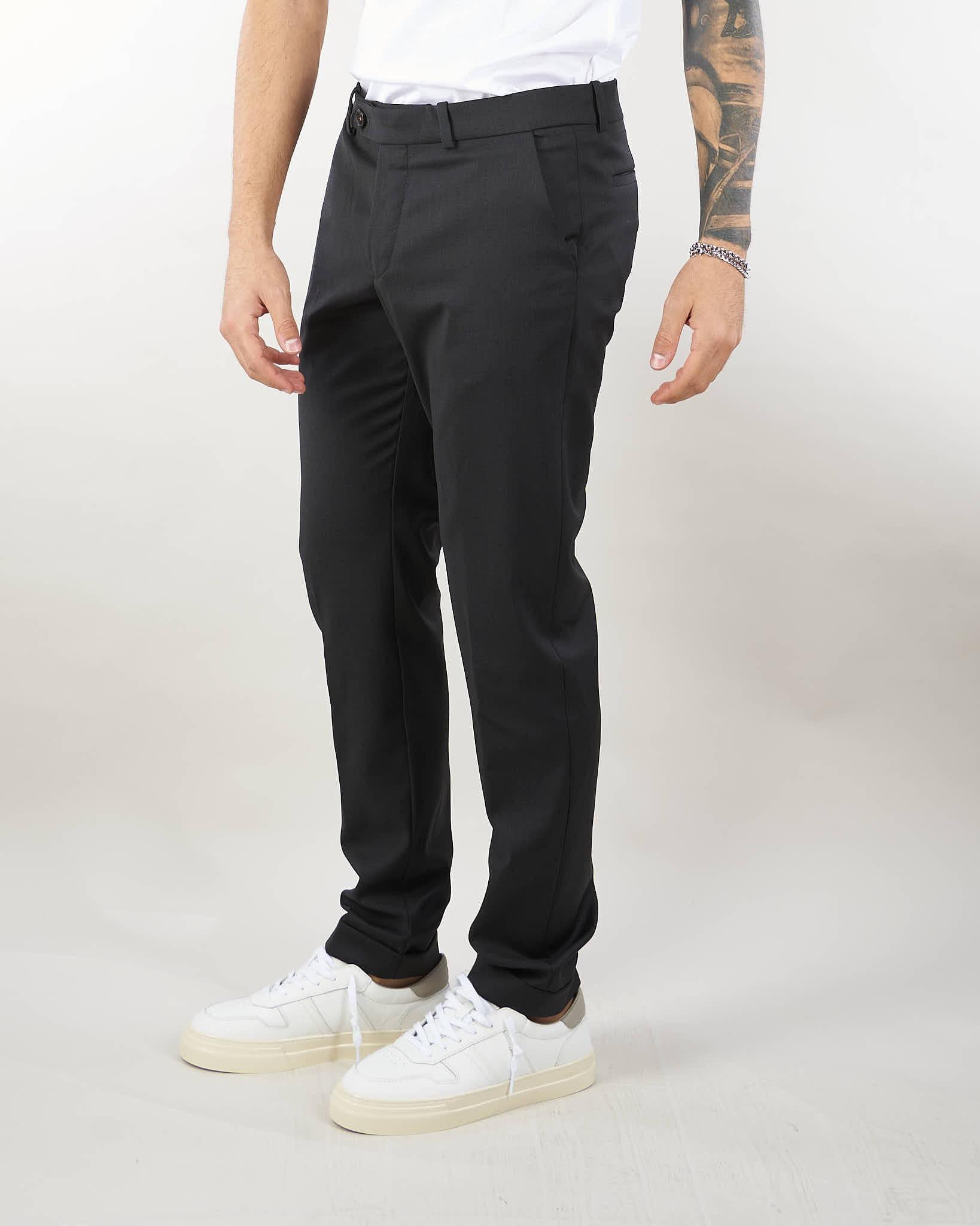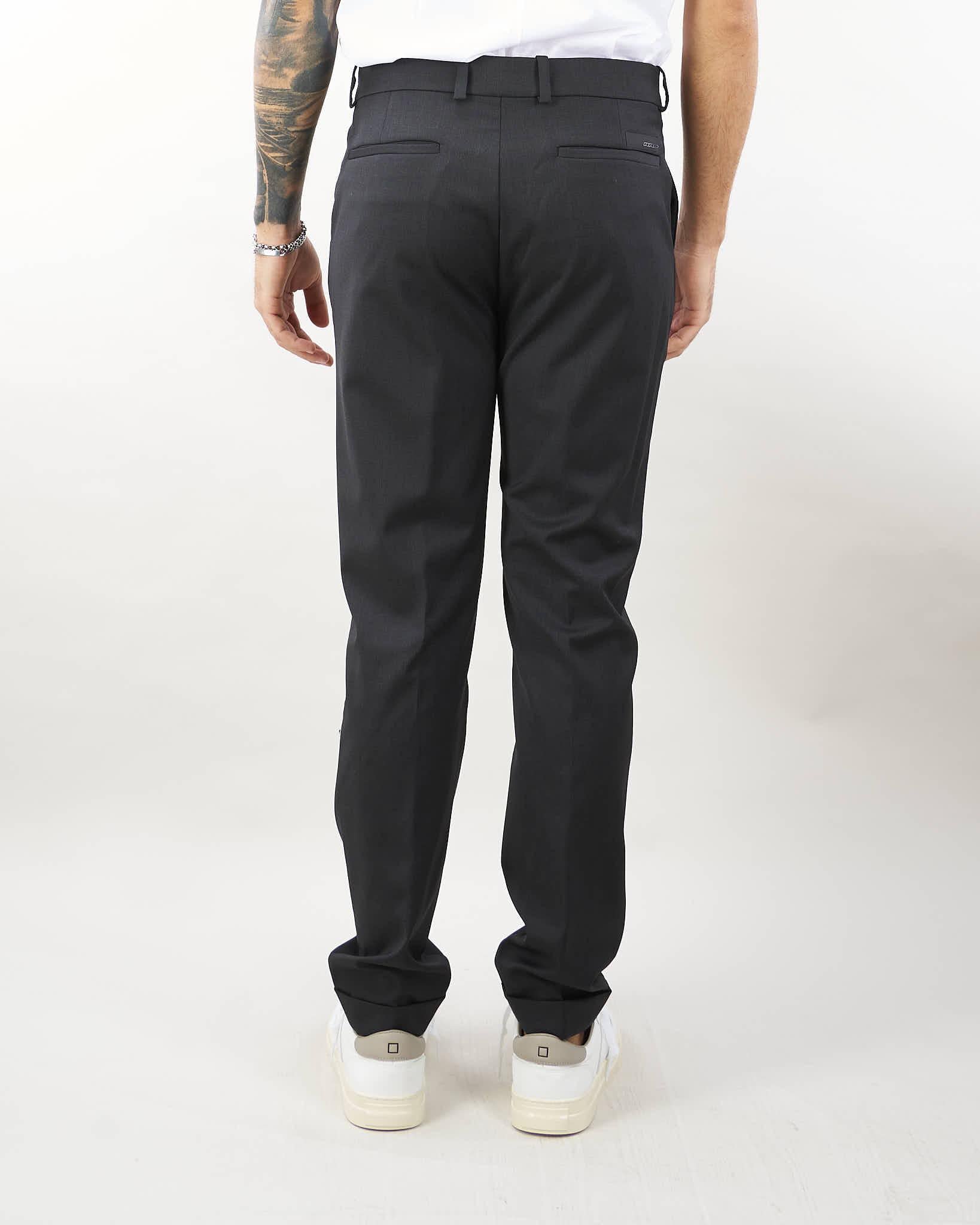 La vocazione sartoriale della linea Terzilio si esprime in questi pantaloni chino in techno wool elasticizzata, che unisce l'eleganza sobria e signorile e l'estrema finezza alla modernità del tessuto Stratofabric#2. Il modello dalla vita media e fit regolare si distingue per la cura dei dettagli, a cominciare dalla cintura a passanti con regolazione in vita a doppio bottone in corno e l'interno stampato nell'esclusivo Monogram Razzle Dazzle nero. La chiusura a zip sul davanti è dissimulata dalla patta e affiancata dalle classiche tasche alla francese. La gamba diritta è completata dai risvolti alle caviglie. Il logo a microiniezione nero impreziosisce le tasche posteriori a filetto e firma un pantalone ideale nella composizione di un outfit formale.