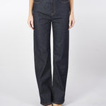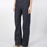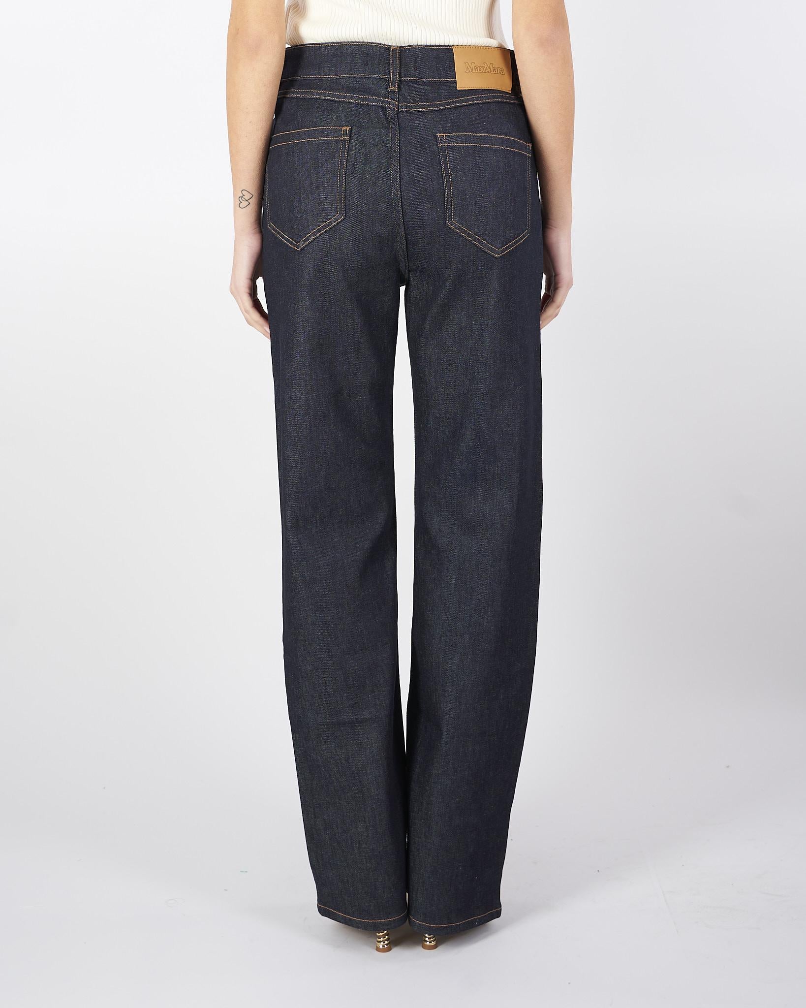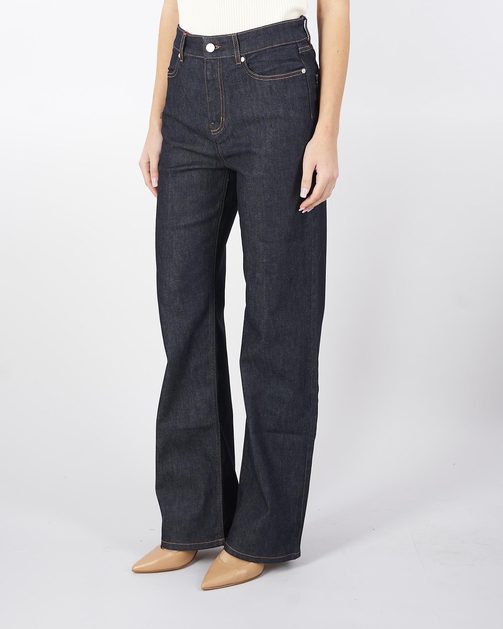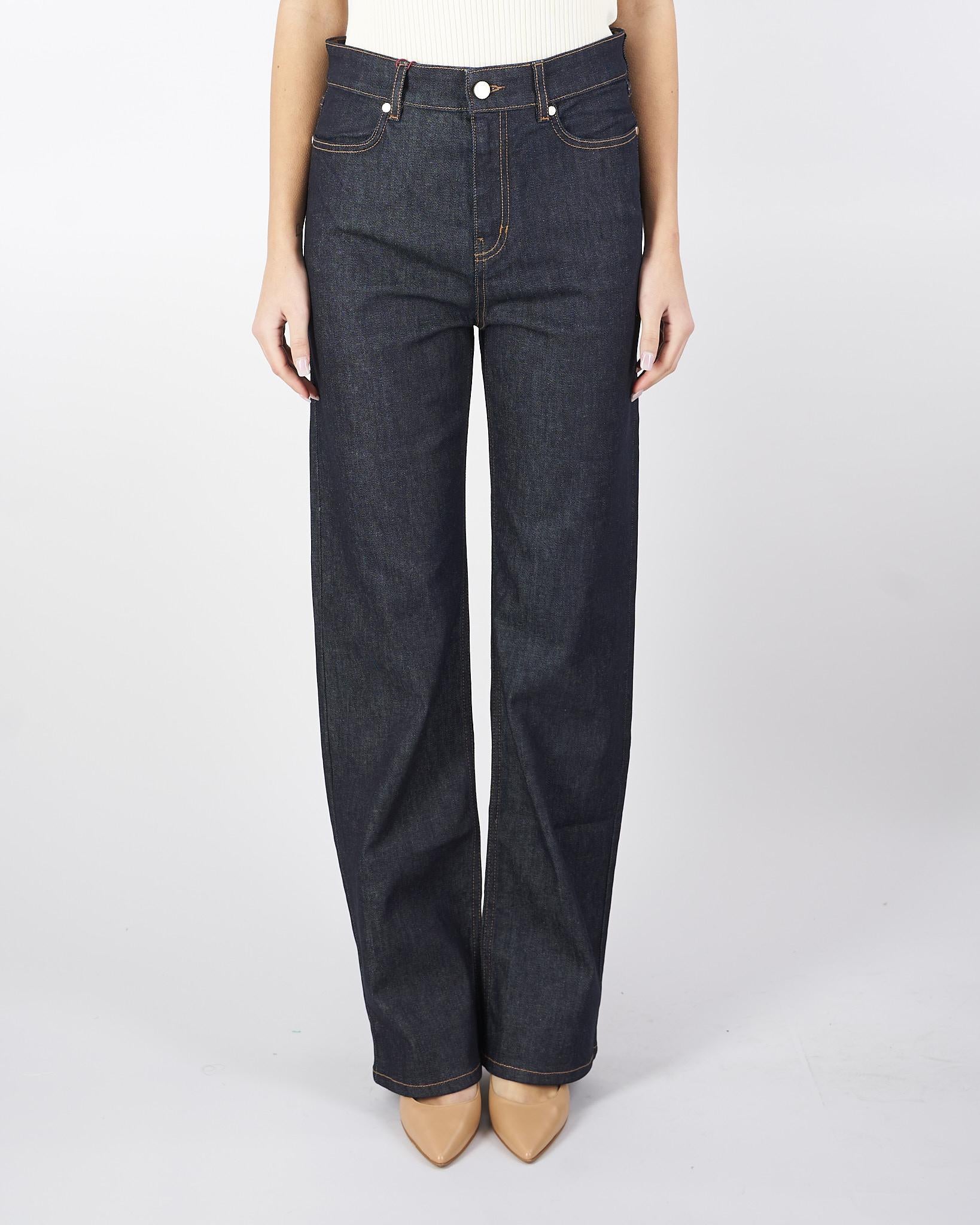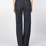 Jeans 5 tasche in denim di cotone stretch, caratterizzato da una silhouette con gamba dritta e tasche applicate sul retro. Rifinito con impunture a contrasto color cuoio, rivetti in metallo e nuova label in vita sul retro. Chiusura con lampo coperta e bottone.