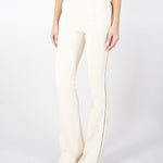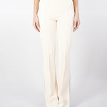 Pantaloni in crêpe stretch leggero con fascione in vita e gamba svasata al fondo. Il capo si distingue per i dettagli di piping a contrasto sui fianchi e nelle patte sul retro, per una nota grafica. Logo ricamato in filo su una patta.