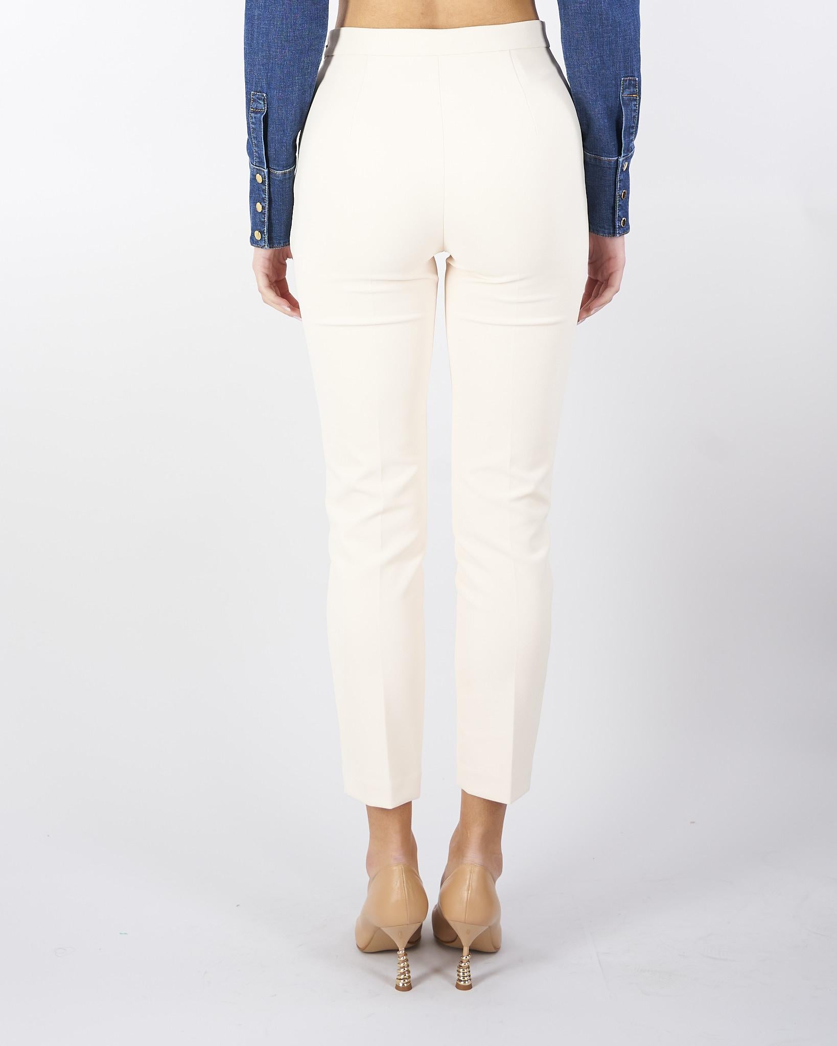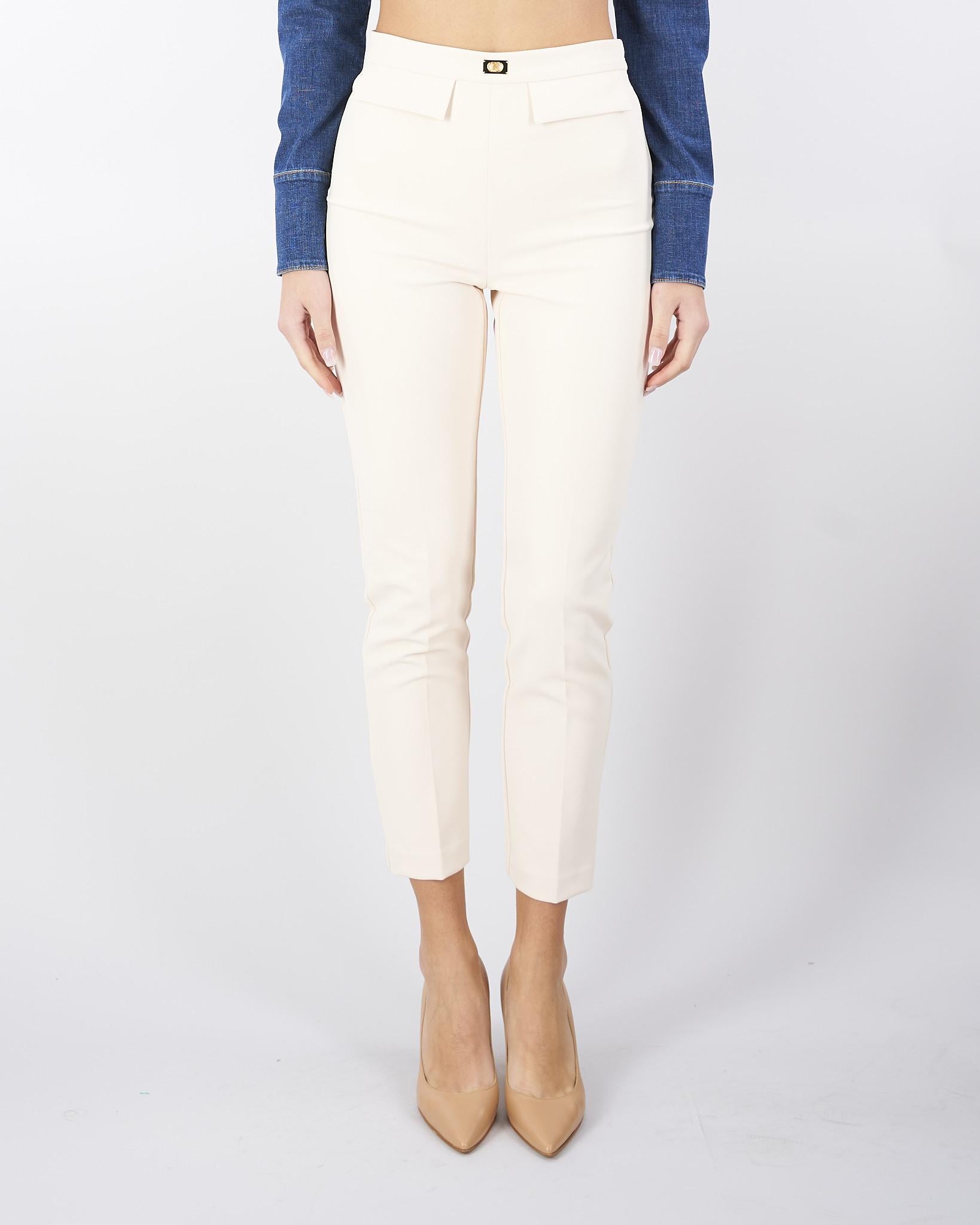 Pantaloni a matita in crêpe stretch con patte sul davanti. A impreziosire, la placca con logo in metallo dorato sul fascione. Vestibilità slim con lunghezza alla caviglia. Parte della collezione Essential, per costruire il guardaroba perfetto.
