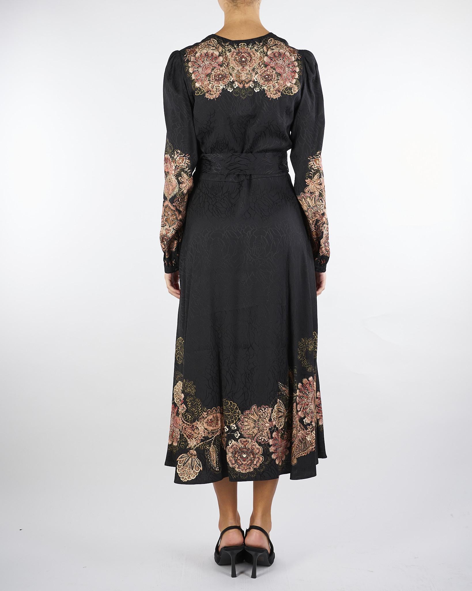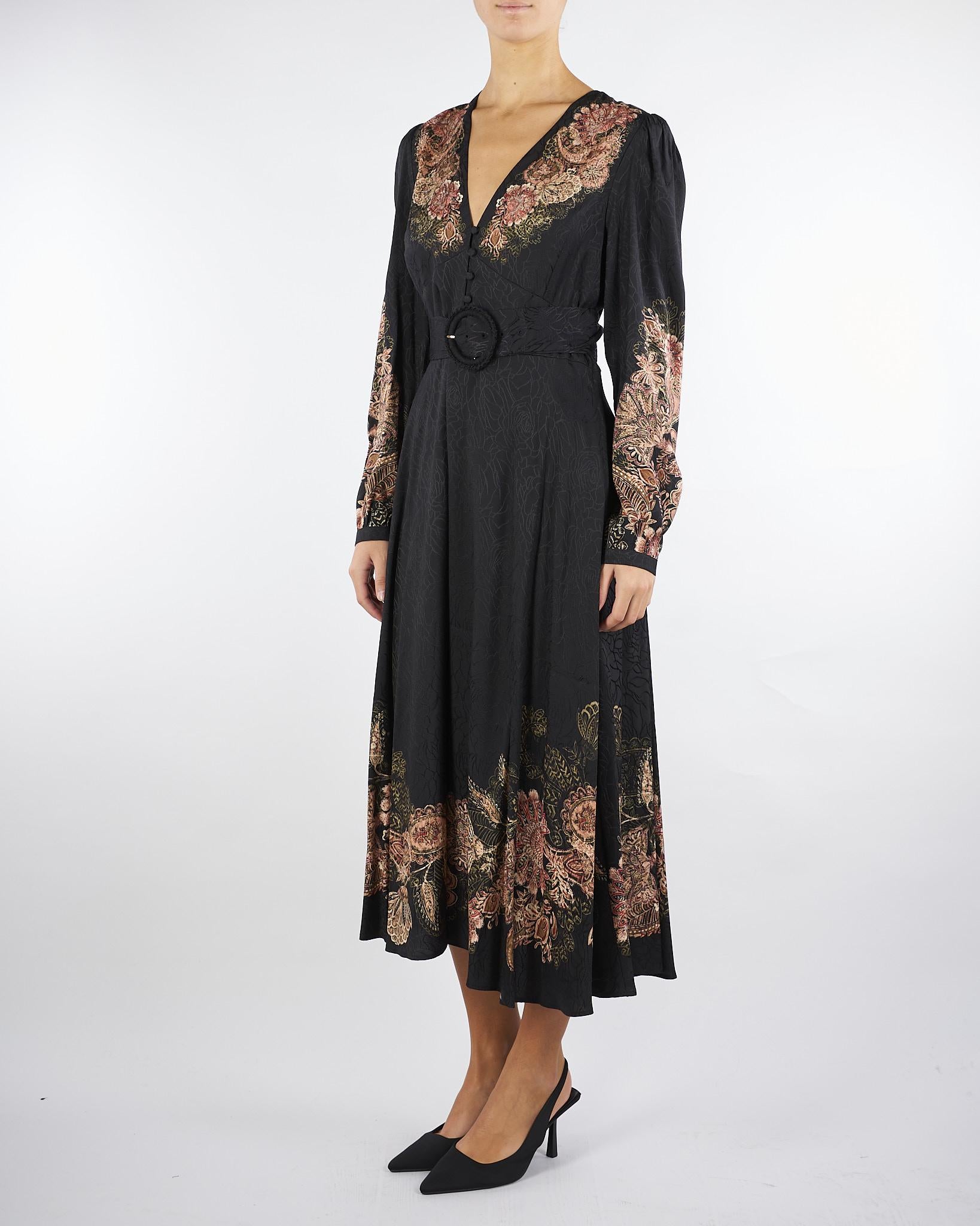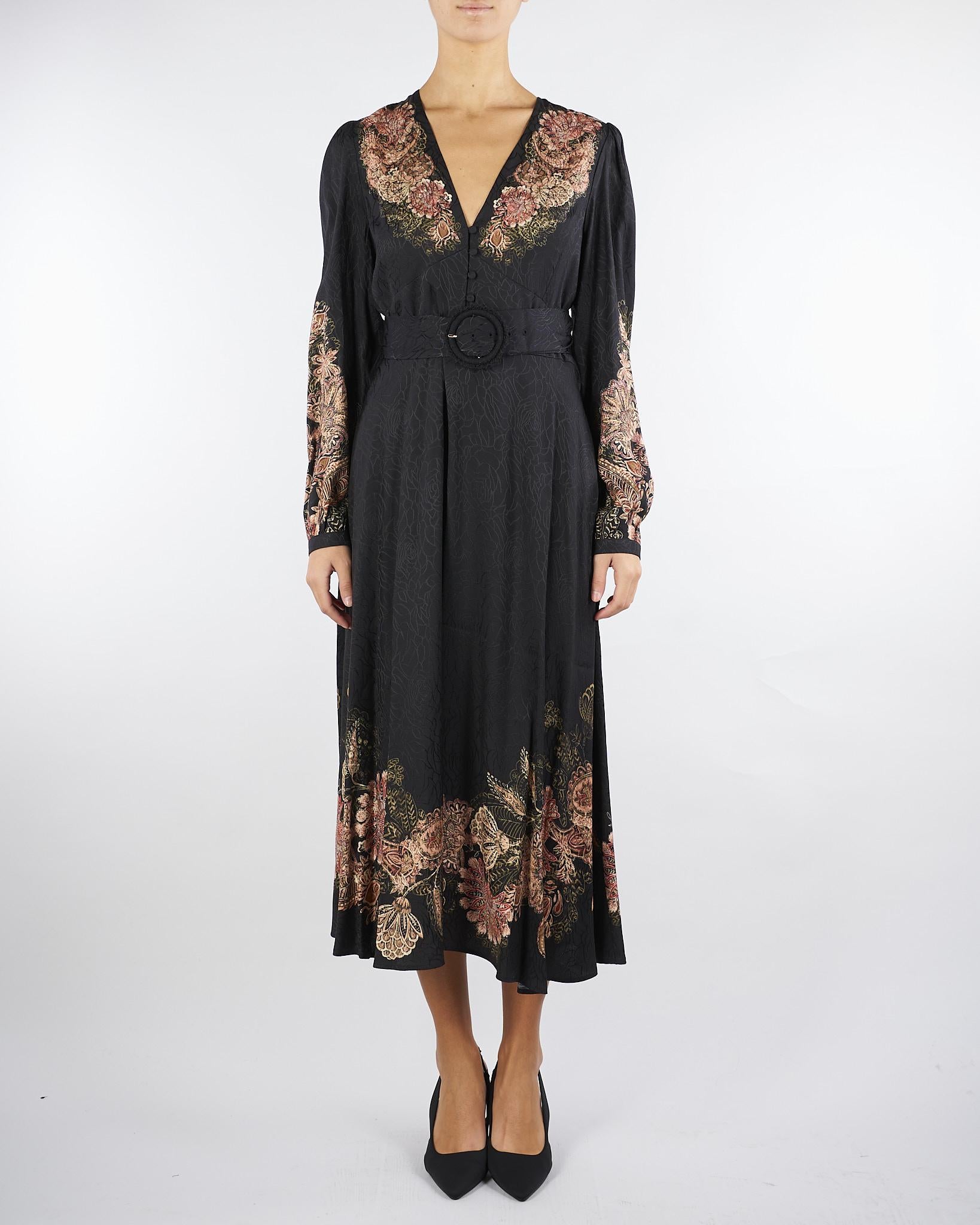 Abito con fantasia di Twinset. Modello chemisier con scollo a V e maniche lunghe. Cintura coordinata in vita.