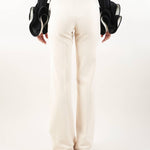 Pantalone palazzo in doppio crêpe stretch. È caratterizzato da fascione impreziosito da rivetto logo e tasche con patte rifinite da bottoni in metallo dorato.