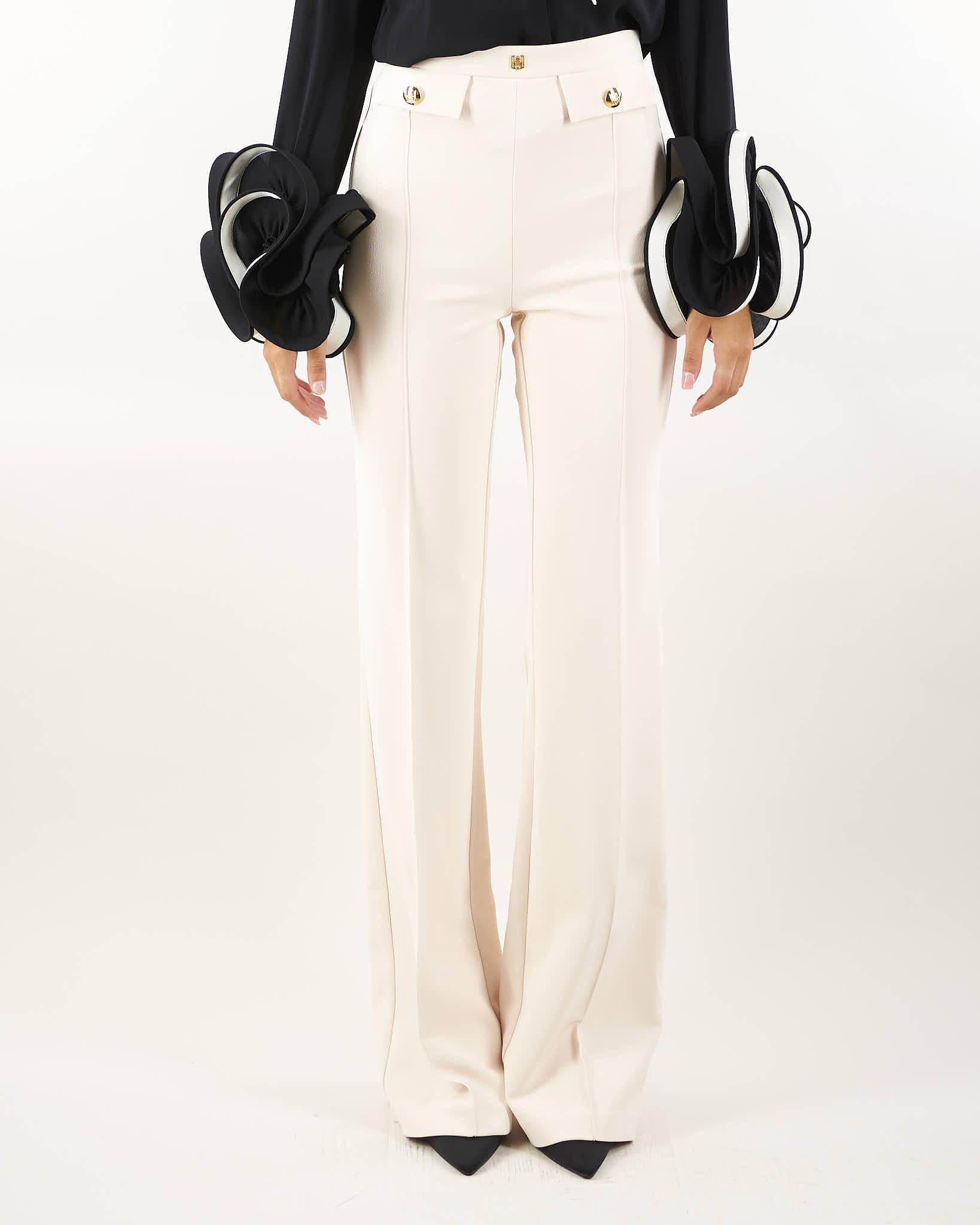 Pantalone palazzo in crêpe stretch con rivetto logo Elisabetta Franchi
