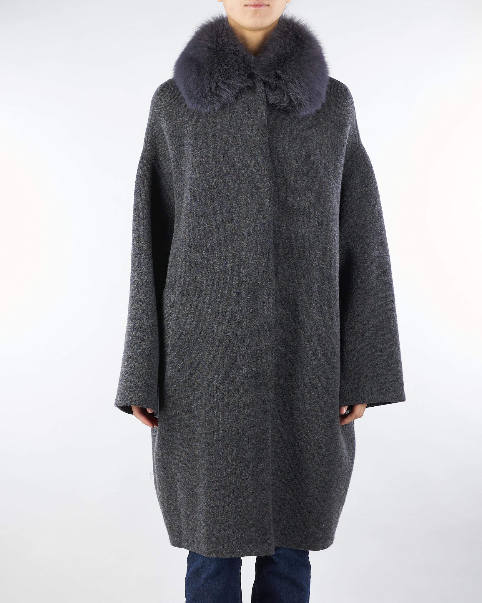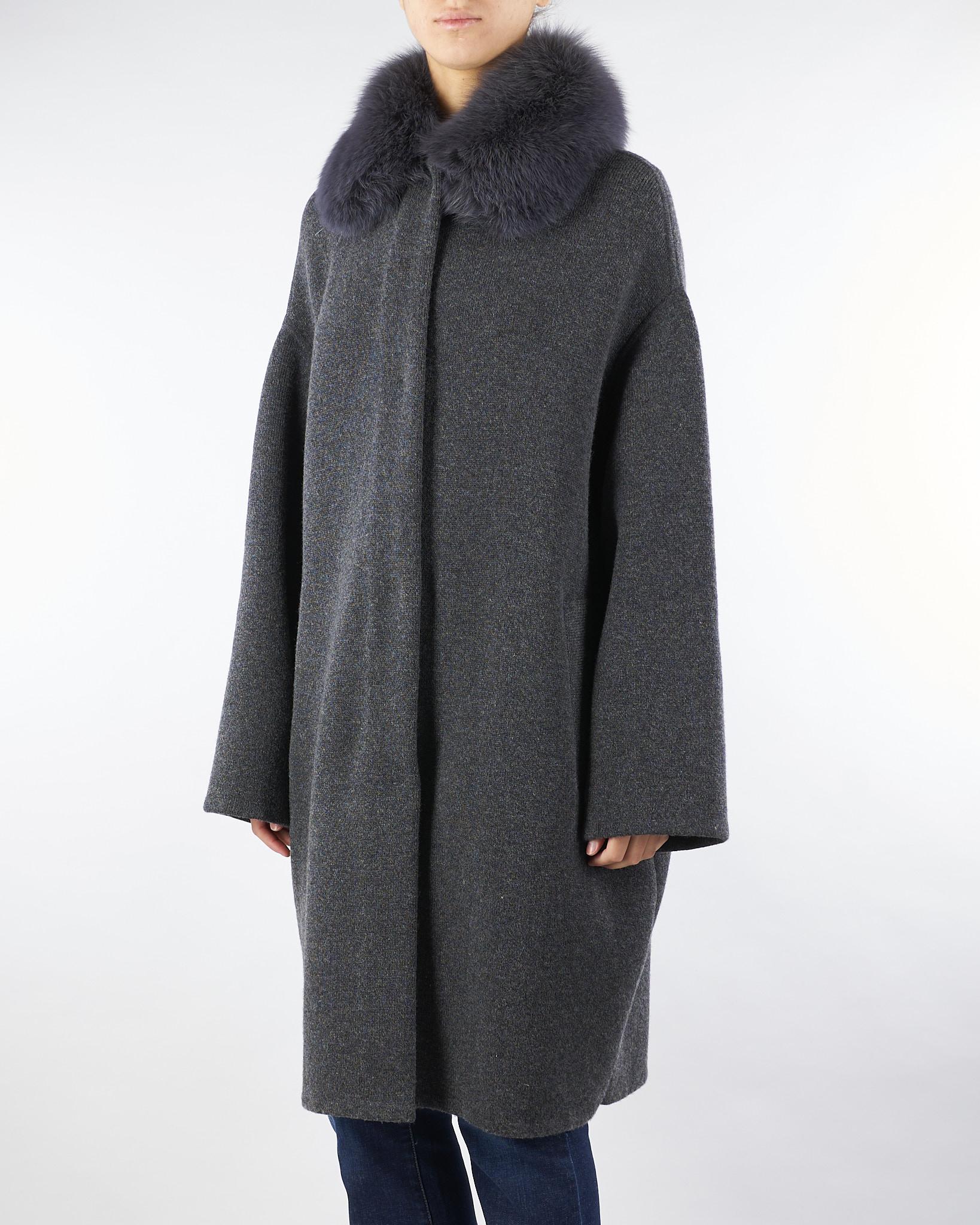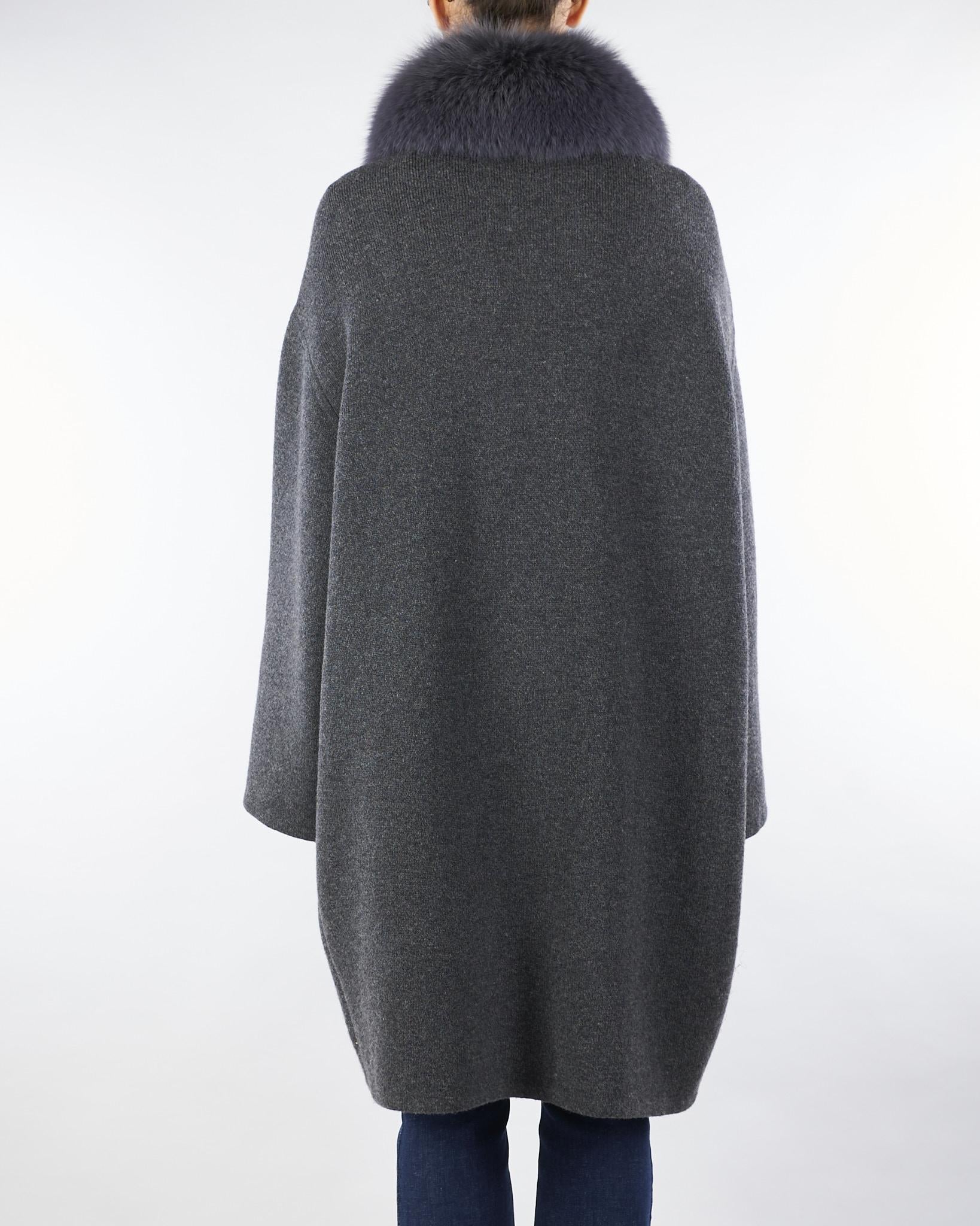 Mantella Antracite in pura lana merinos con inserti in vera pelliccia