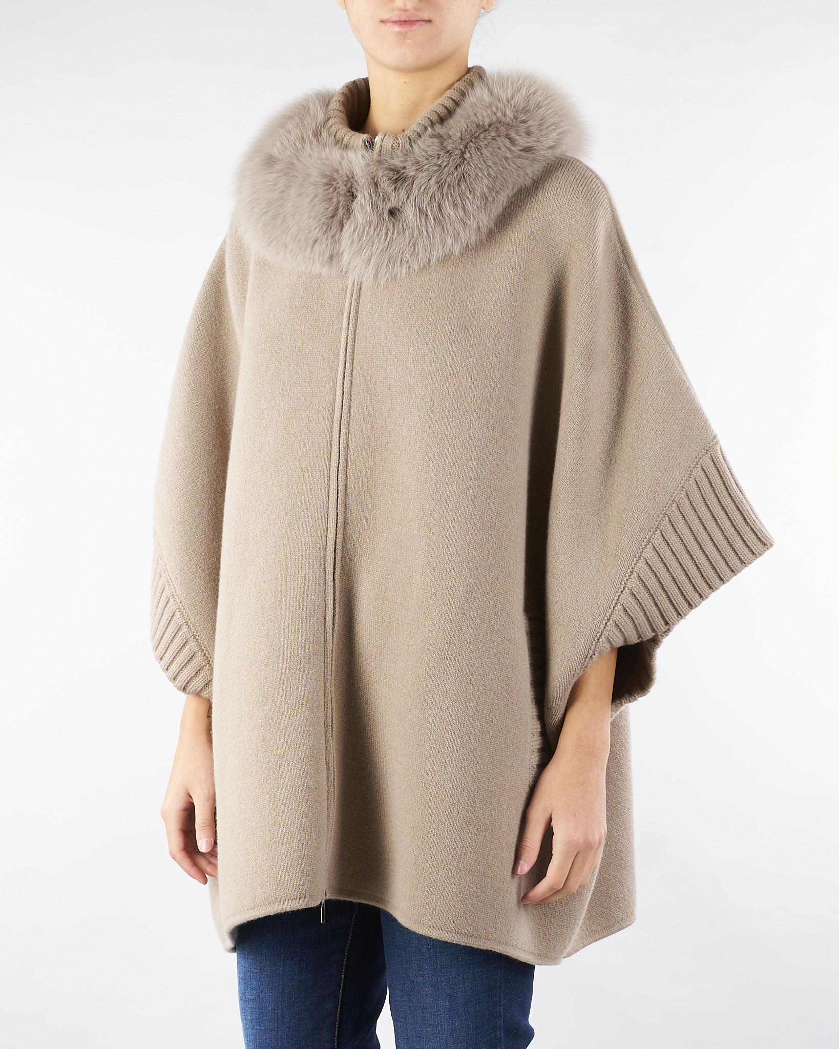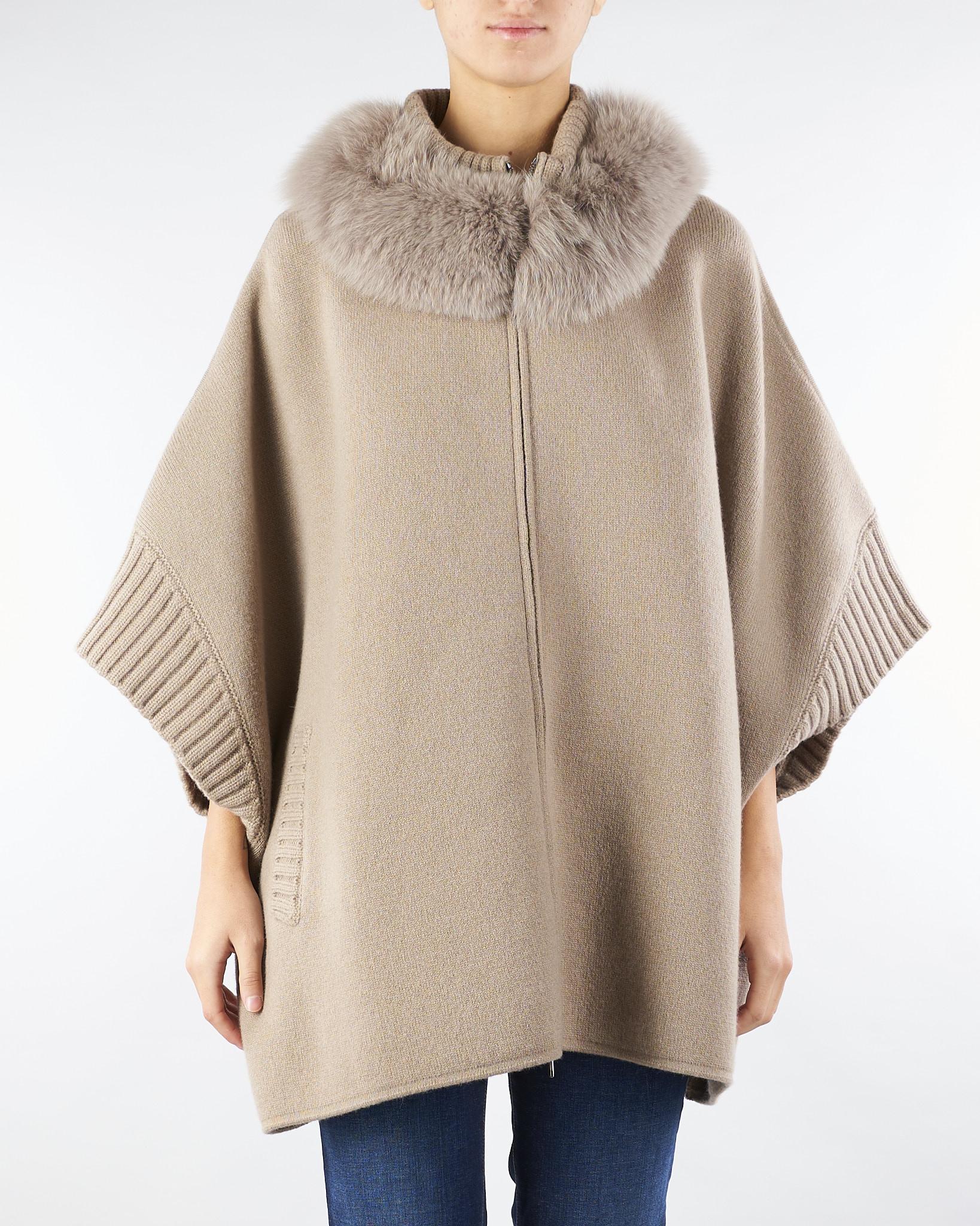 Mantella Sabbia in pura lana merinos con inserti in vera pelliccia