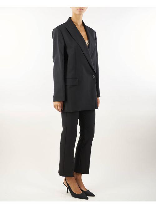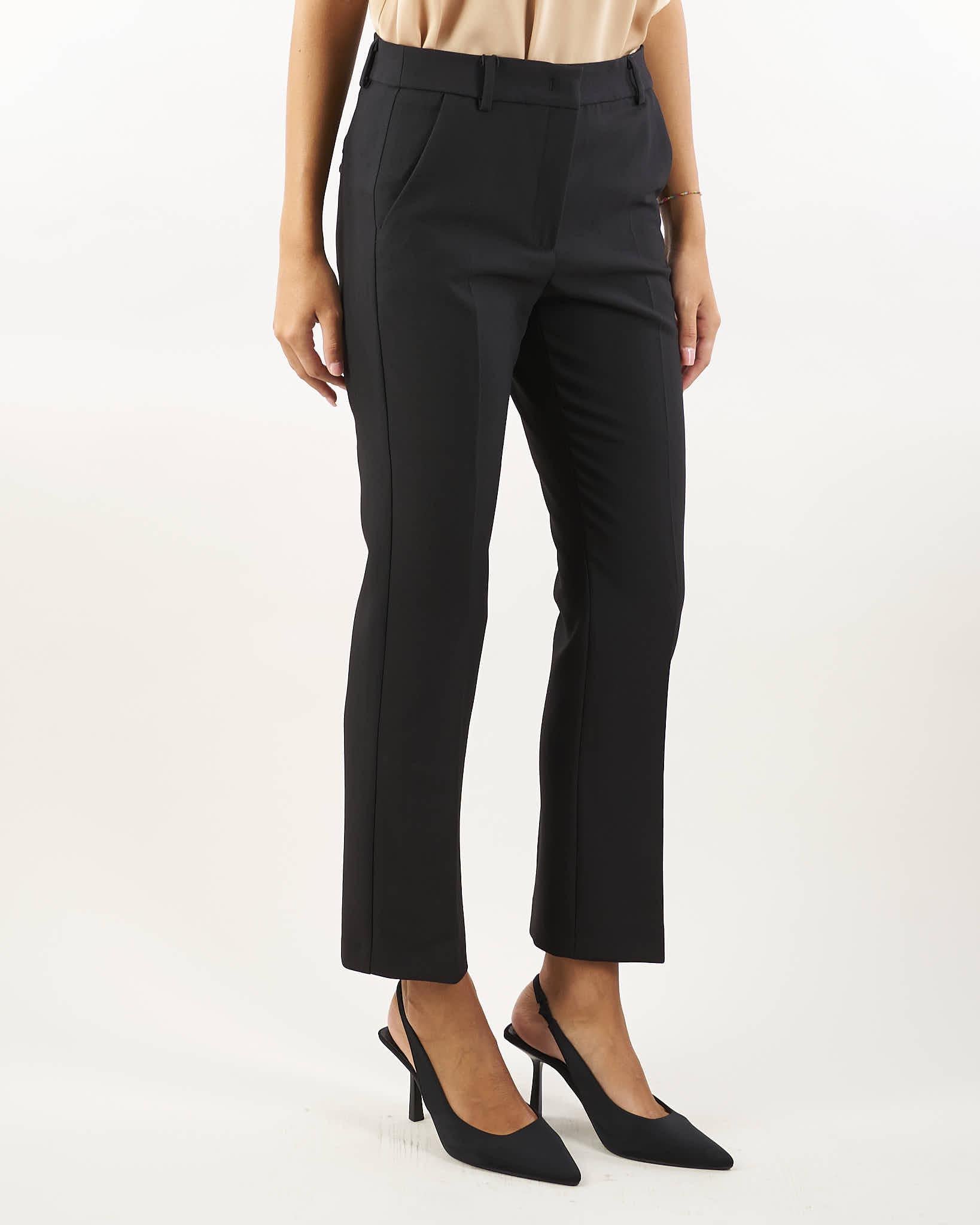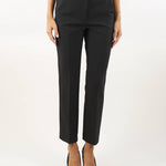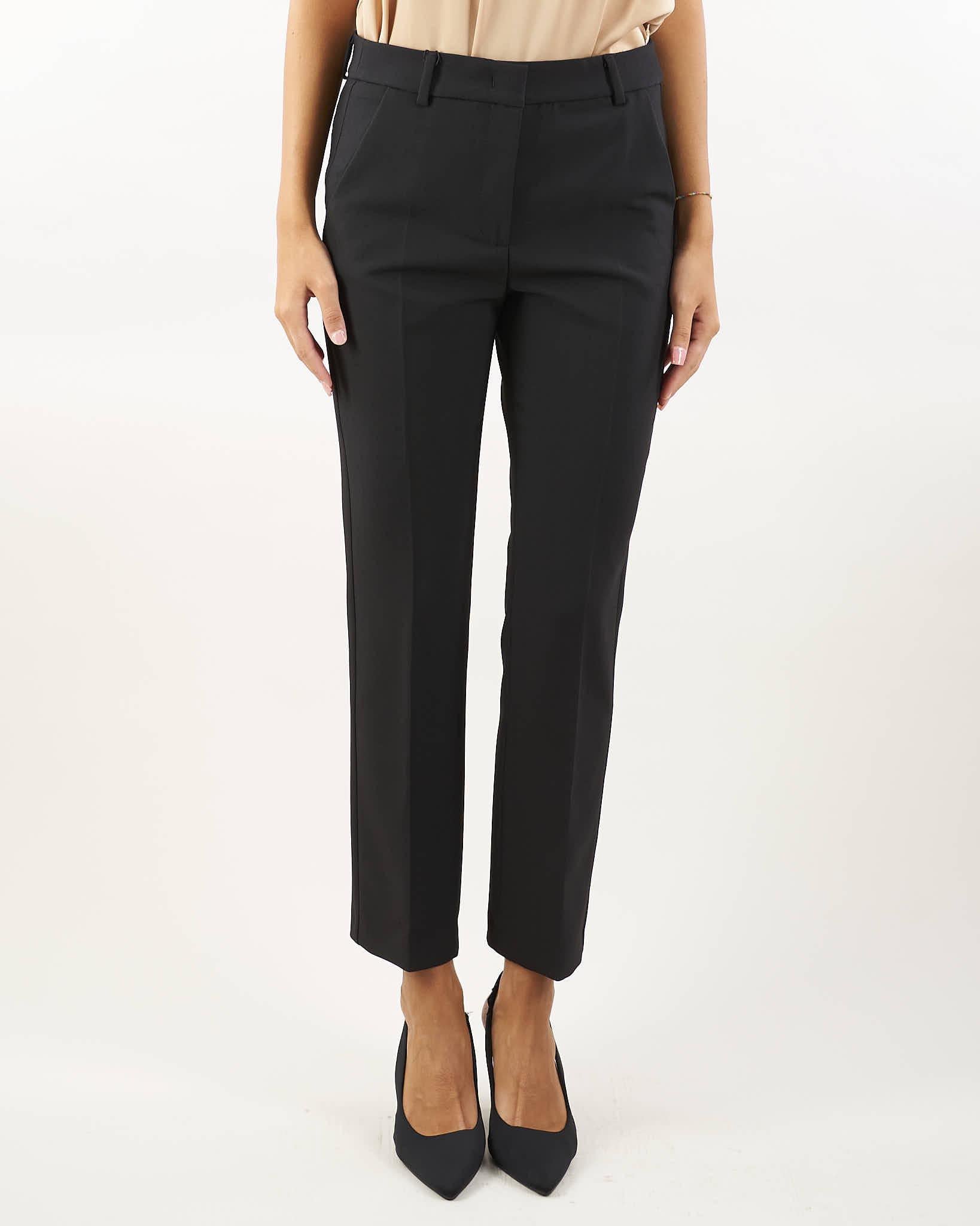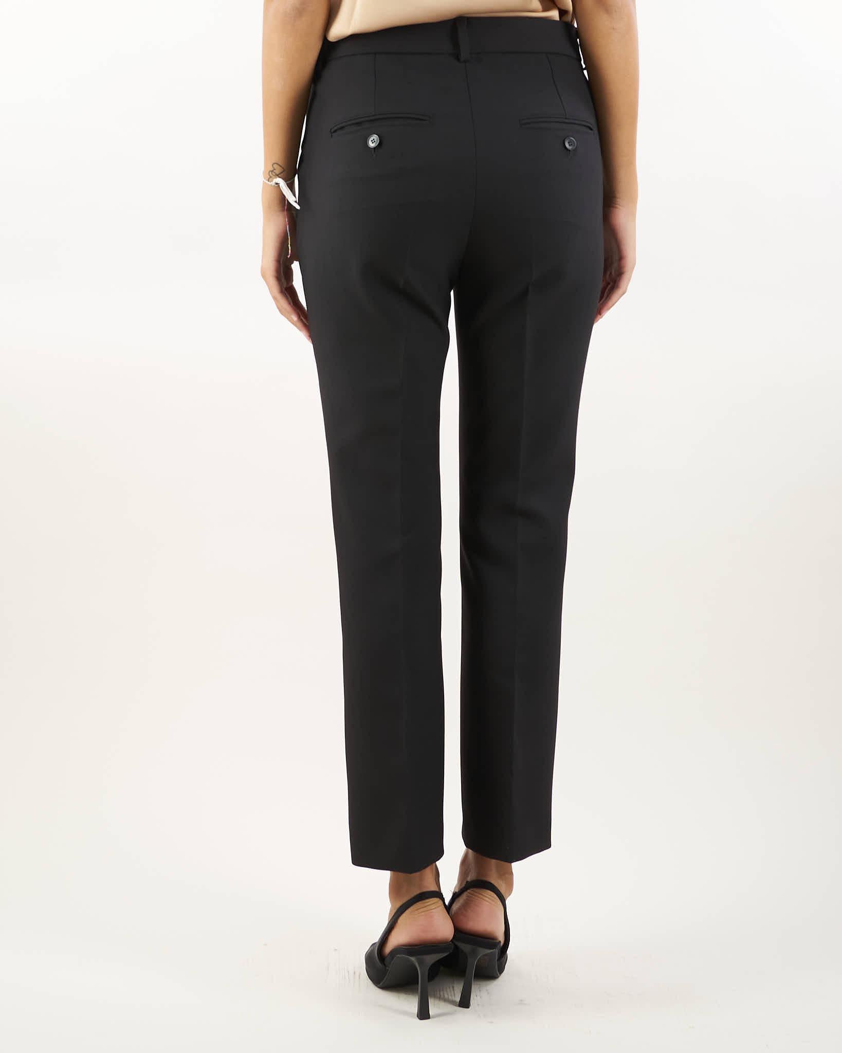 Pantalone a sigaretta in elegante cady di viscosa con passanti per cintura e piega stirata sulla gamba. Modello lungo alla caviglia con tasche alla francese sui fianchi e tasche a filetto con bottone sul retro. Chiusura con listino alto in vita, zip con patta e gancetto.