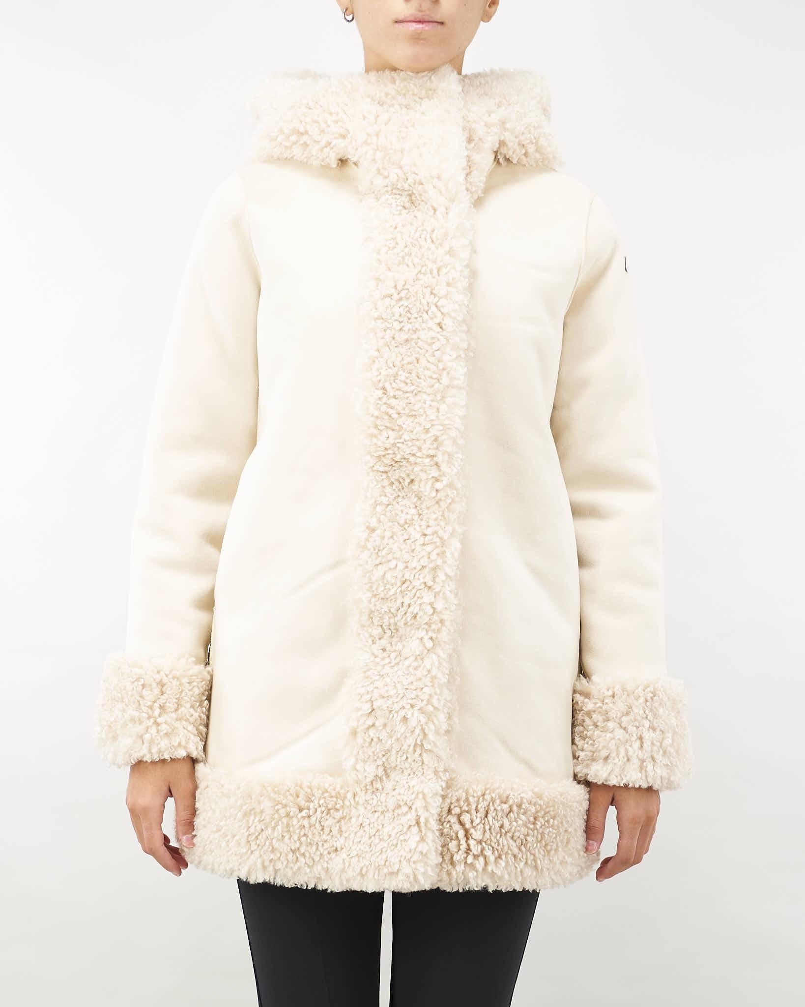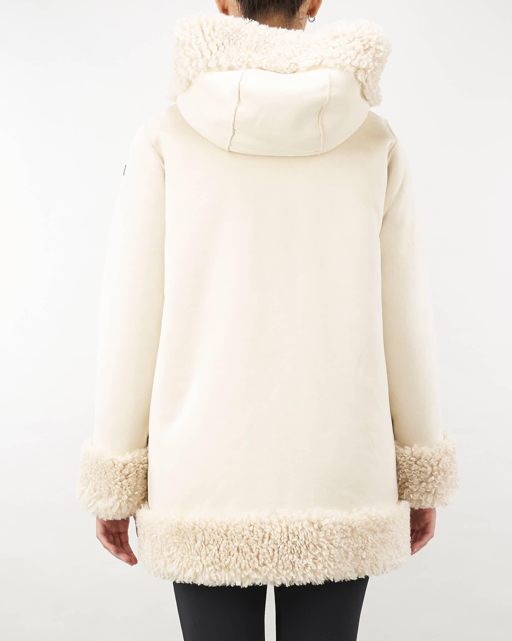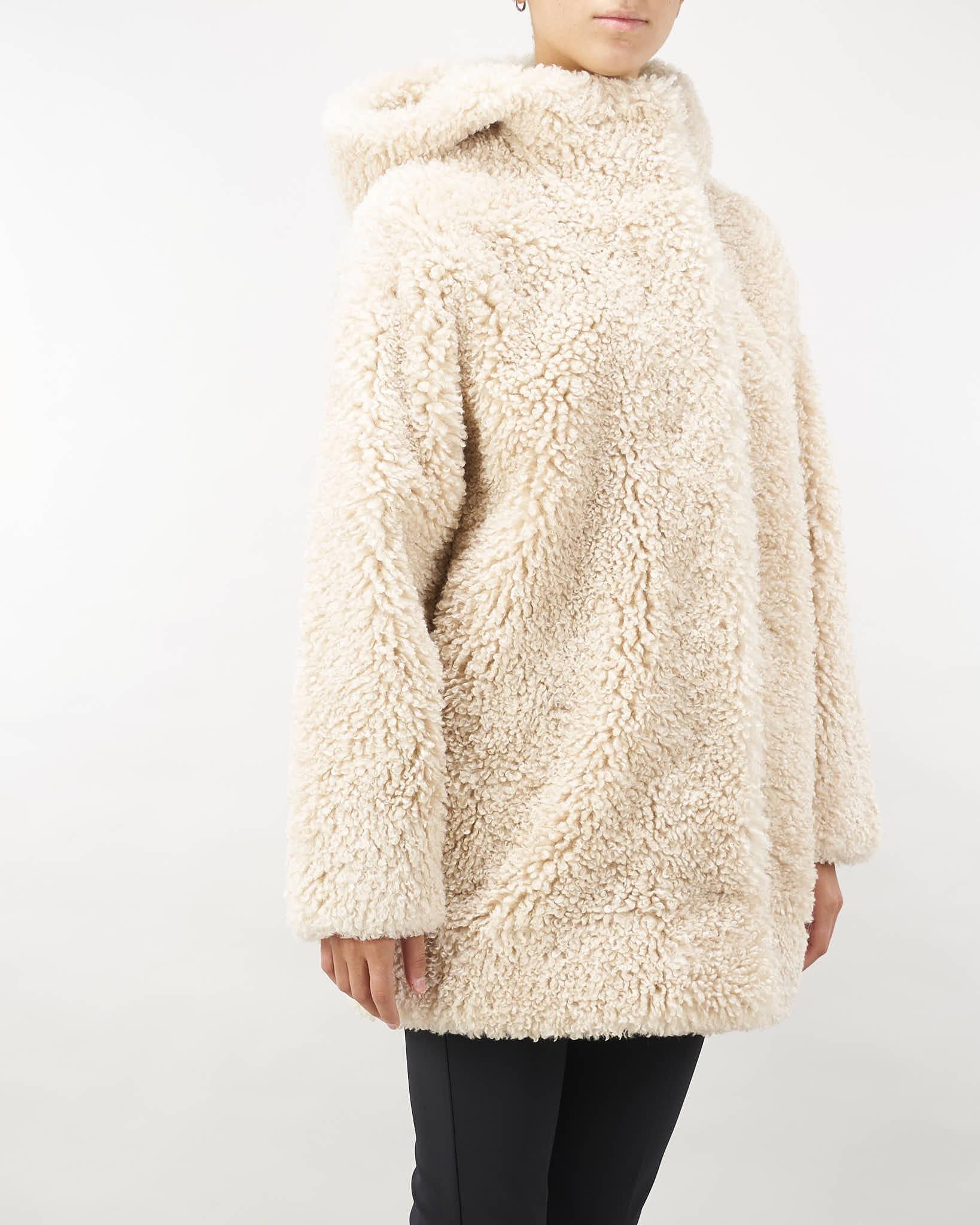 Il cappotto dall'atmosfera retrò trova una nuova chiave contemporanea nelle linee essenziali e nell'avvolgente cappuccio, che unisce la funzionalità alla raffinatezza. Caratterizzato da un elegante effetto sherpa, presenta una profonda chiusura nascosta che ne ripulisce il design, impreziosito dal tocco di stile delle bordature a contrasto. Realizzato in eco pelliccia premium, il capospalla offre al tatto la morbidezza avvolgente del vello dell'agnello. La reversibilità consente due varianti in un unico capospalla. Estremamente versatile e disponibile in un'estroversa palette di colori, si presta a diverse combinazioni, dai look classici con tonalità neutre agli outfit con stampa allover per un'eleganza retrò che non passa inosservata.