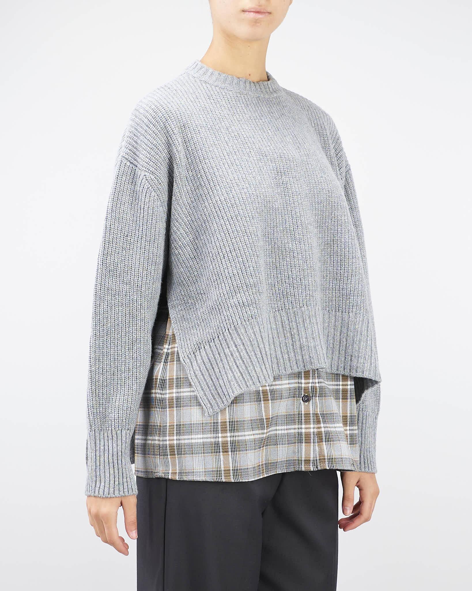 Pullover girocollo maniche lunghe con effetto fondo camicia in fantasia check.