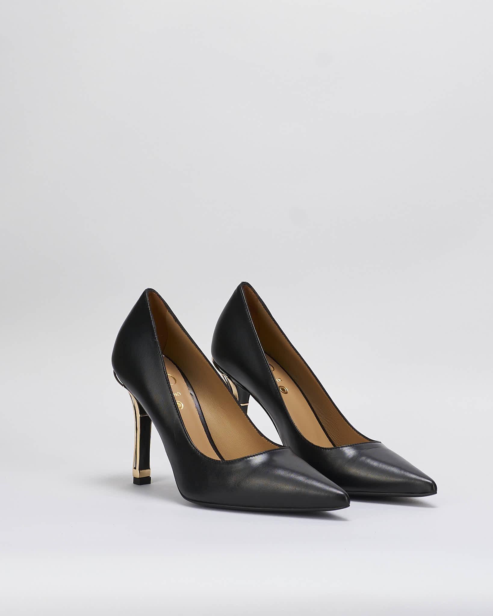 Decollette in pelle con tacco gold Wo Milano