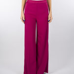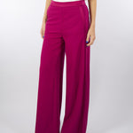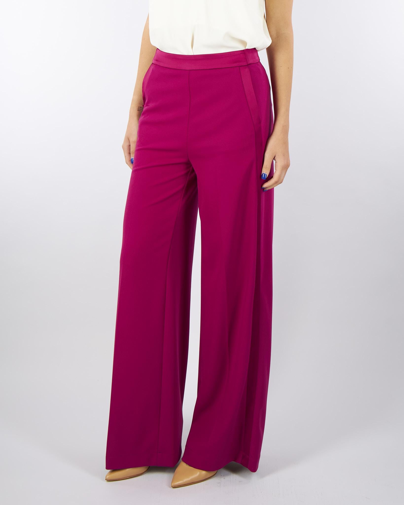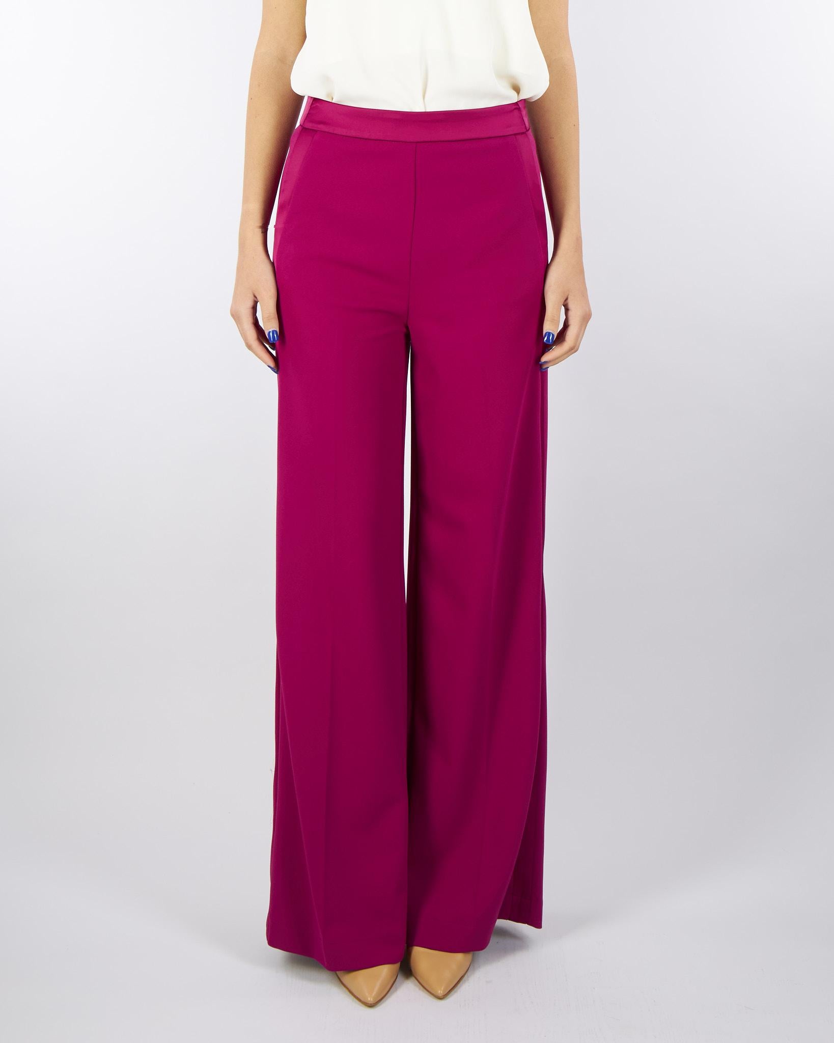 Completa il tuo outfit elegante con questi pantaloni palazzo dal taglio sartoriale con piega centrale, con vita alta e tasche laterali profilate, chiusura zip.