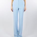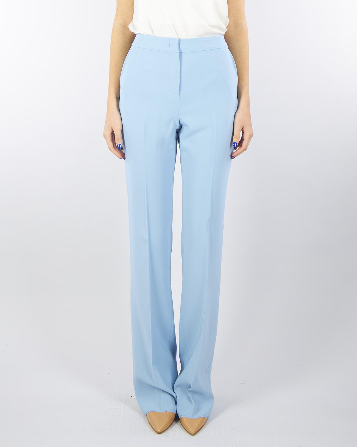 Mix perfetto di eleganza e coolness, i pantaloni flare passano con nonchalance dalle occasioni speciali allo chic quotidiano. Cady bi-stretch. Linee leggermente svasate, vita regolare. Piega stirata. Tasche alla francese sul davanti. Impunture sartoriali in tono. Chiusura nascosta con gancio e zip.