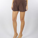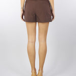 Shorts in popeline di cotone stretch con cintura in rafia bicolore con fibbia Oval T smaltata in tinta ed inserto elastico sul retro. Ha vita regular, chiusura con zip al fianco, tasche alla francese, pieghe davanti, placchetta logo sul retro, piega stirata, linea morbida.