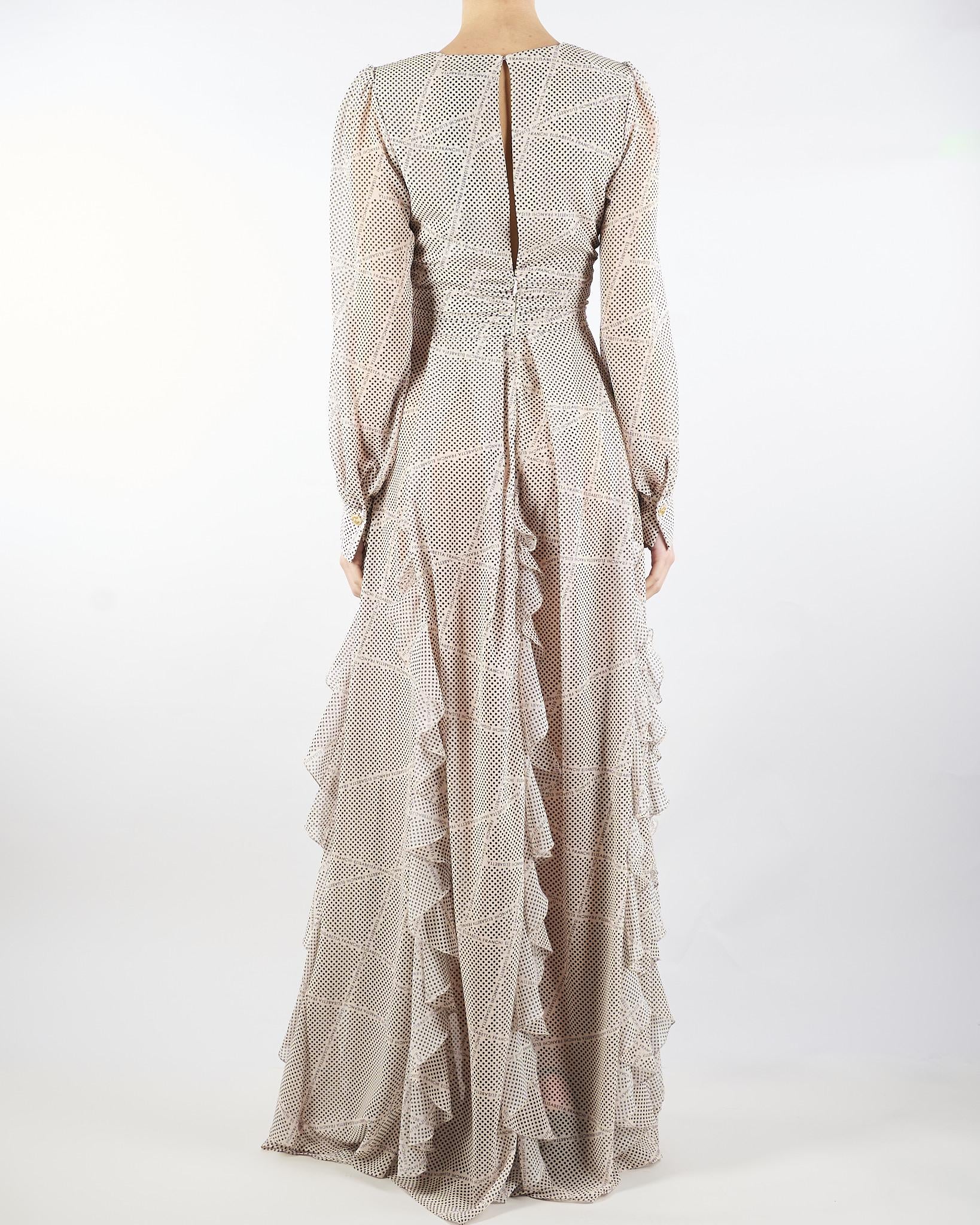 Abito Red Carpet Burro-Nero in georgette con stampa pois e nastri