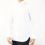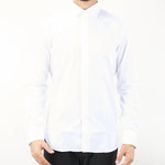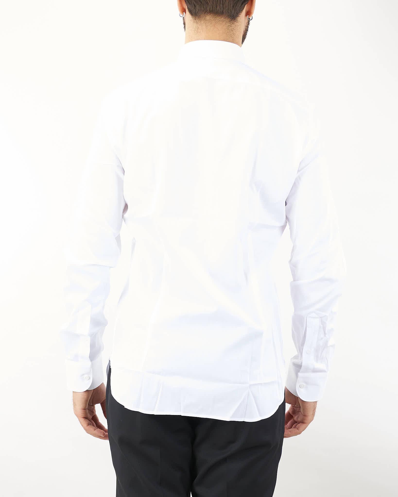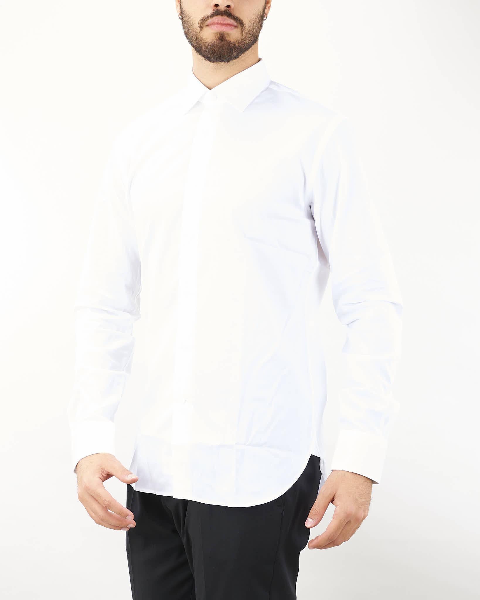 Camicia in cotone di Delsiena. Modello con collo francese, maniche lunghe con polsini e pences sul retro. Chiusura centrale con bottoni.