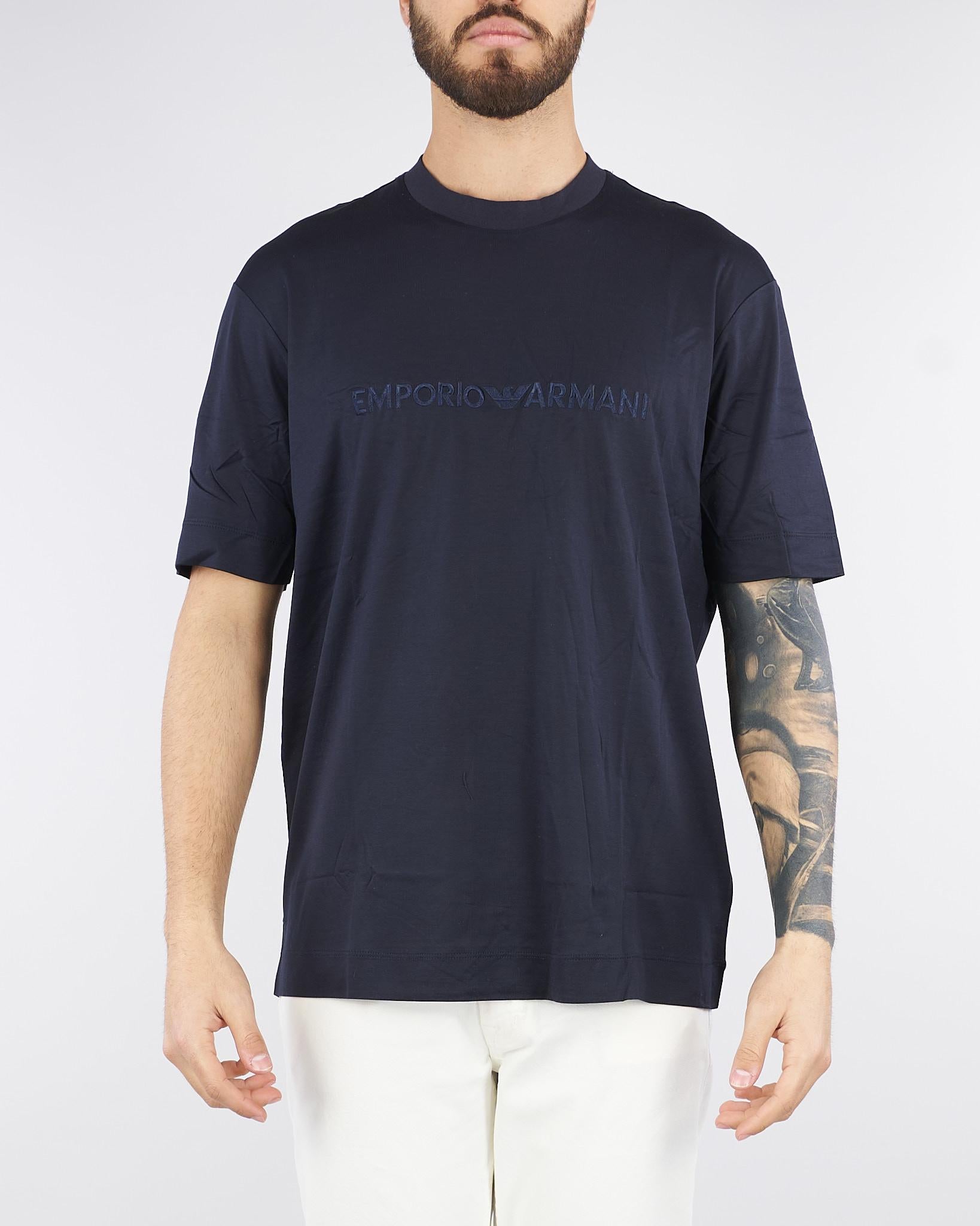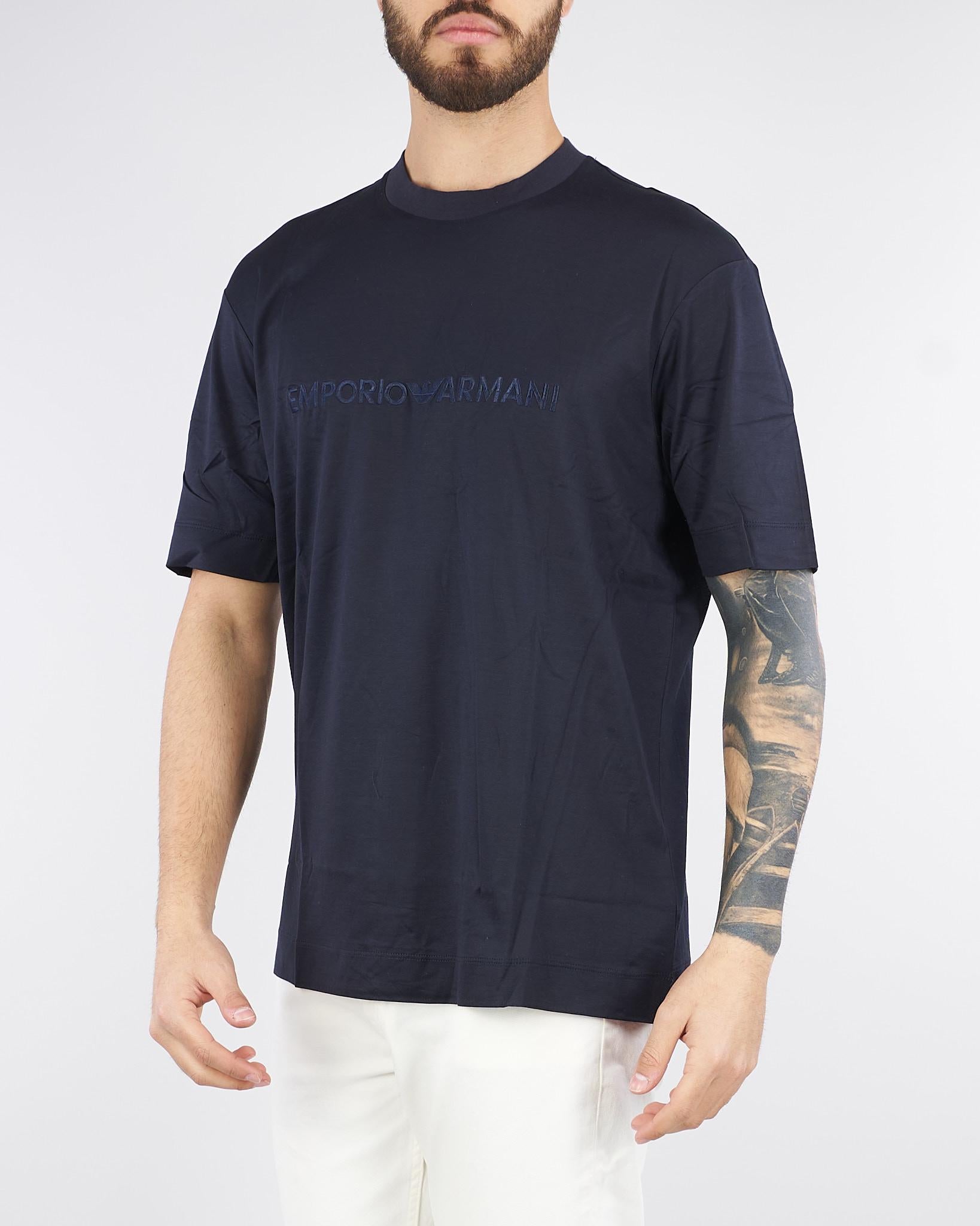 T-shirt Blu in jersey misto lyocell con ricamo logo