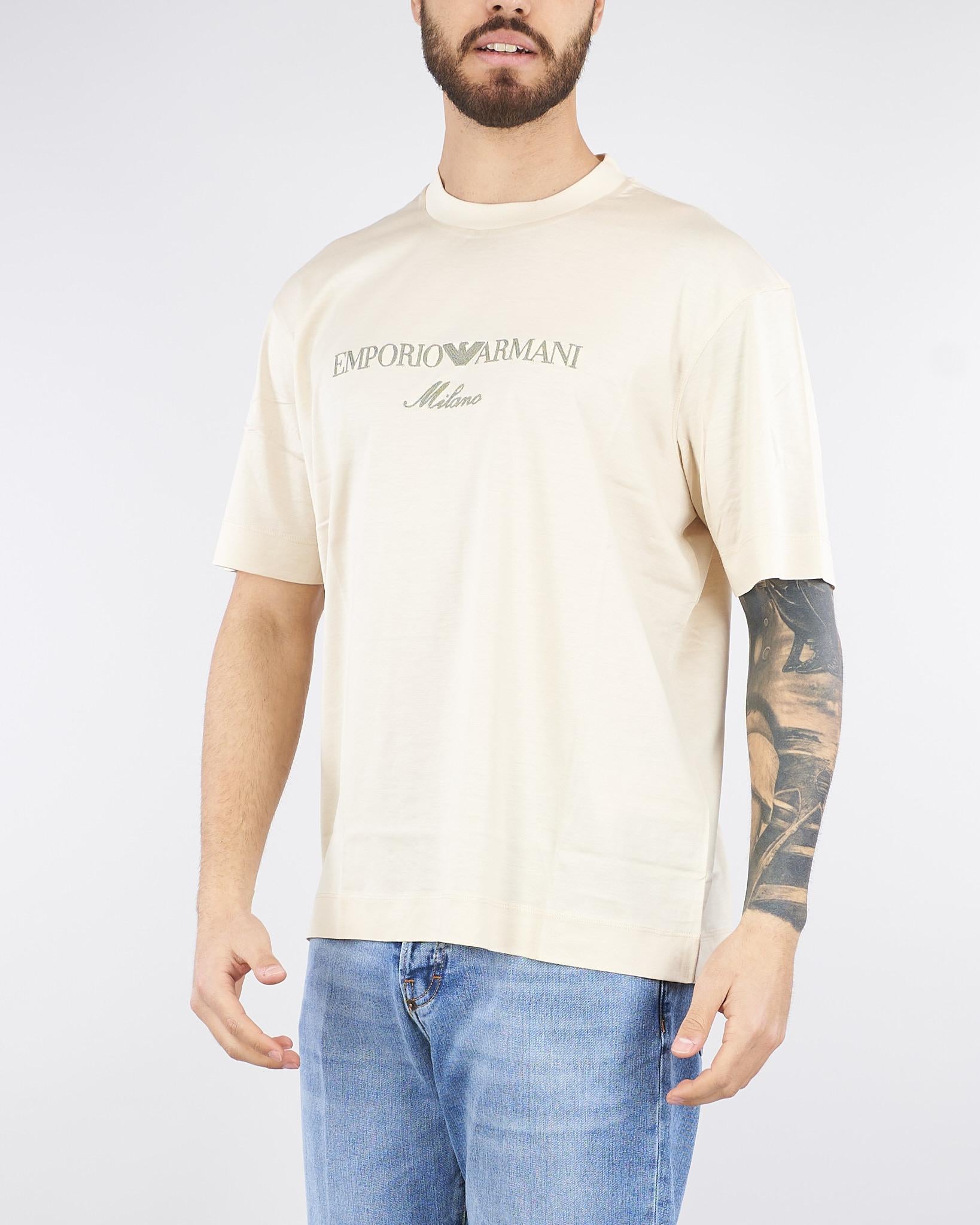 T-shirt Crema in jersey misto lyocell con ricamo logo asv