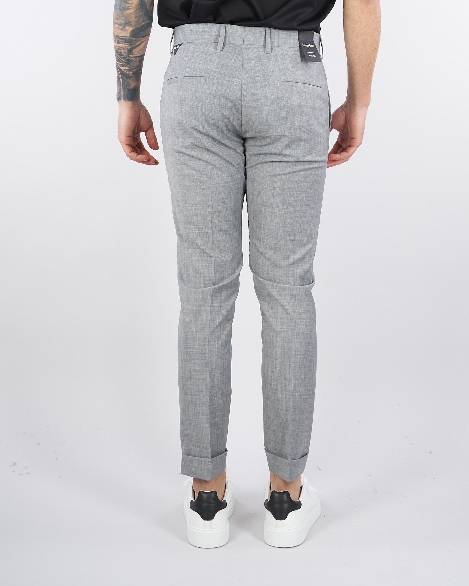 Pantalone in fresco lana di Golcen Craft. Modello con tasche america laterali e tasche a filo sul retro. Chisura con zip e gancio. Fondo con risvolto.
