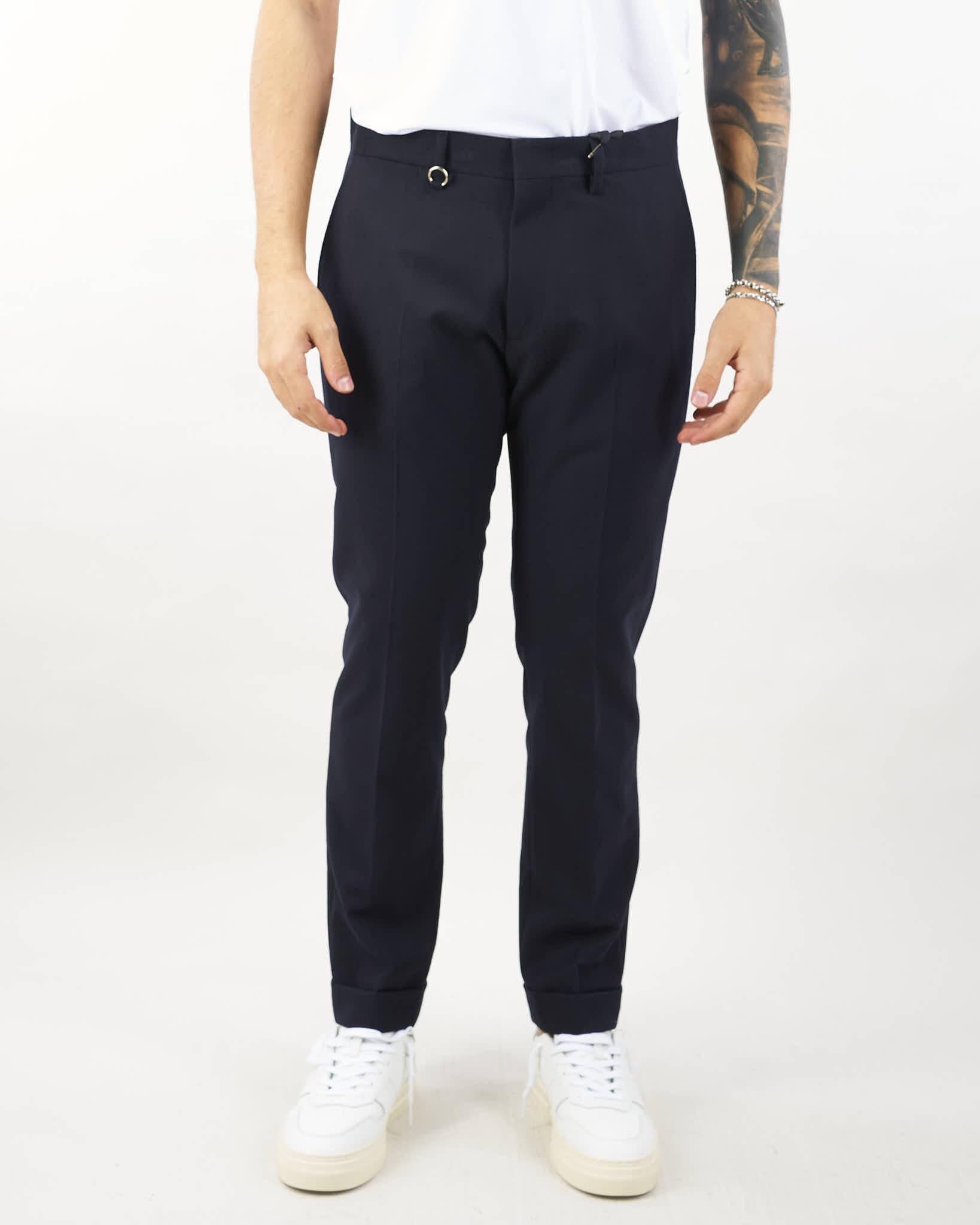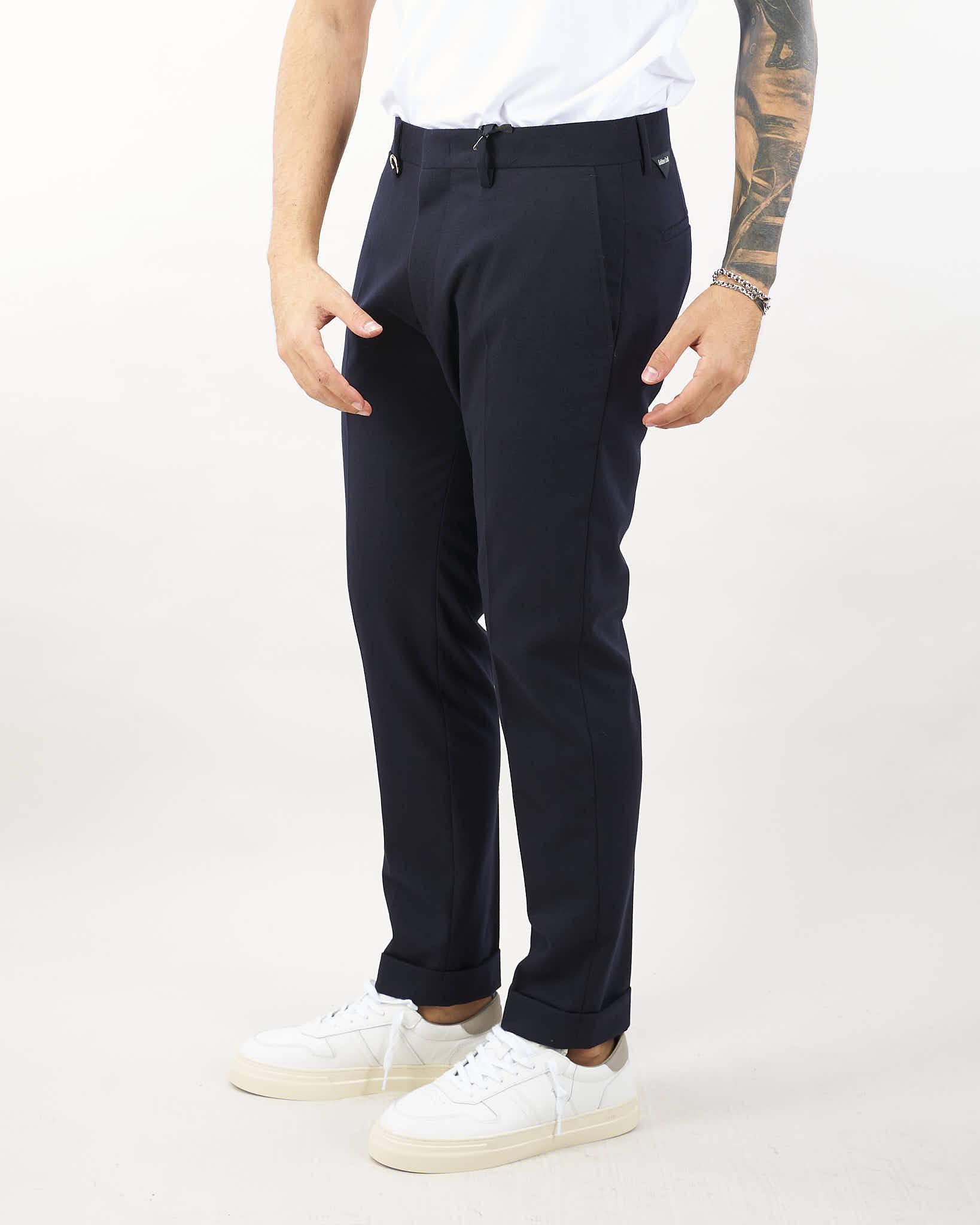 Pantalone in flanella di lana di Golden Craft. Modello Roxy, tasche america laterali e tasche a filo sul retro. Chiusura centrale con zip e gancio. Fondo con risvolto. Slim fit.