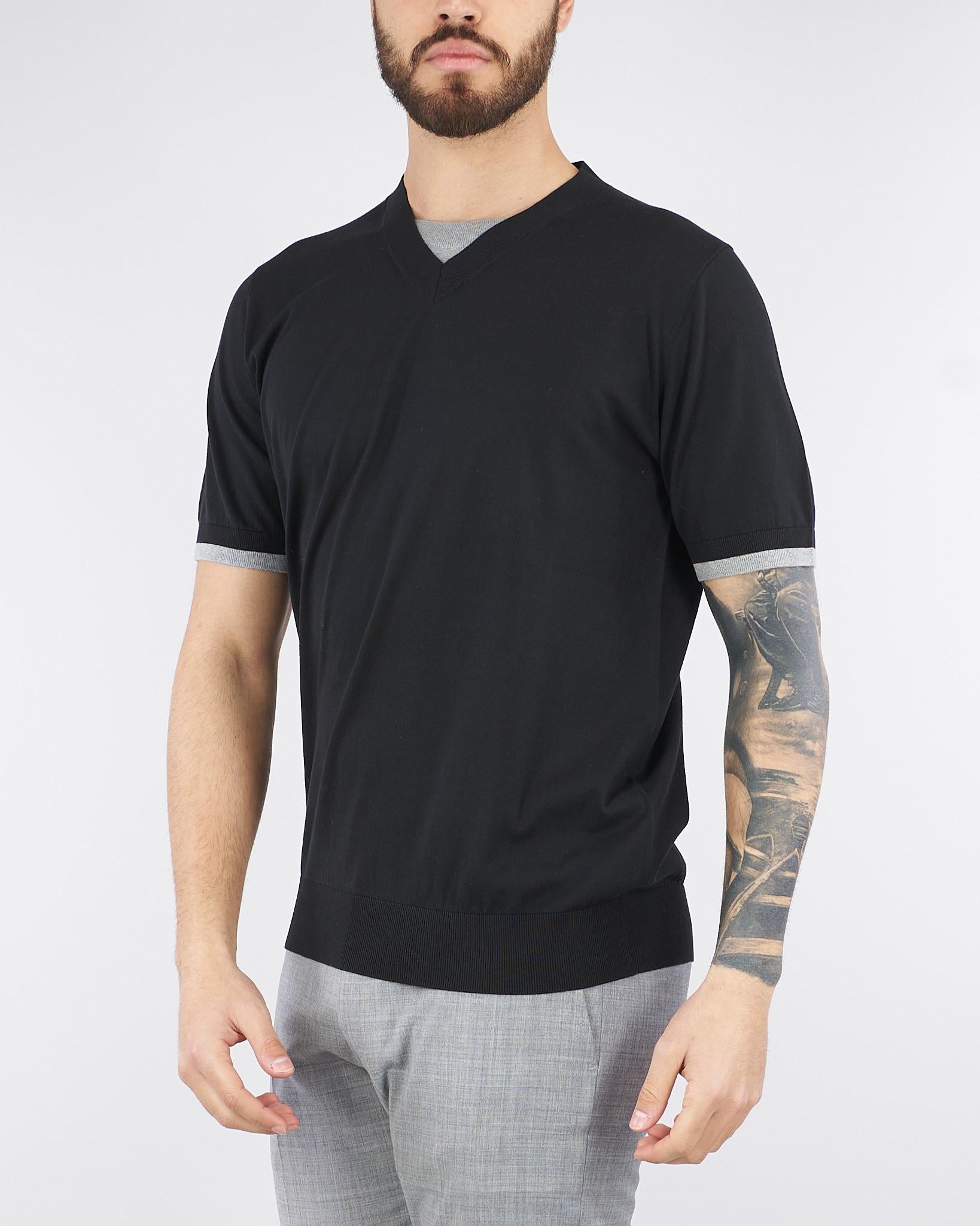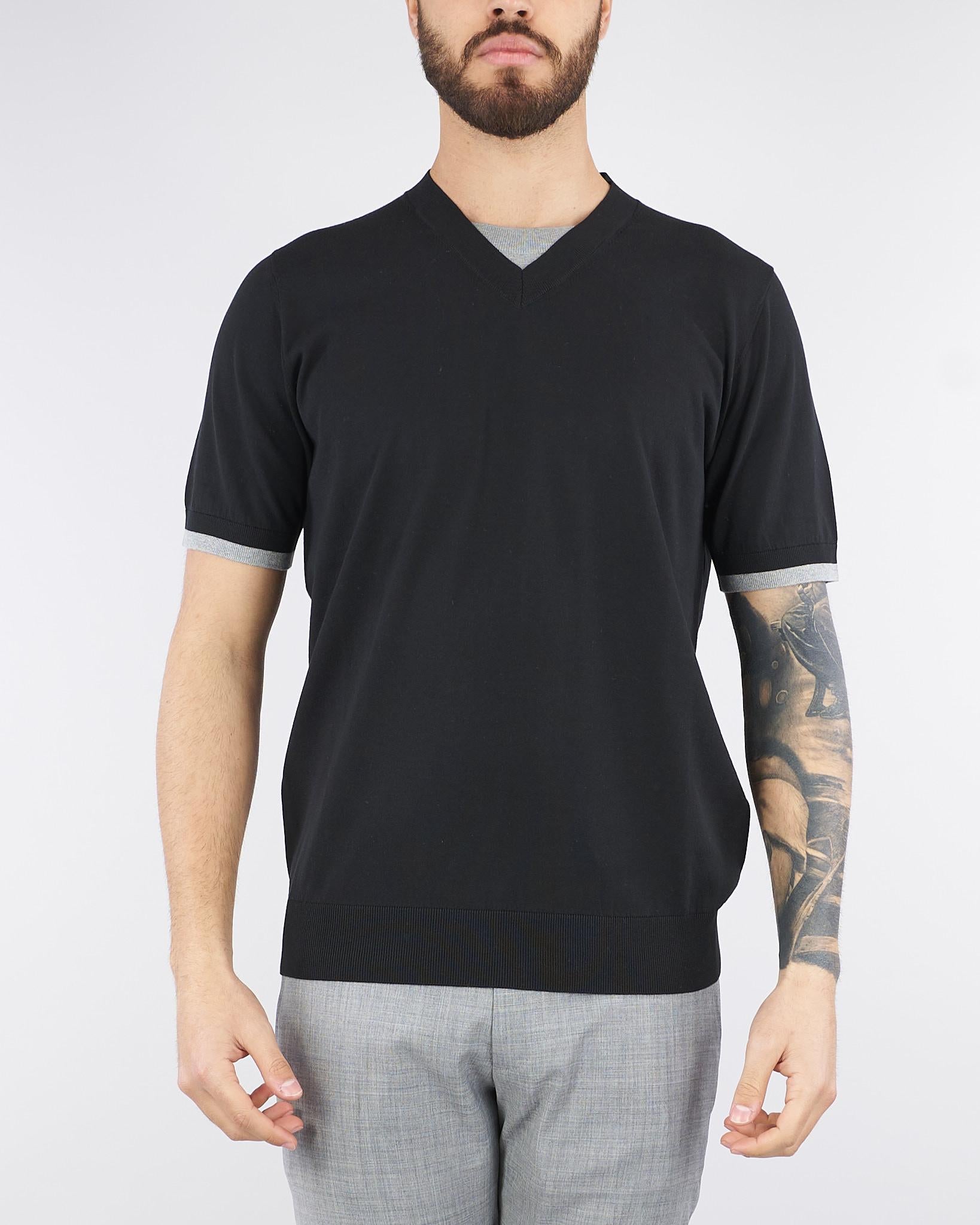 Maglia Nero-Grigio con scollo a V in cotone extrafine