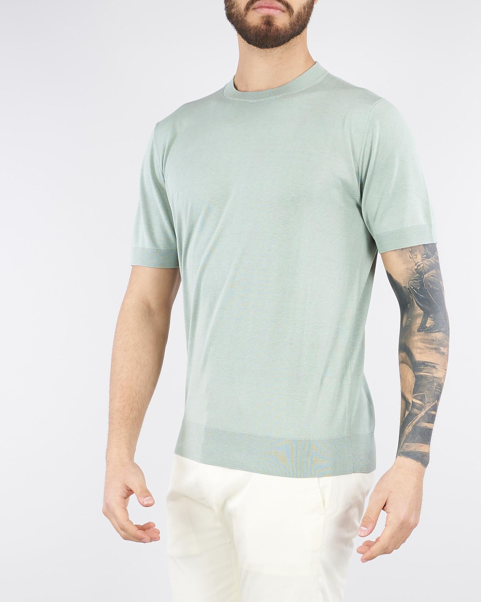 Maglia in seta di Paolo Pecora. Modello girocollo con maniche corte. Fondo a costine con elastico. Regular fit.